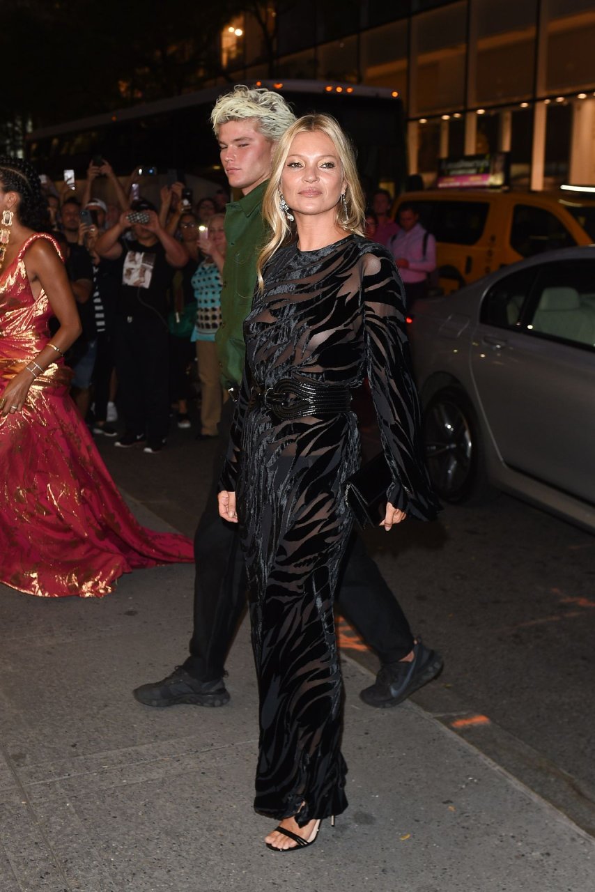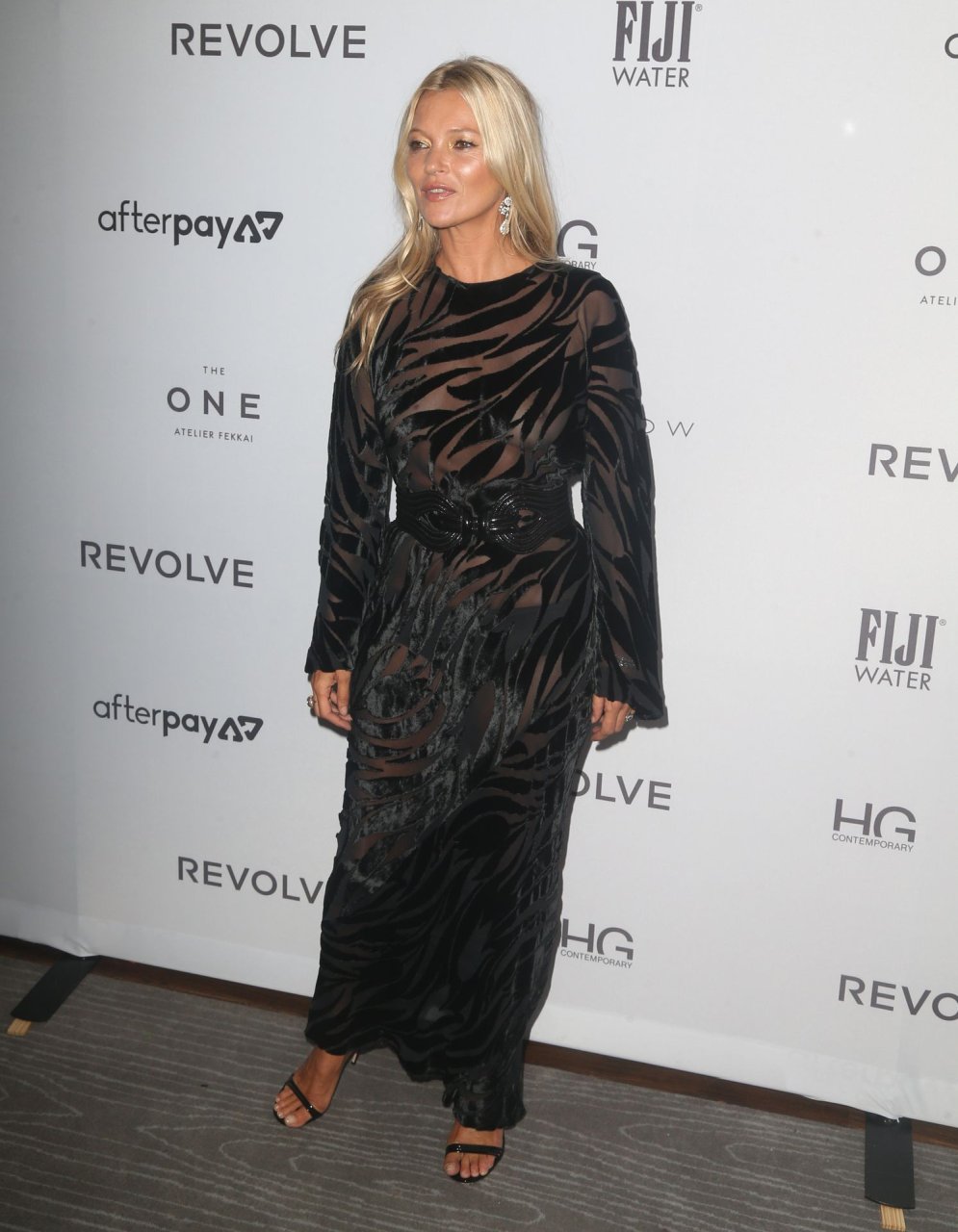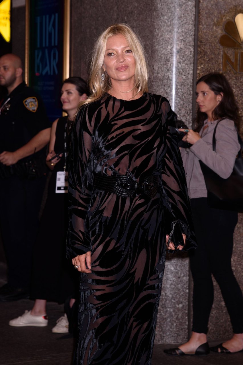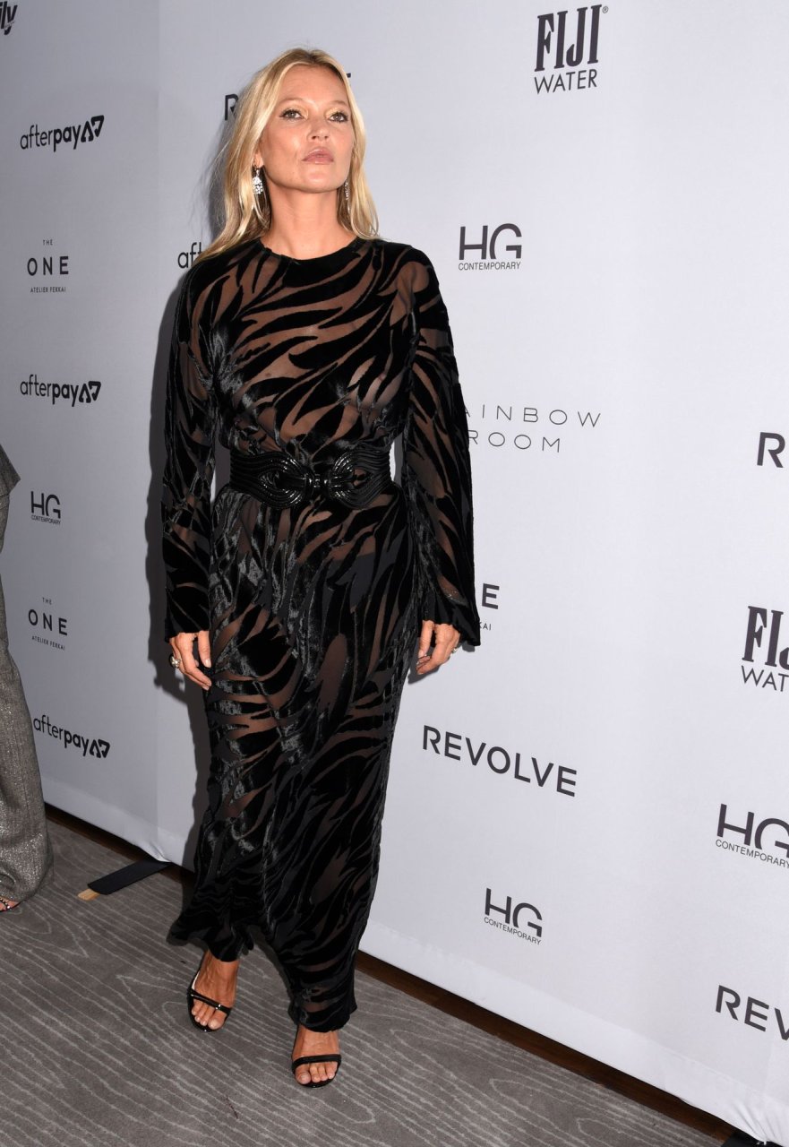 La supermodelo Kate Moss lleva un vestido maxi negro transparente y revelador mientras llega a los Premios de Medios de Moda Daily Front Row, celebrados en el Rainbow Room del Rockefeller Center en Nueva York, 05/09/2019. ¡La supermodelo de 45 años está en gran forma! Ha perdido mucho peso últimamente, se ve en forma y saludable.