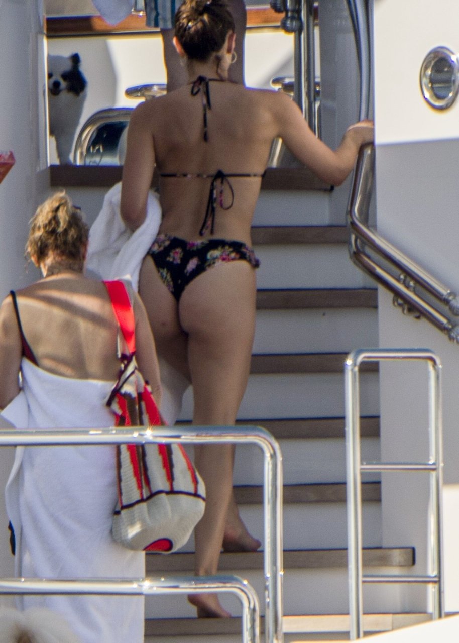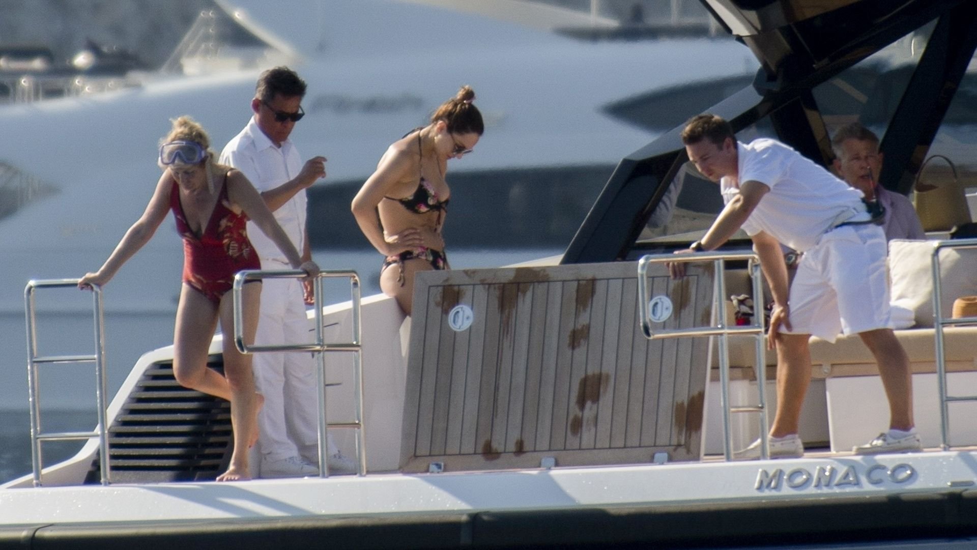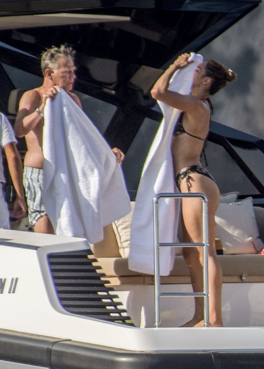 Recién casados Katharine McPhee y David Foster se dan un chapuzón en el océano mientras se relajan en su yate durante su luna de miel en Capri, 03/07/2019.