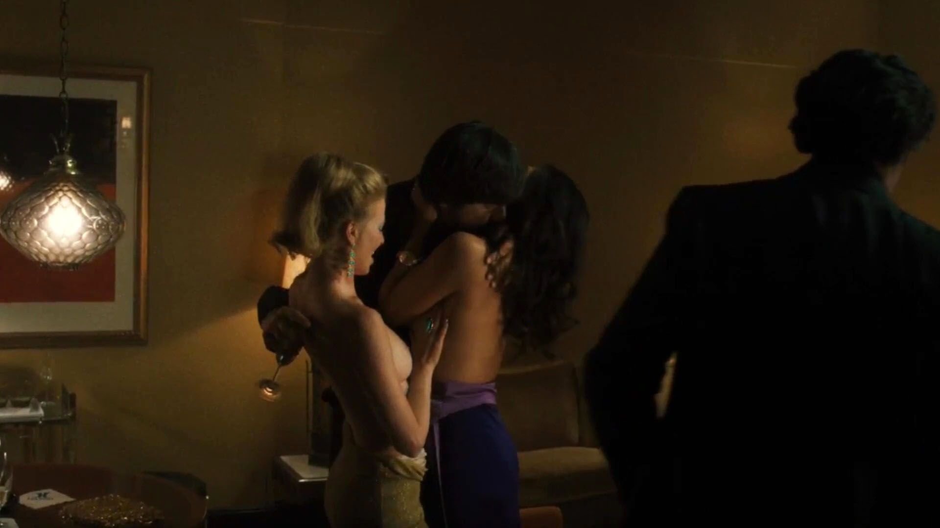 Nuevas capturas de pantalla y clips con Kati Sharp y Frances Eve de Vinyl (2016). Vemos a dos chicas con busto en bikinis cerca de la piscina… y luego en la habitación… Vivian (Kati Sharp) y Patty (Frances Eve) se besan entre ellas, antes de besar a Zak (Ray Romano), y desabrocharse los tops para mostrar sus pechos.