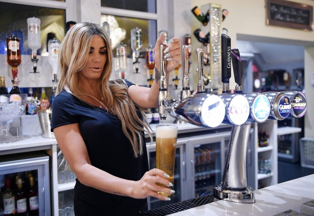 Katie Price sin sujetador asiste al bar Ma Kelly’s Showboat en Blackpool, 29/08/2017. Katie Price (también conocida como Jordan) es una estrella de la televisión inglesa y exmodelo. Edad – 39.