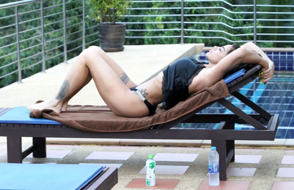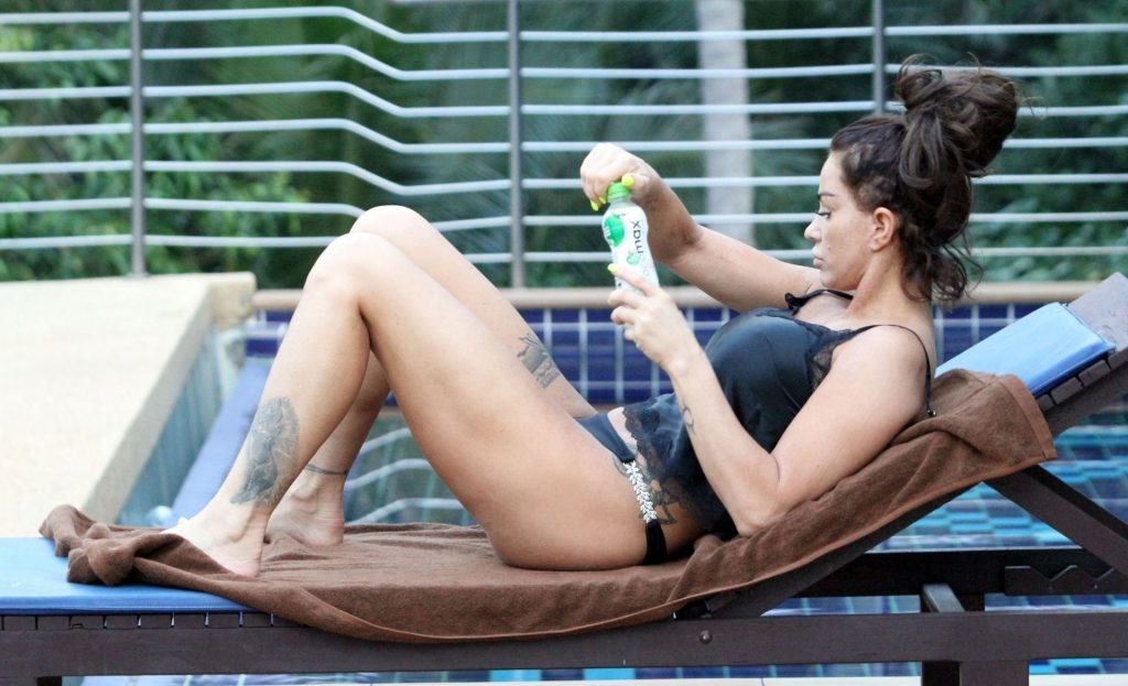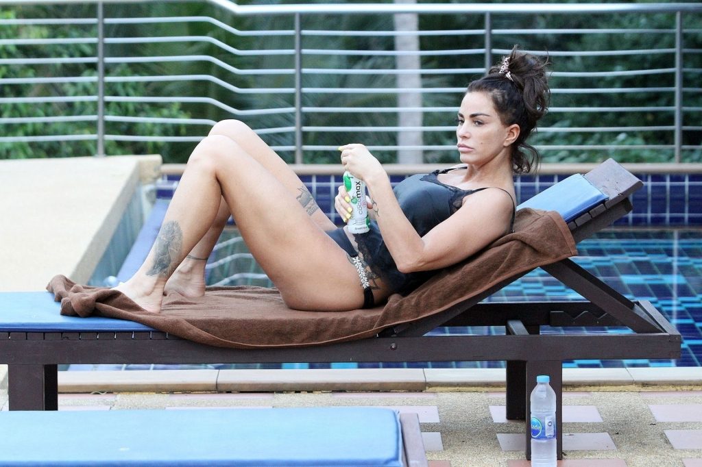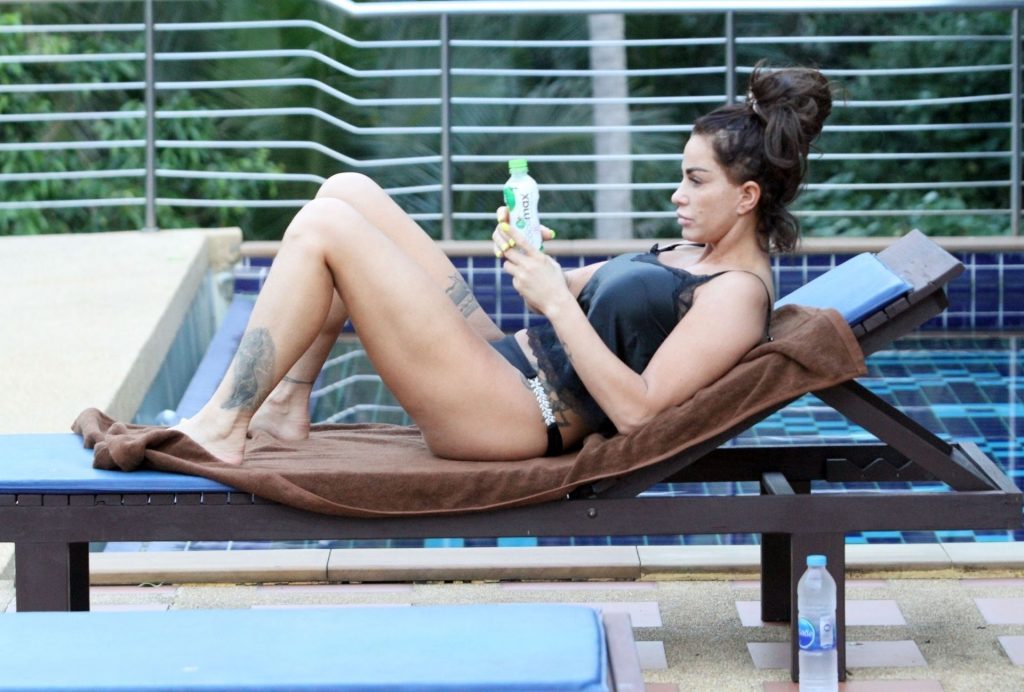 Katie Price (también conocida como Jordan) fue fotografiada relajándose en una tumbona mientras estaba de vacaciones en Tailandia, 01/03/2020. ¡La modelo glamorosa fue vista luciendo tranquila mientras disfrutaba del sol en Tailandia!