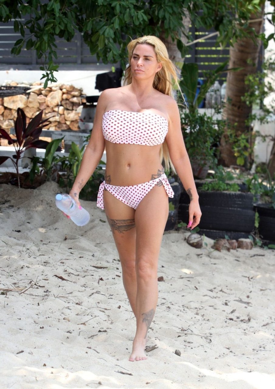 Vestida con su pequeño y lindo conjunto de bikini de lunares, Katie literalmente deslumbra en su escapada romántica bañada por el sol en el Celes Beachfront Resort Koh Samui.