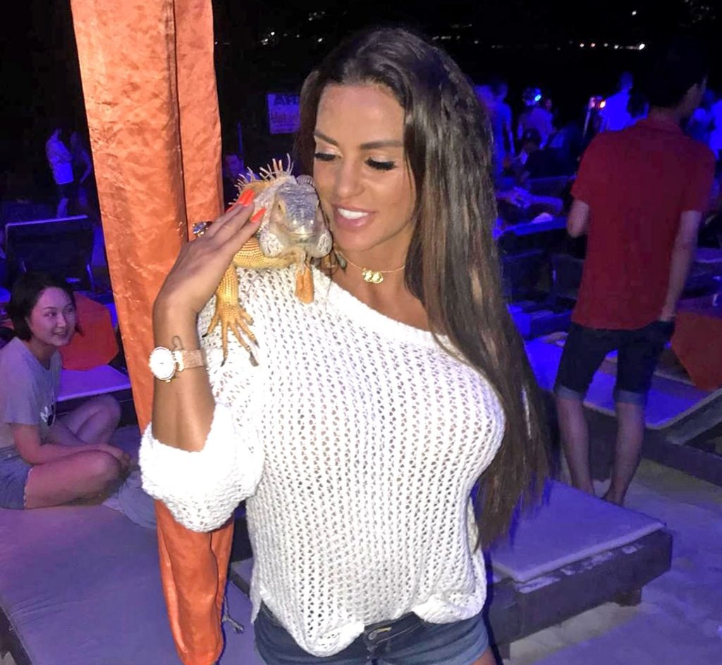 La modelo británica Katie Price (Jordan) parecía tranquila sosteniendo un par de reptiles sobre sus hombros, y a pesar de sus problemas financieros muy publicitados, Katie parecía estar disfrutando de la vida nocturna española durante sus vacaciones, 09/03/2018.