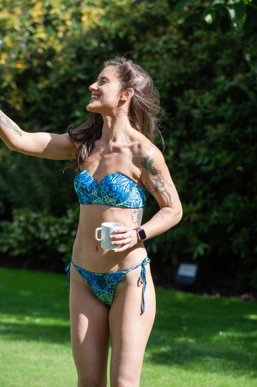 La estrella de X Factor muestra su increíble cuerpo tonificado con un bikini floral. Katie, quien es entrenadora personal certificada, lanzó recientemente su sitio web de fitness.