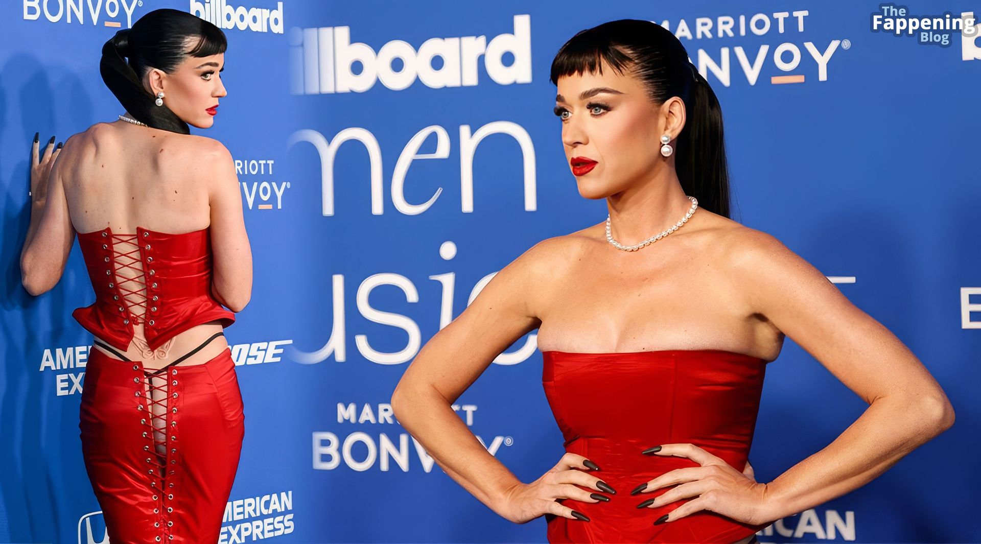Mira los mejores momentos en los que Katy Perry llama la atención con sus atrevidas braguitas tipo tanga y presume su trasero desnudo en los Billboard Women in Music Awards.
