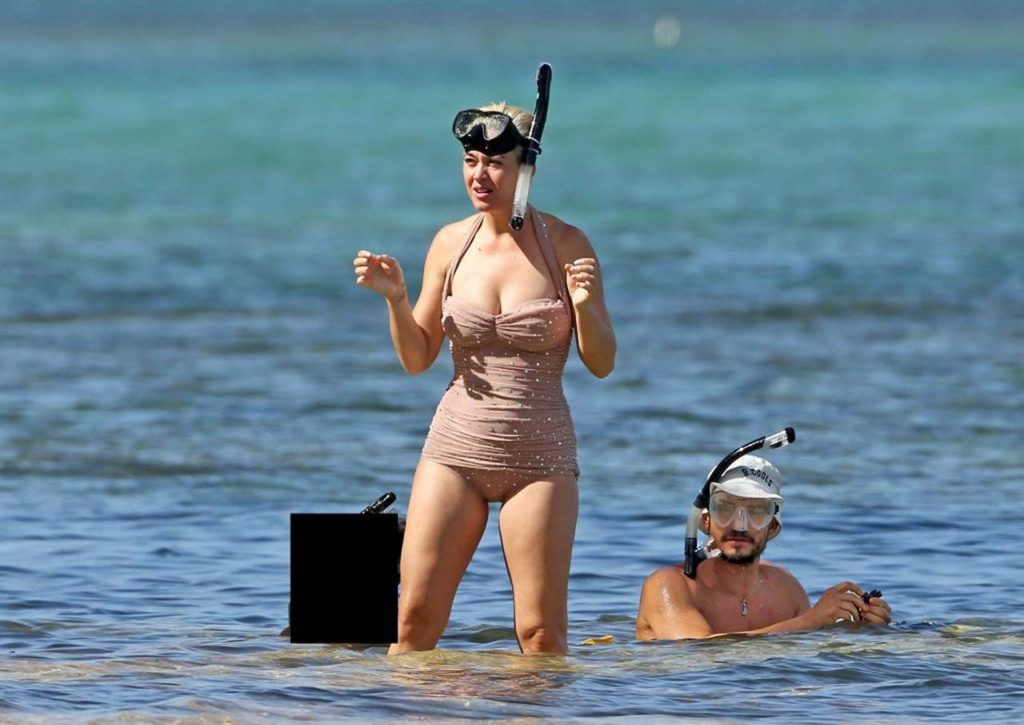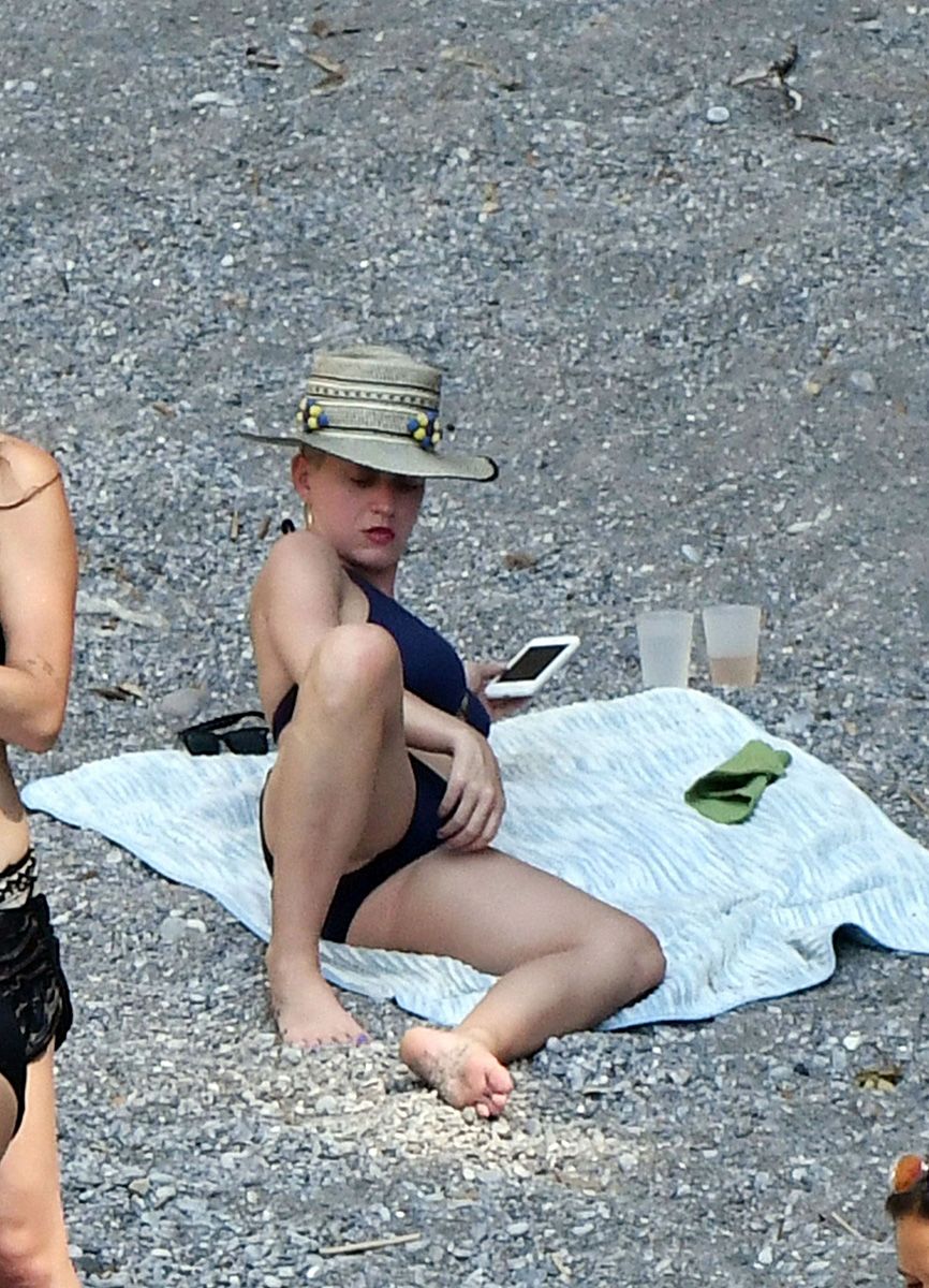 This new mom, we’re assuming, doesn’t get as much attention in bed as she used to! So, because of that, she’s got to enjoy herself more and more! Here are some images of Katy rubbing herself on a beach in Italy!