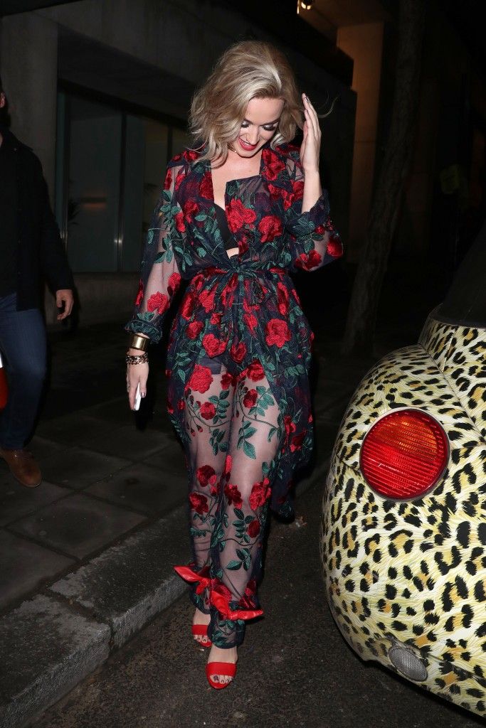 Katy Perry appears in public wearing hot flowers all over her body that are painted on the see-through dress. It reveals almost everything and lives nothing to the imagination, and that is just the way we love it!