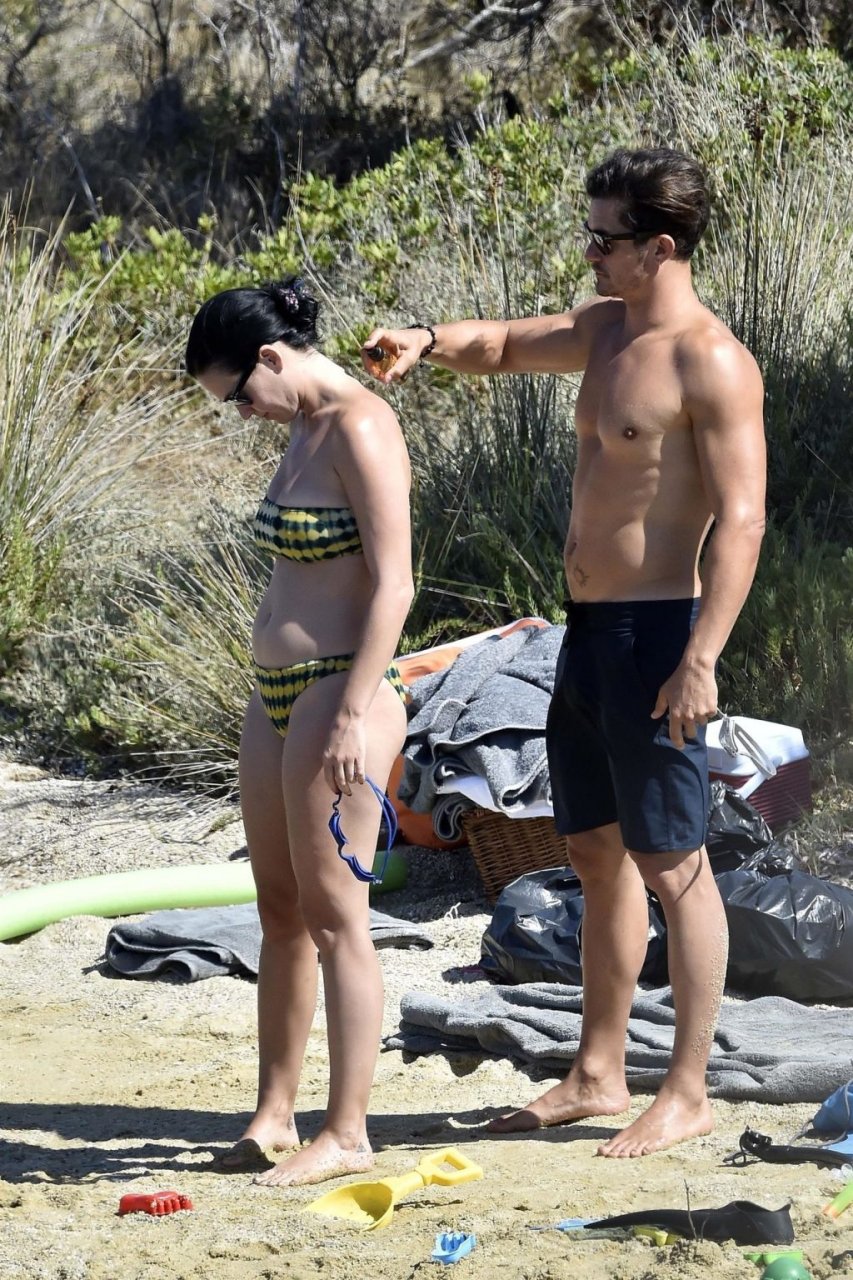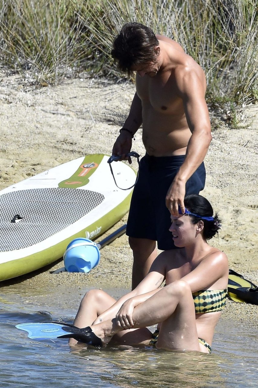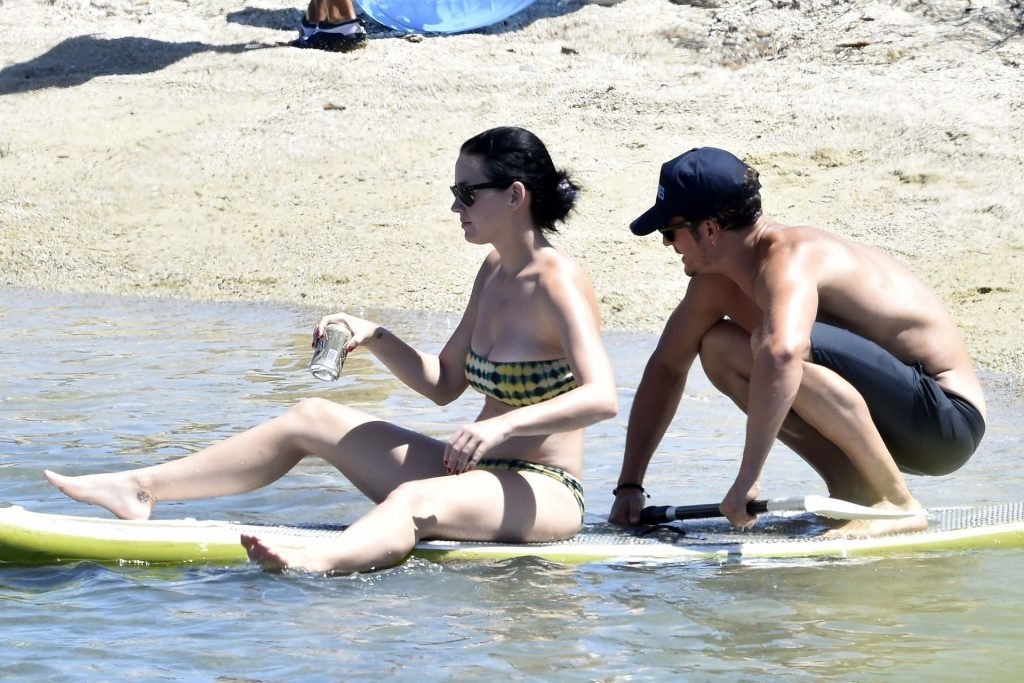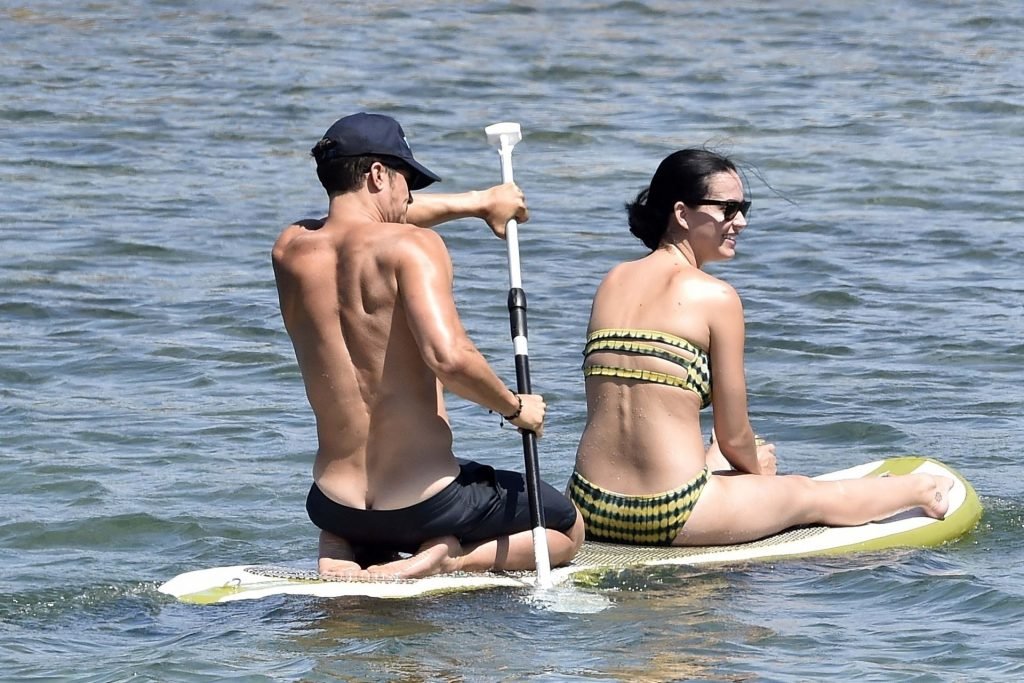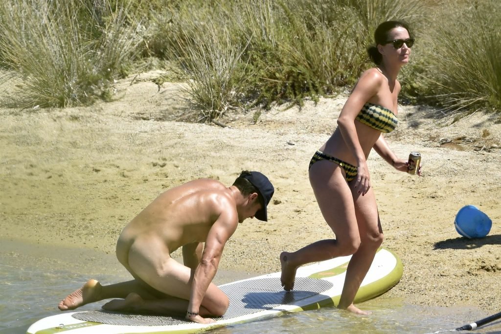 AQUÍ EN LA FOTO: Katy Perry y su novio Orlando Bloom disfrutan de un divertido día en la playa mientras vacacionan en Italia, 02/08/2019. La pareja ardiente se entregó a actividades acuáticas como el snorkel y el paddleboard. Orlando fue todo un exhibicionista al quitarse sus shorts de baño y dejarlo todo al descubierto mientras remaba a Katy en su paddleboard. Katy y Orlando almorzaron en la playa y se les puede ver besándose y abrazándose bajo el sol mientras parecen estar realmente enamorados.