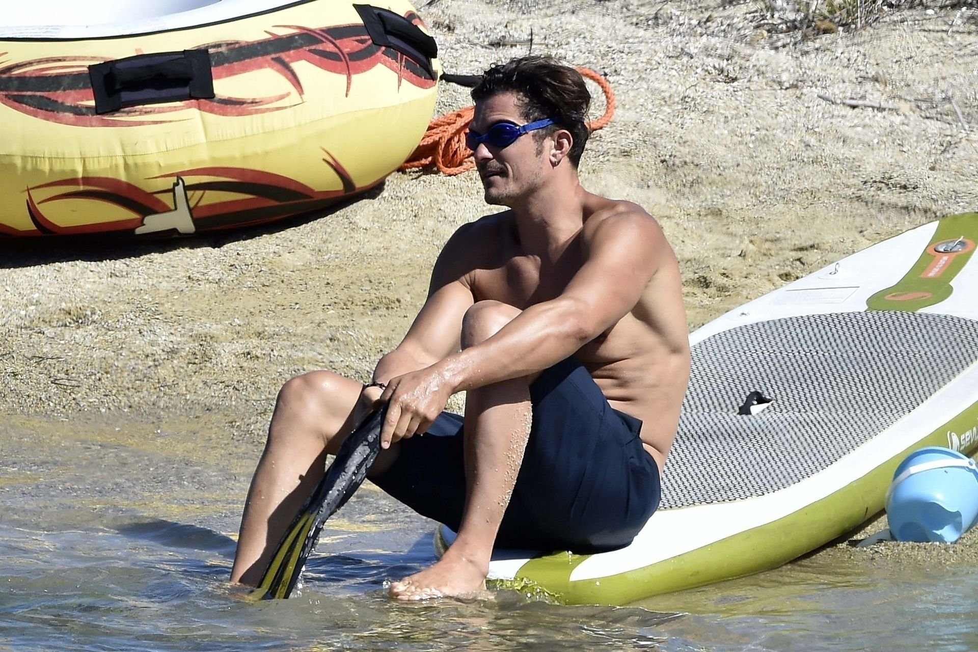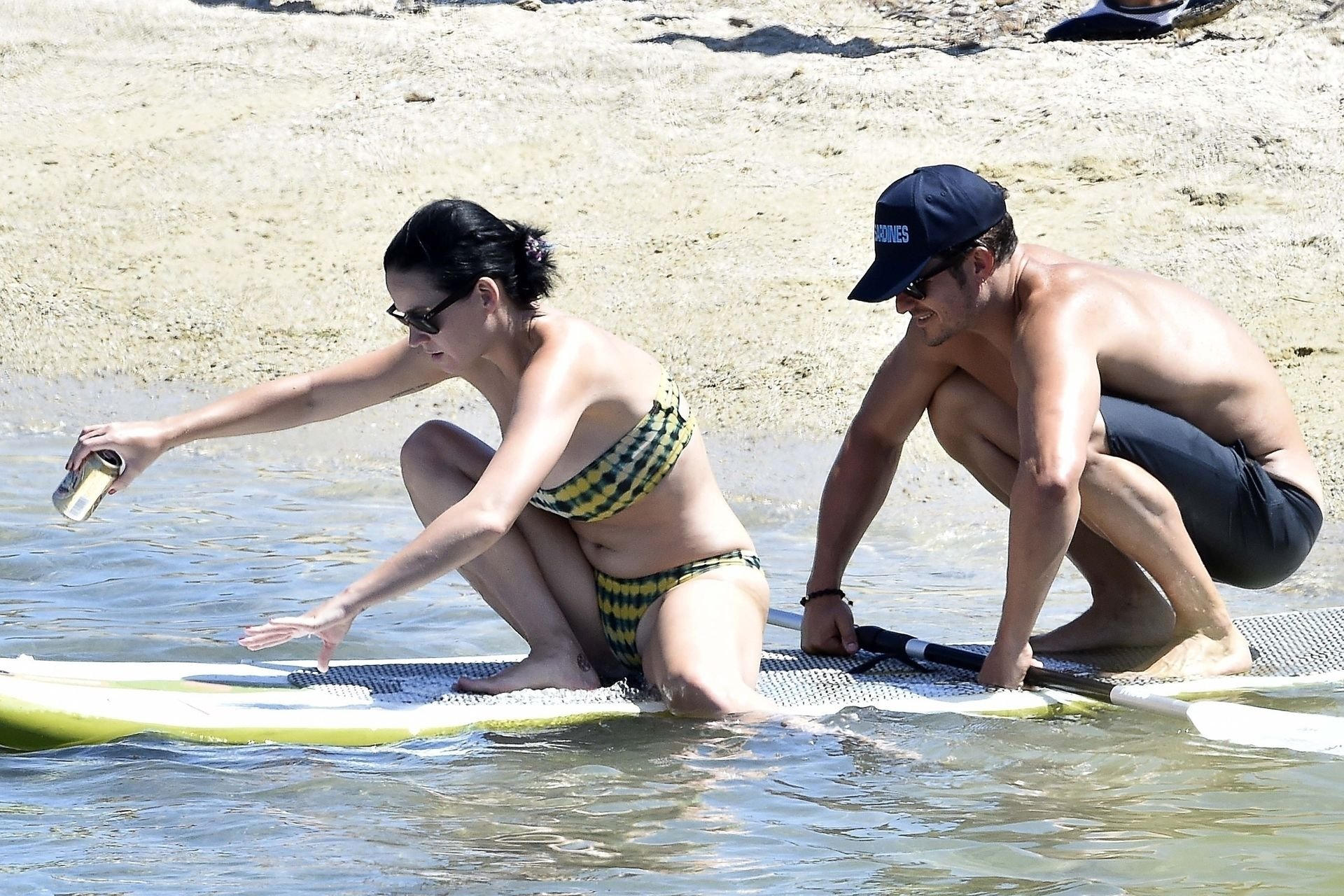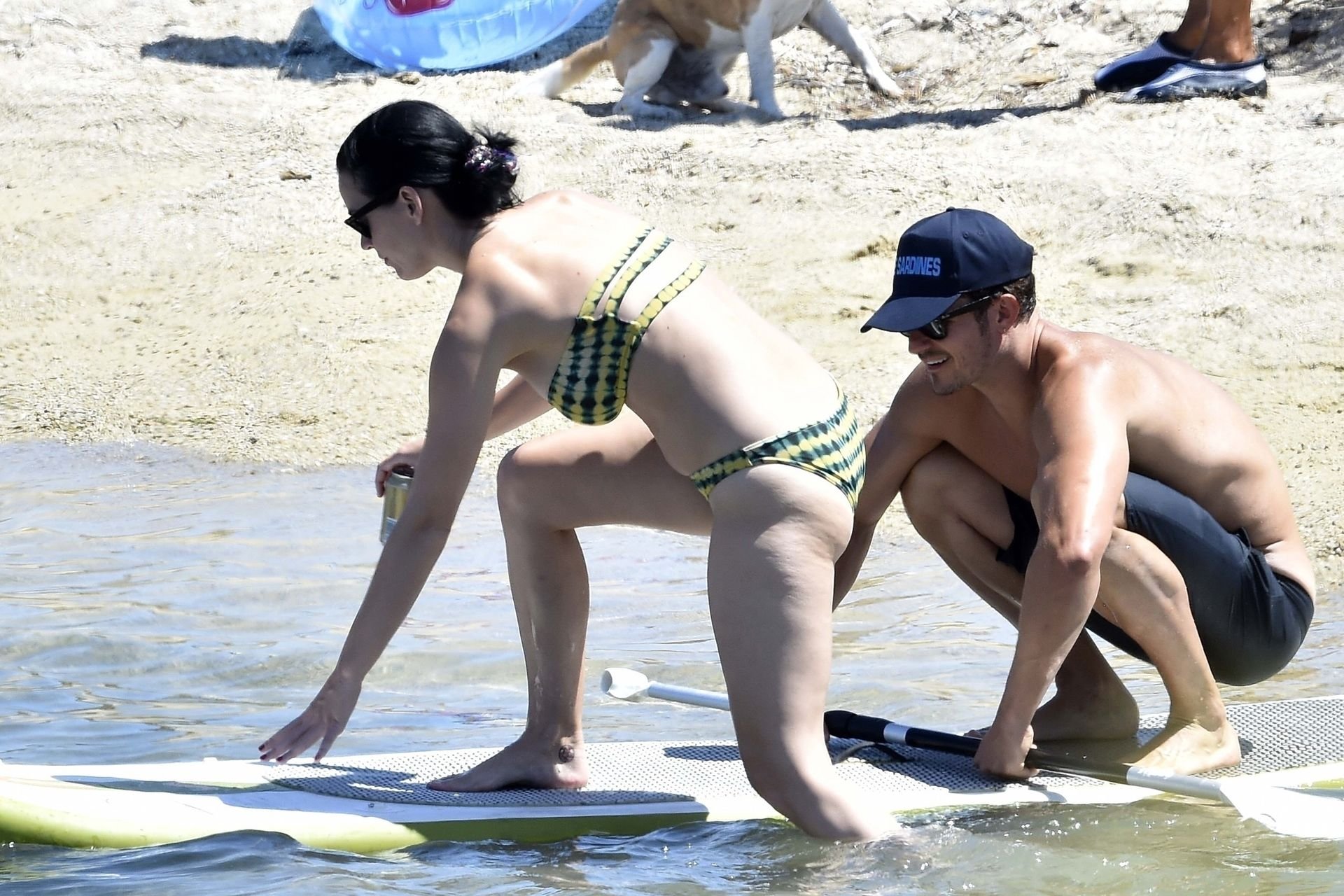 AQUÍ EN LA FOTO: Katy Perry y su novio Orlando Bloom disfrutan de un divertido día en la playa mientras vacacionan en Italia, 02/08/2019. La pareja ardiente se entregó a actividades acuáticas como el snorkel y el paddleboard. Orlando fue todo un exhibicionista al quitarse sus shorts de baño y dejarlo todo al descubierto mientras remaba a Katy en su paddleboard. Katy y Orlando almorzaron en la playa y se les puede ver besándose y abrazándose bajo el sol mientras parecen estar realmente enamorados.