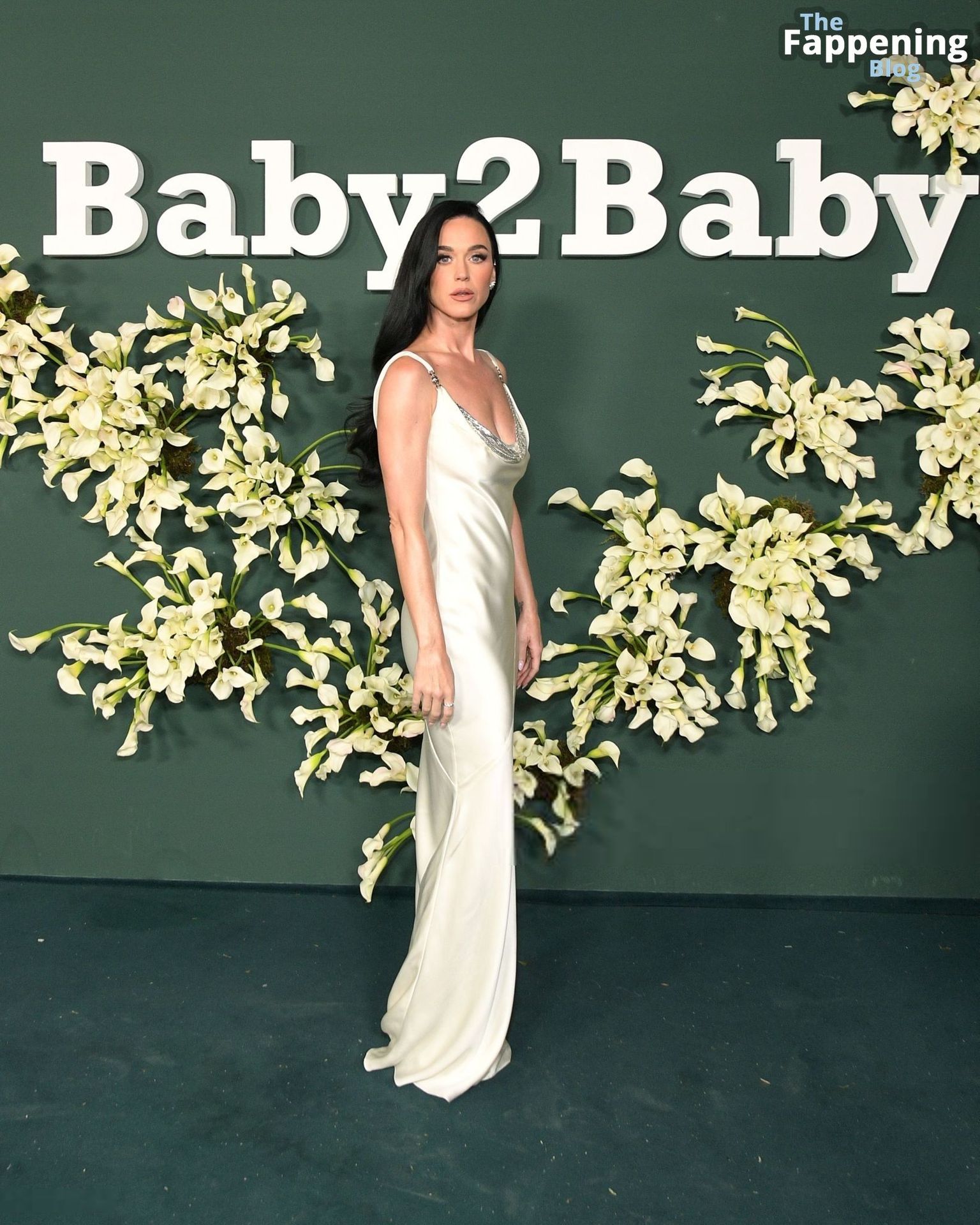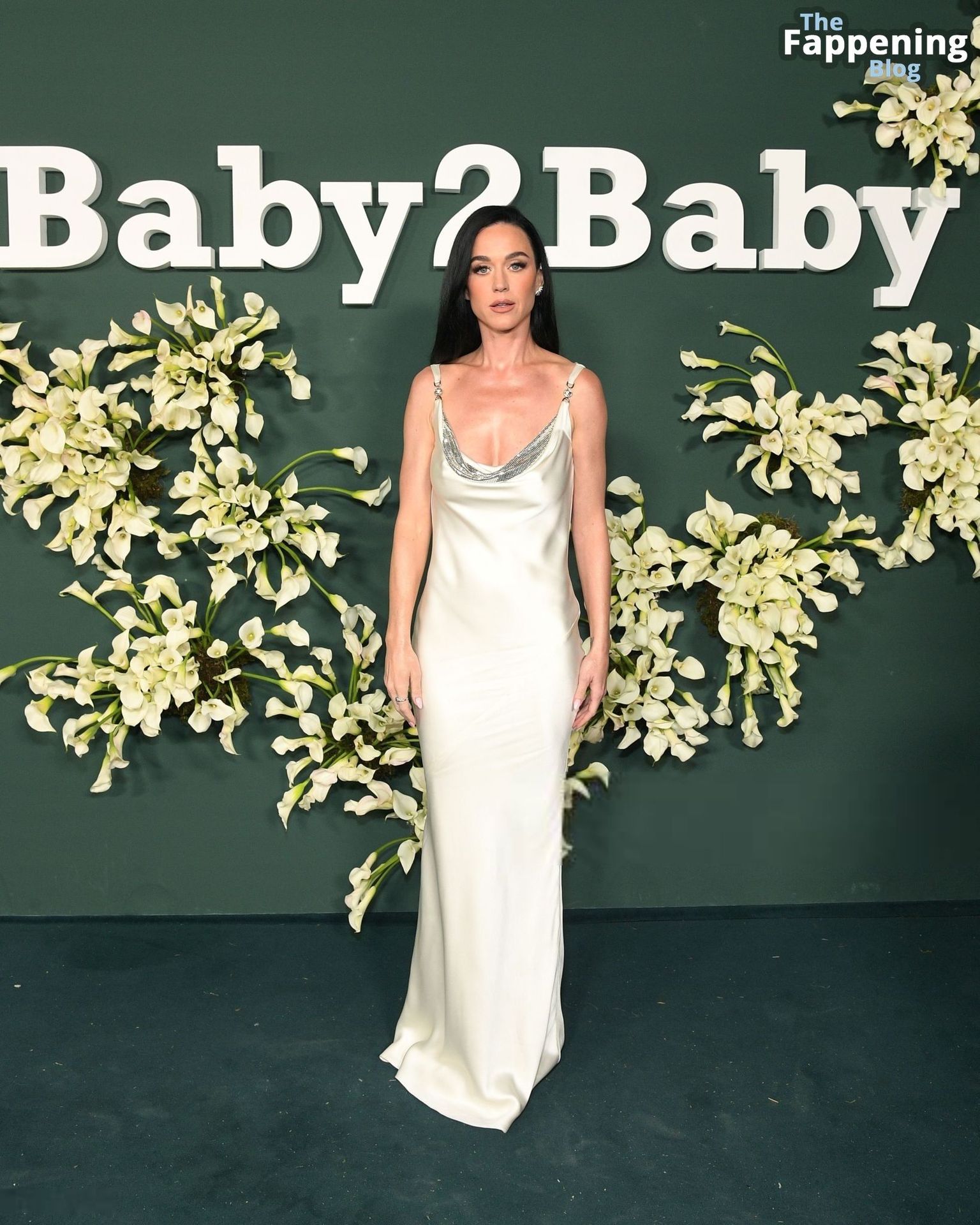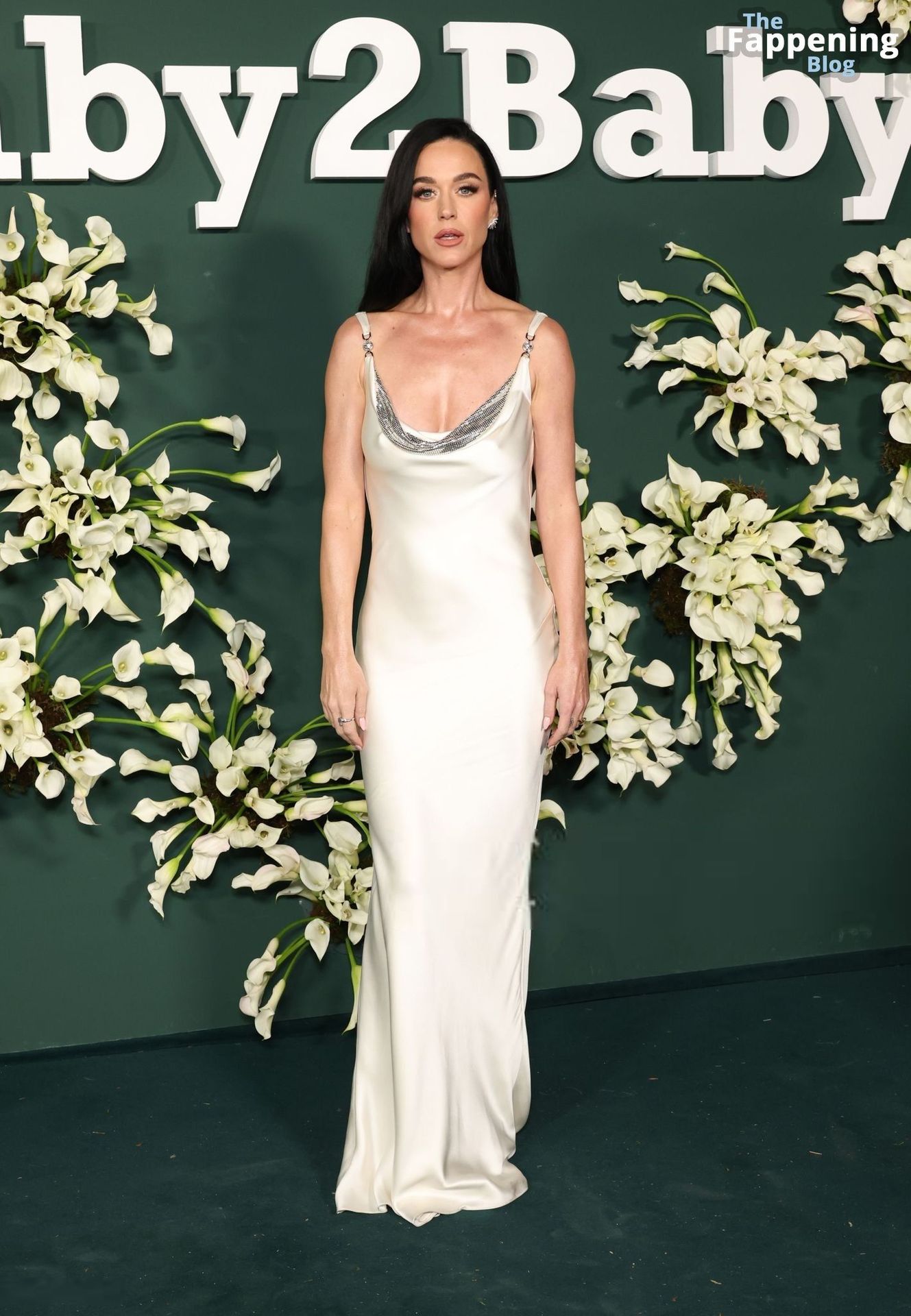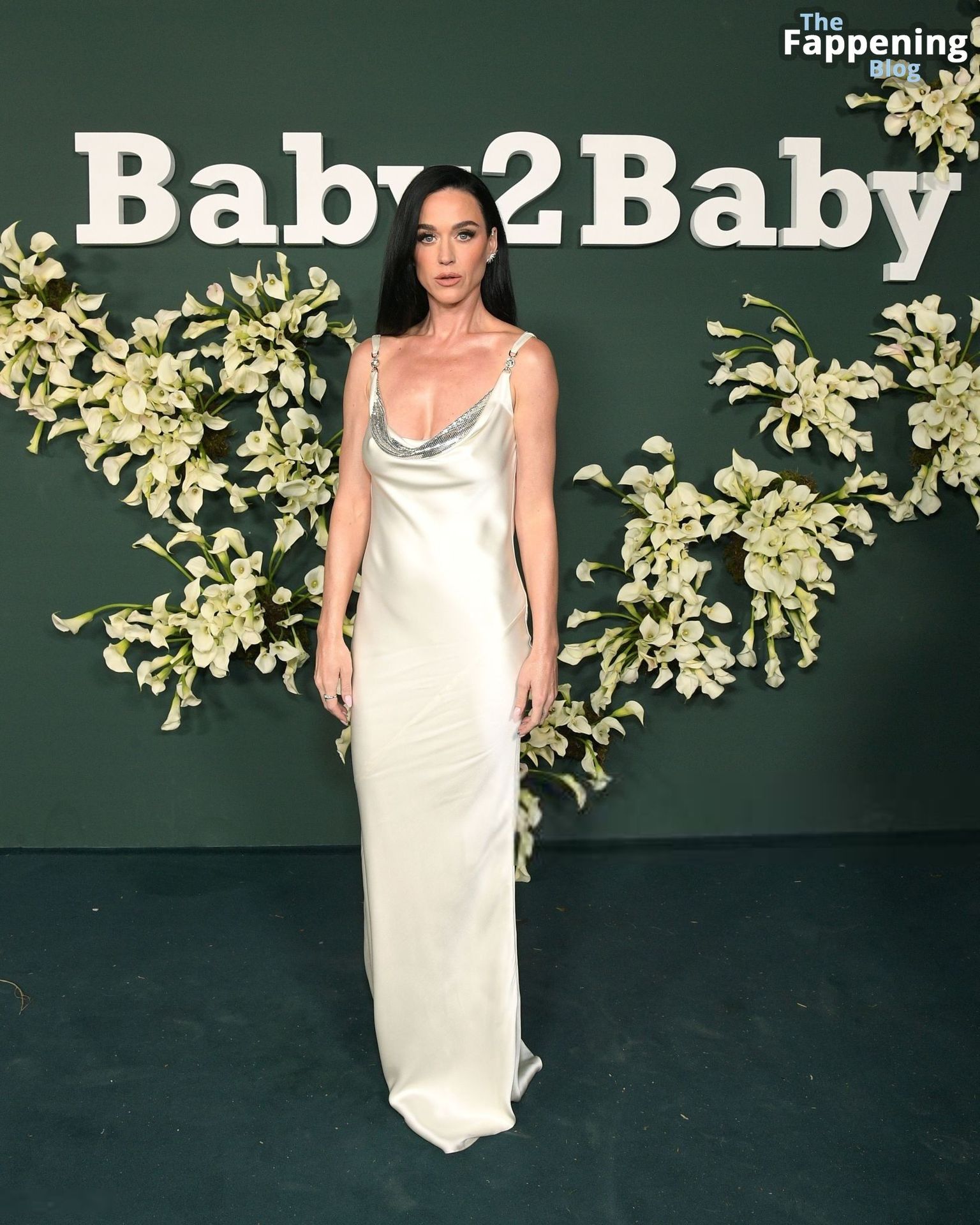 Katy Perry salió sin sujetador, mostrando un poco de pezones a través de un vestido de satén después de arreglarse para la gala Baby2Baby.