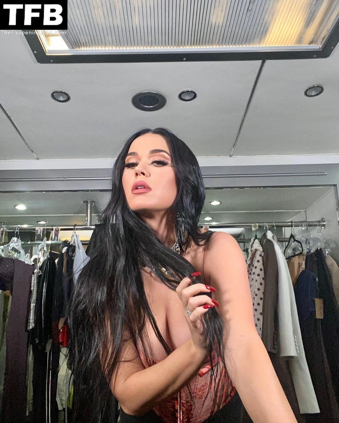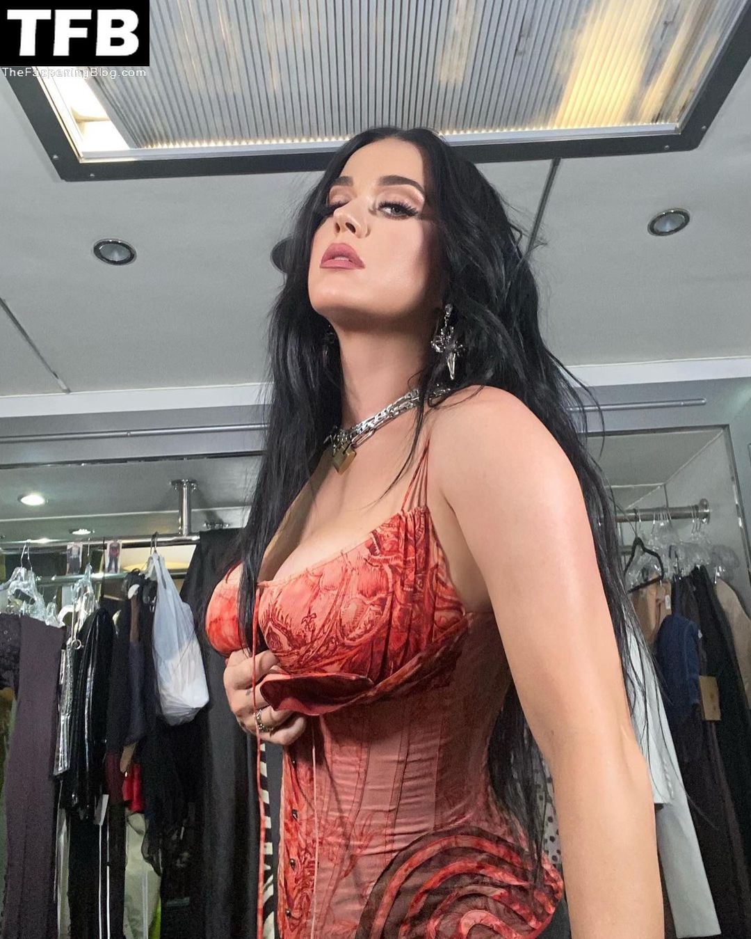 La cantante Katy Perry provoca a sus fans con sus pechos mientras comparte fotos detrás de cámaras de su show en Las Vegas (enero de 2022).