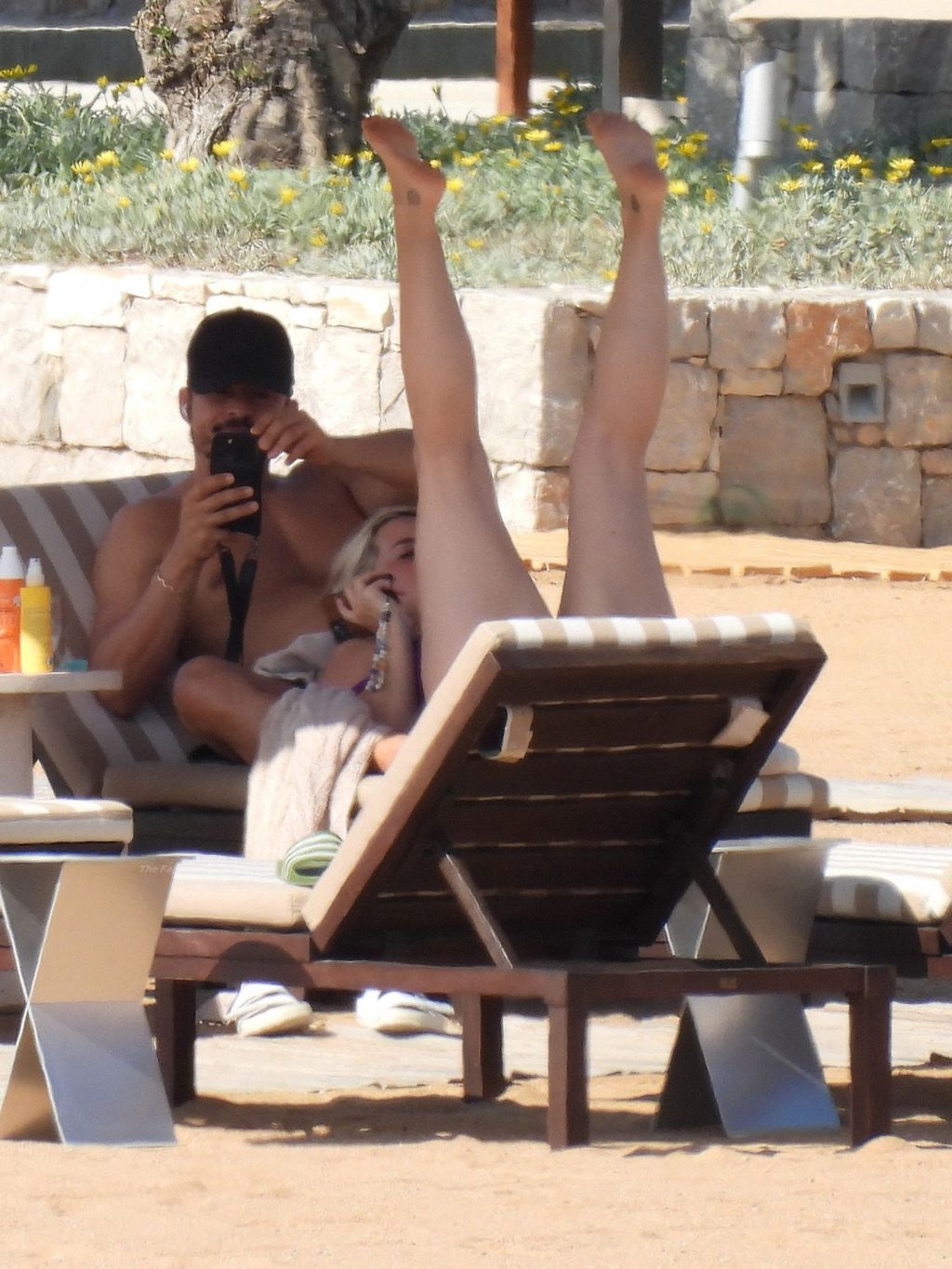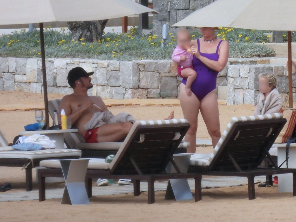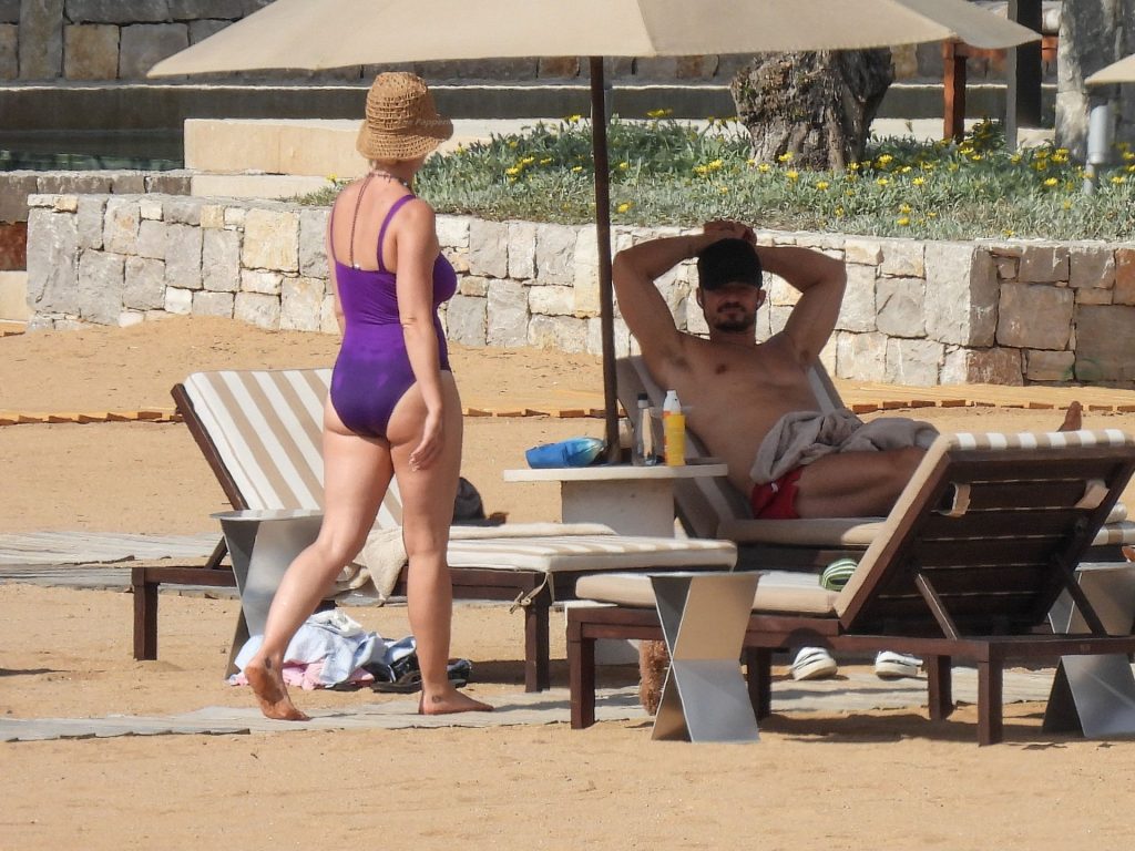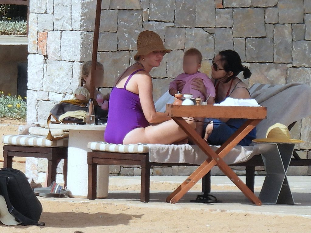 La megaestrella del pop, de 36 años, lució un llamativo traje de una pieza mientras tomaba el sol y se daba un baño mientras la familia se relajaba en el Peloponeso.