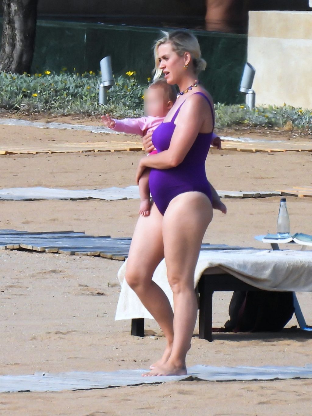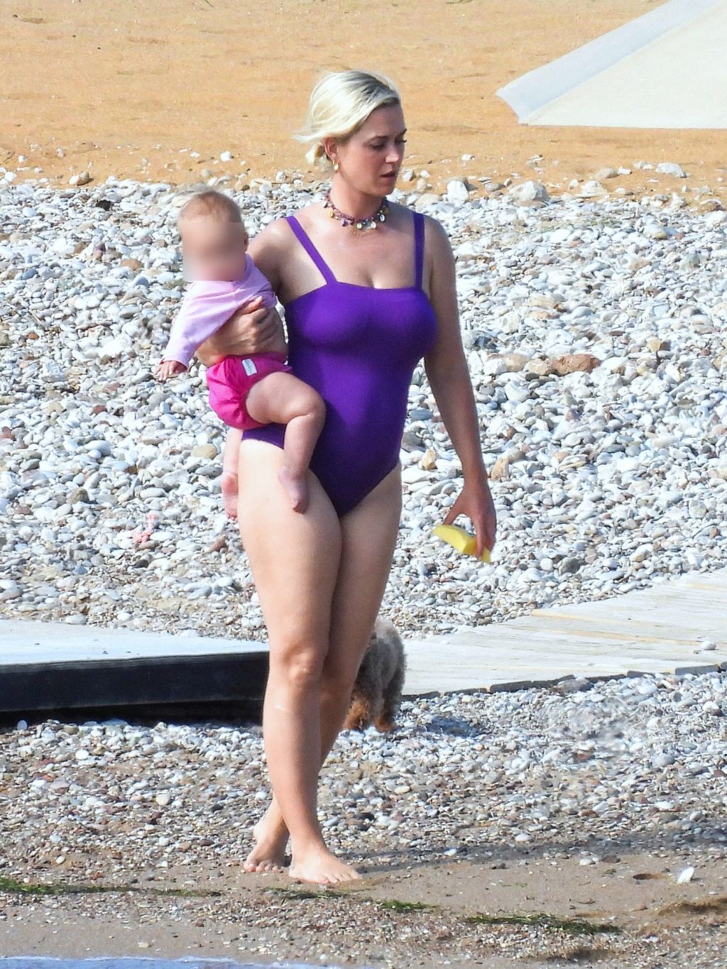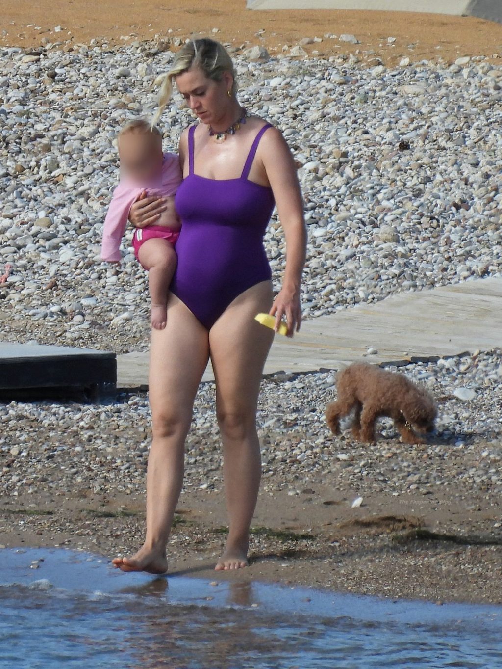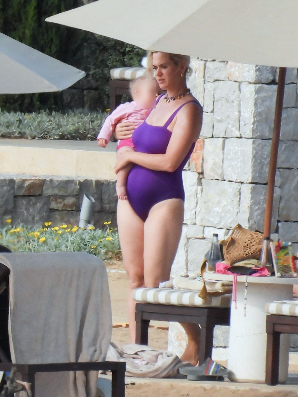 La nueva mamá Katy Perry deslumbra con un traje de baño morado mientras disfruta de unas vacaciones en Grecia con su esposo Orlando Bloom y su hija bebé Daisy Dove Bloom, 20/06/2021.