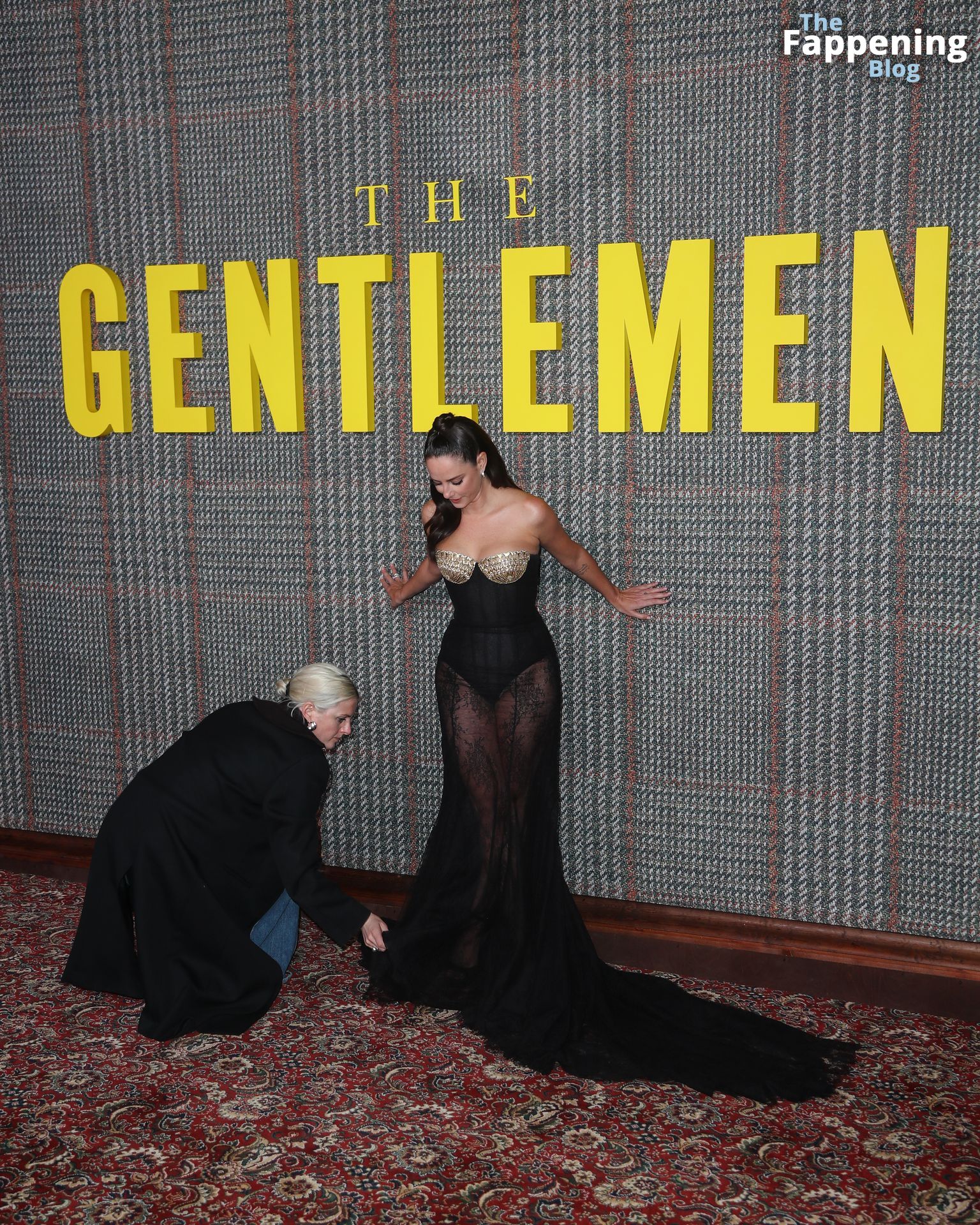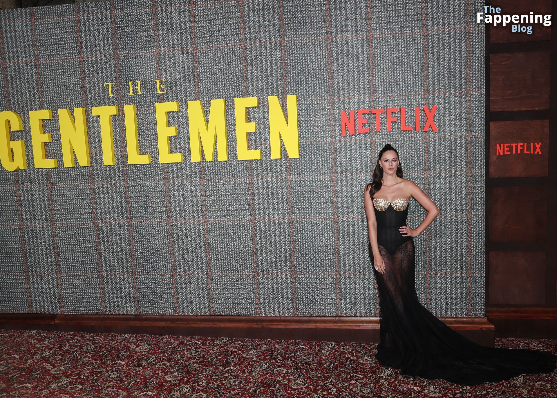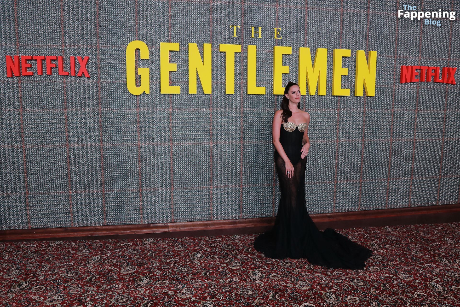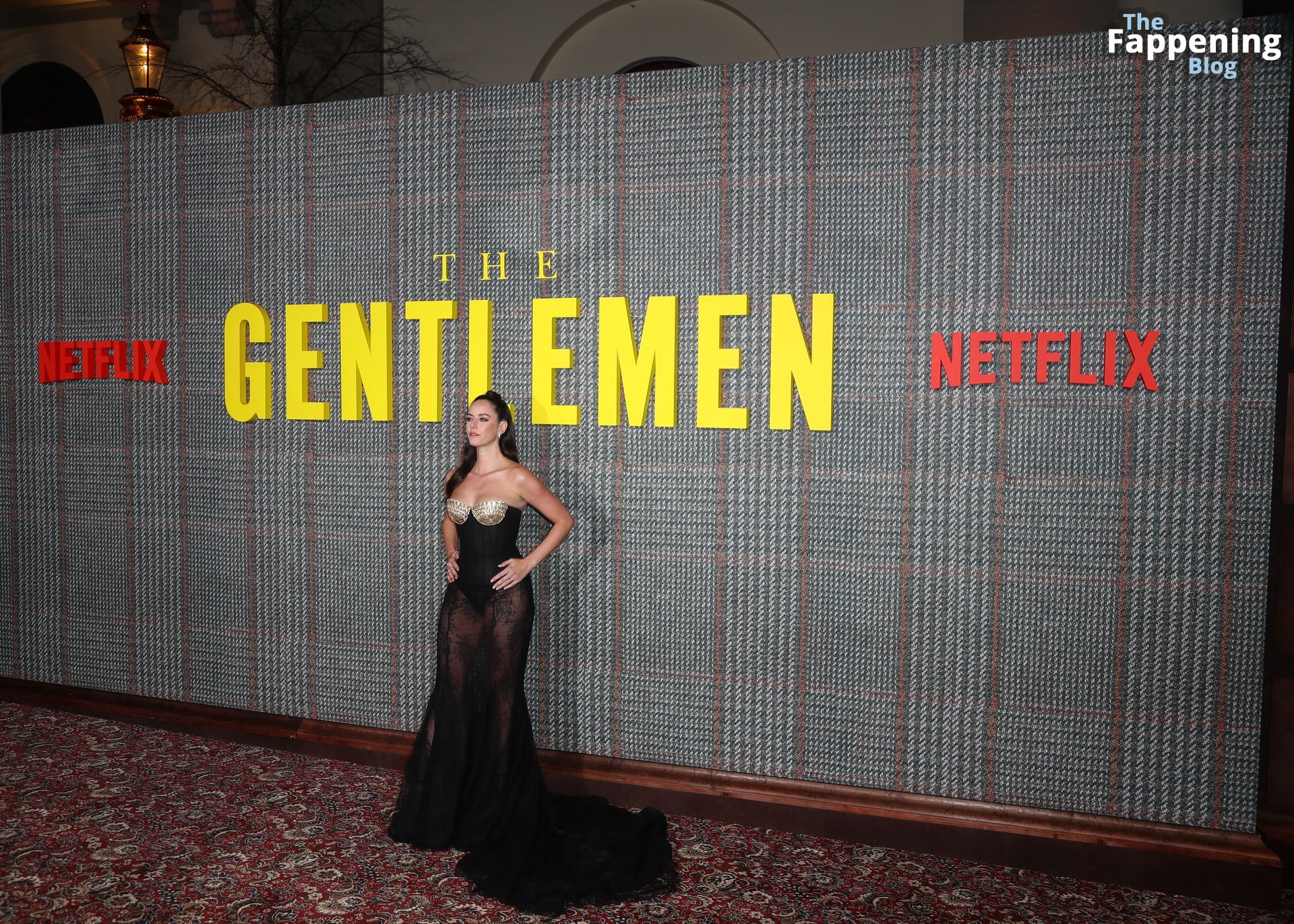 Disfruta del encanto de la actriz Kaya Scodelario mientras presume su hermoso escote en el estreno global de la serie británica “The Gentlemen” en el Theatre Royal Drury Lane de Londres.