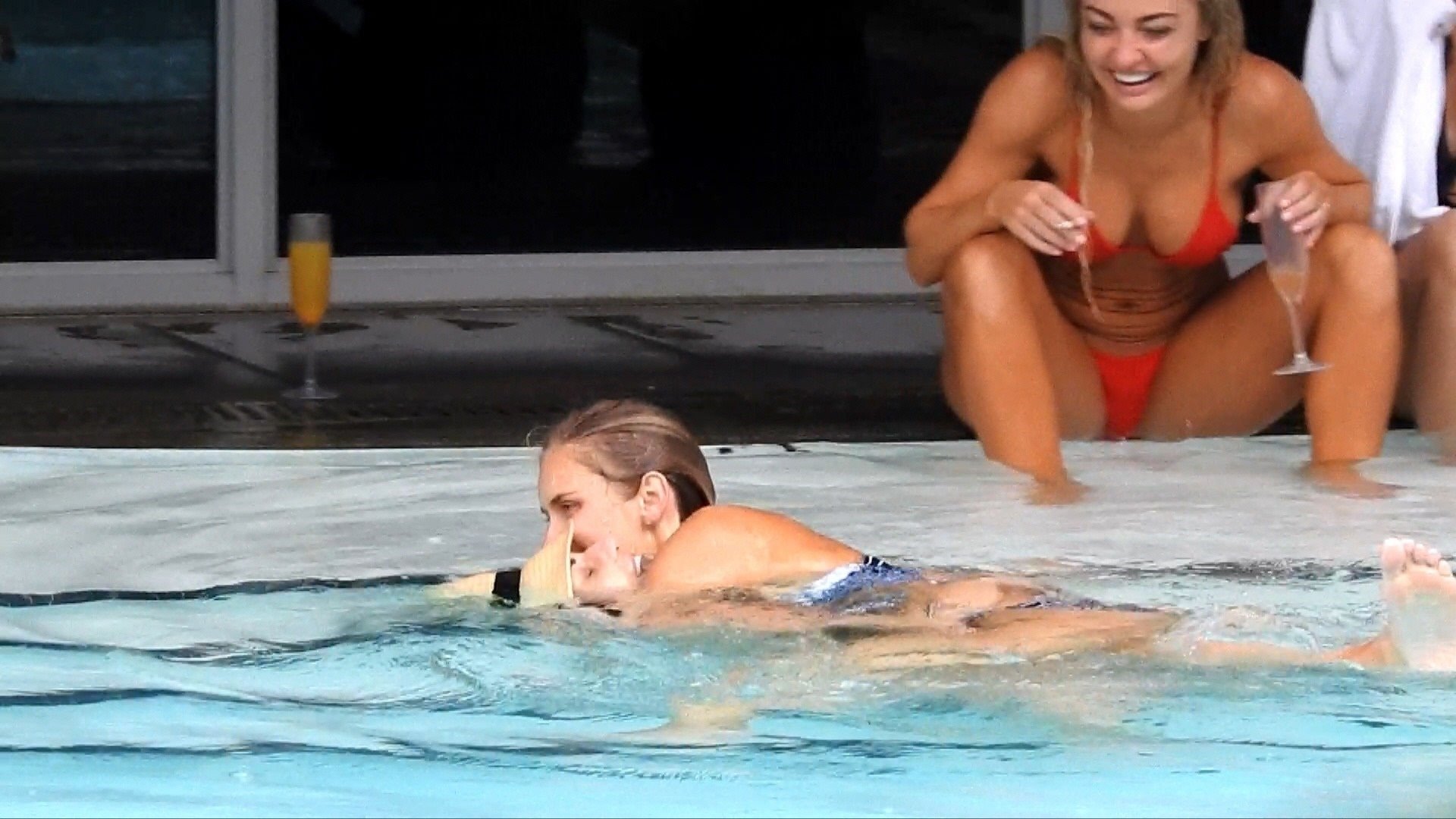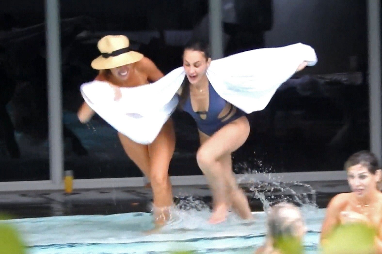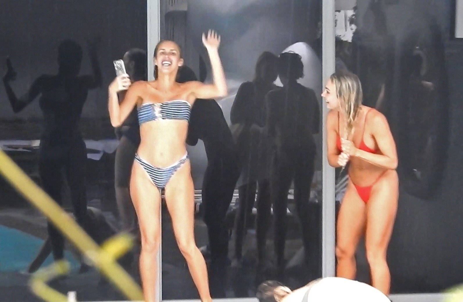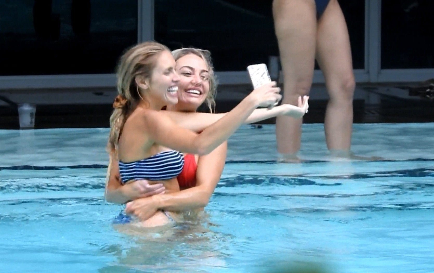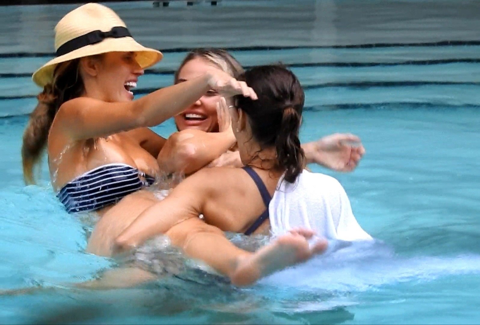 Se la ve riendo, bailando, nadando y abrazando a su adorable grupo de despedida de soltera, todas con bikinis. Se les ve en un abrazo grupal muy cercano dentro de la piscina, y una de las chicas mostró sus pechos y pezón. Su amiga cercana, la bomba rubia y DJ Brooke Evers, lució fantástica con un bikini rojo, y Kayla publicó todos los nombres de las chicas en su Instagram.