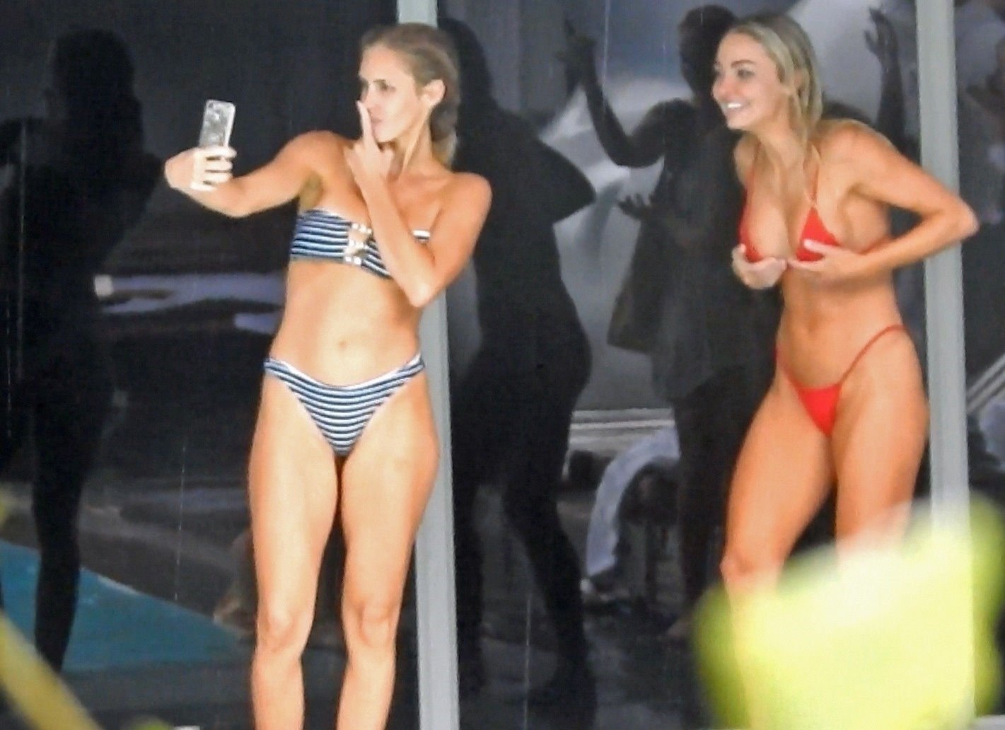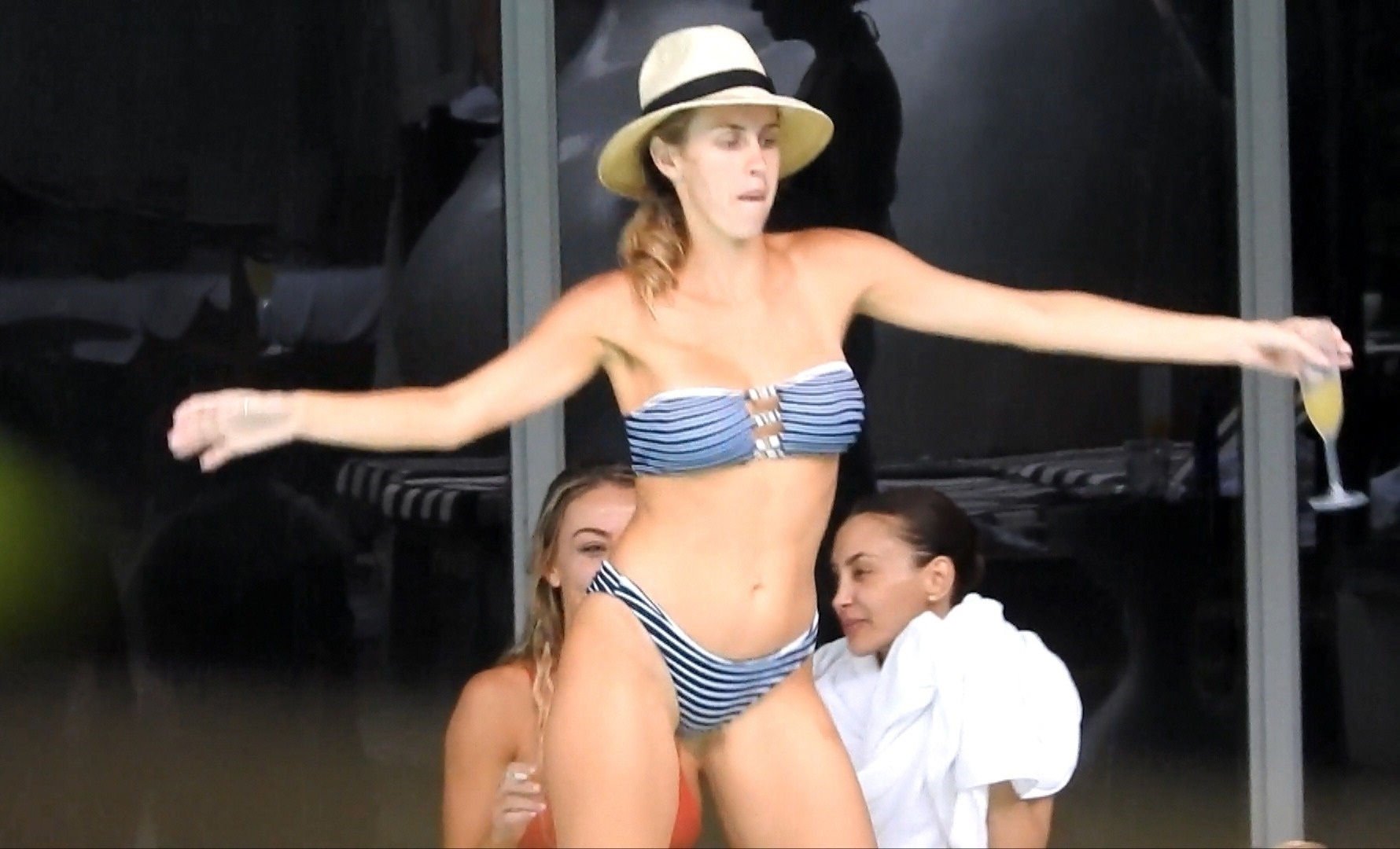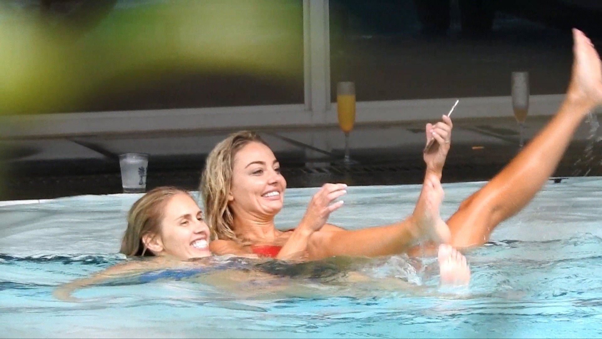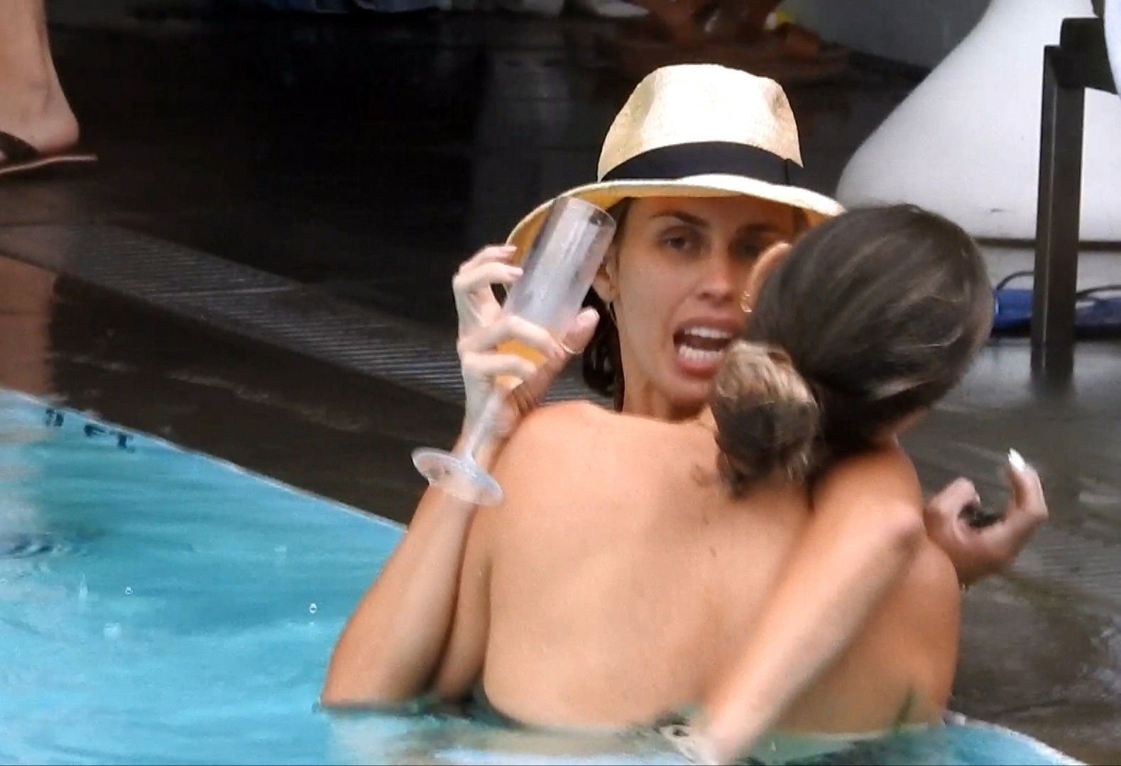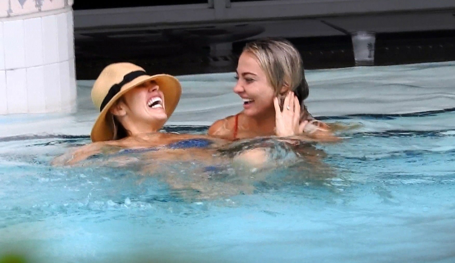 Se la ve riendo, bailando, nadando y abrazando a su adorable grupo de despedida de soltera, todas con bikinis. Se les ve en un abrazo grupal muy cercano dentro de la piscina, y una de las chicas mostró sus pechos y pezón. Su amiga cercana, la bomba rubia y DJ Brooke Evers, lució fantástica con un bikini rojo, y Kayla publicó todos los nombres de las chicas en su Instagram.