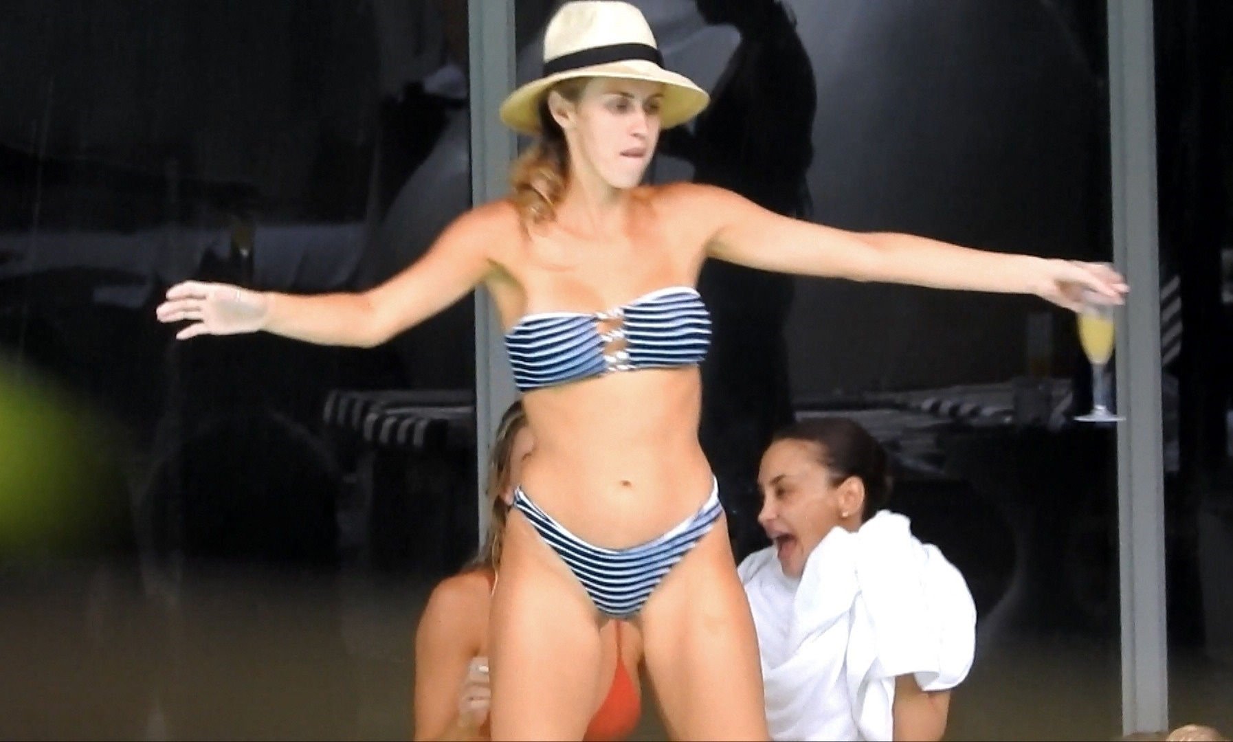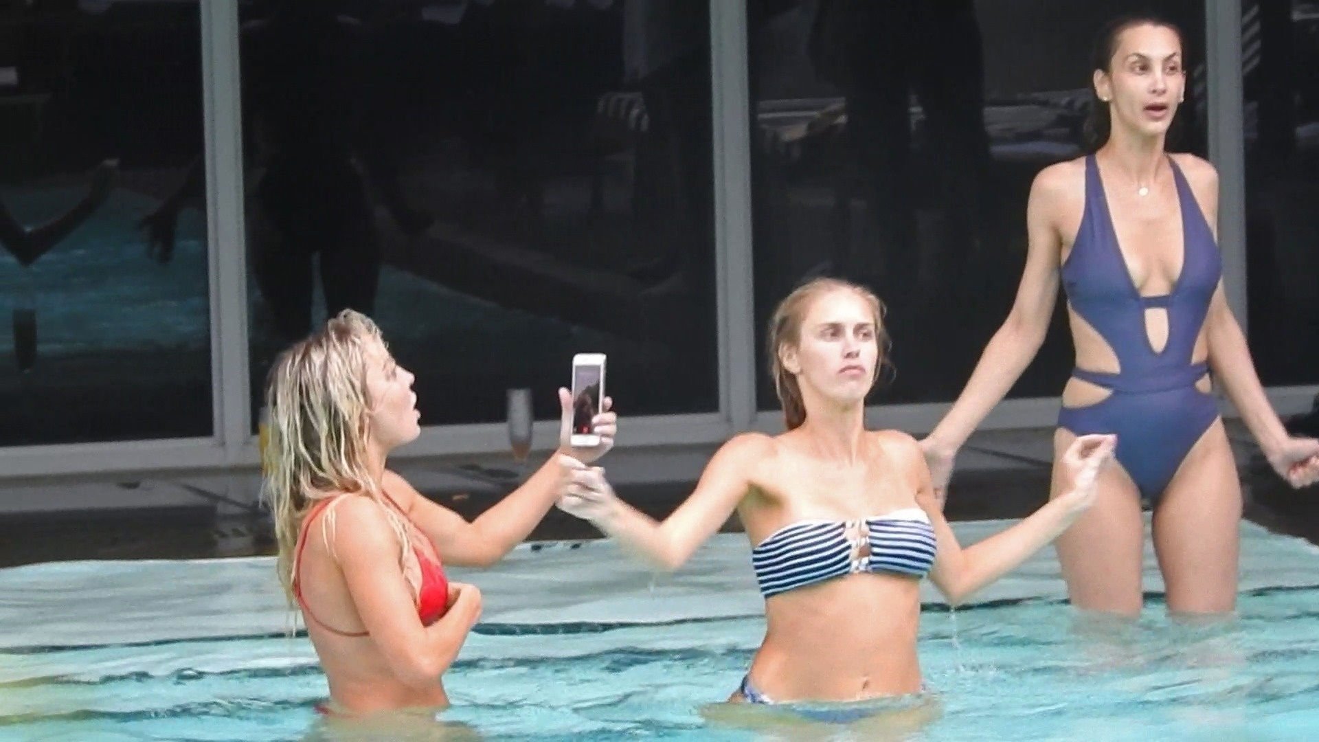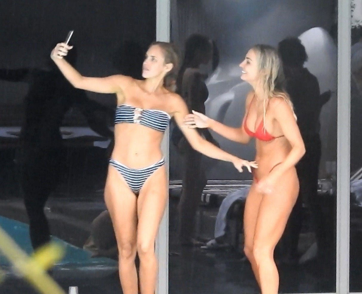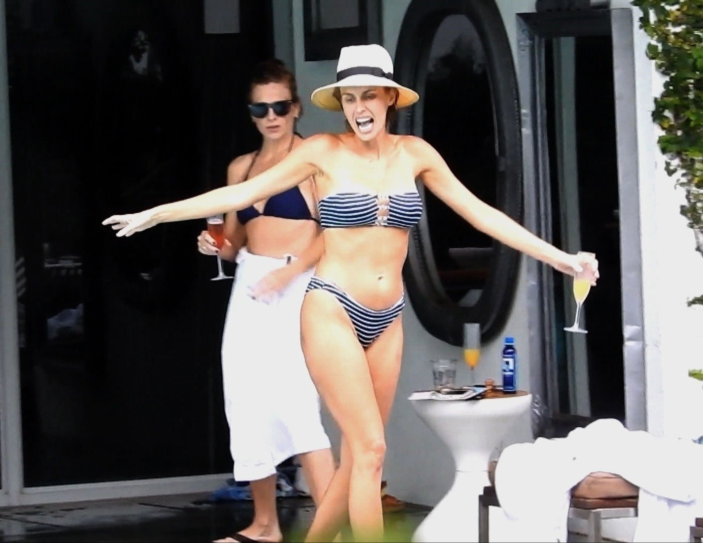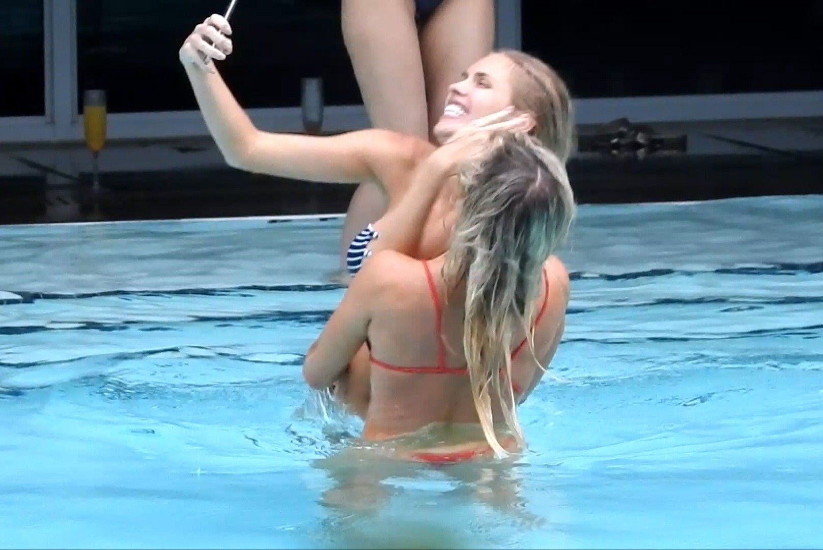 Se la ve riendo, bailando, nadando y abrazando a su adorable grupo de despedida de soltera, todas con bikinis. Se les ve en un abrazo grupal muy cercano dentro de la piscina, y una de las chicas mostró sus pechos y pezón. Su amiga cercana, la bomba rubia y DJ Brooke Evers, lució fantástica con un bikini rojo, y Kayla publicó todos los nombres de las chicas en su Instagram.