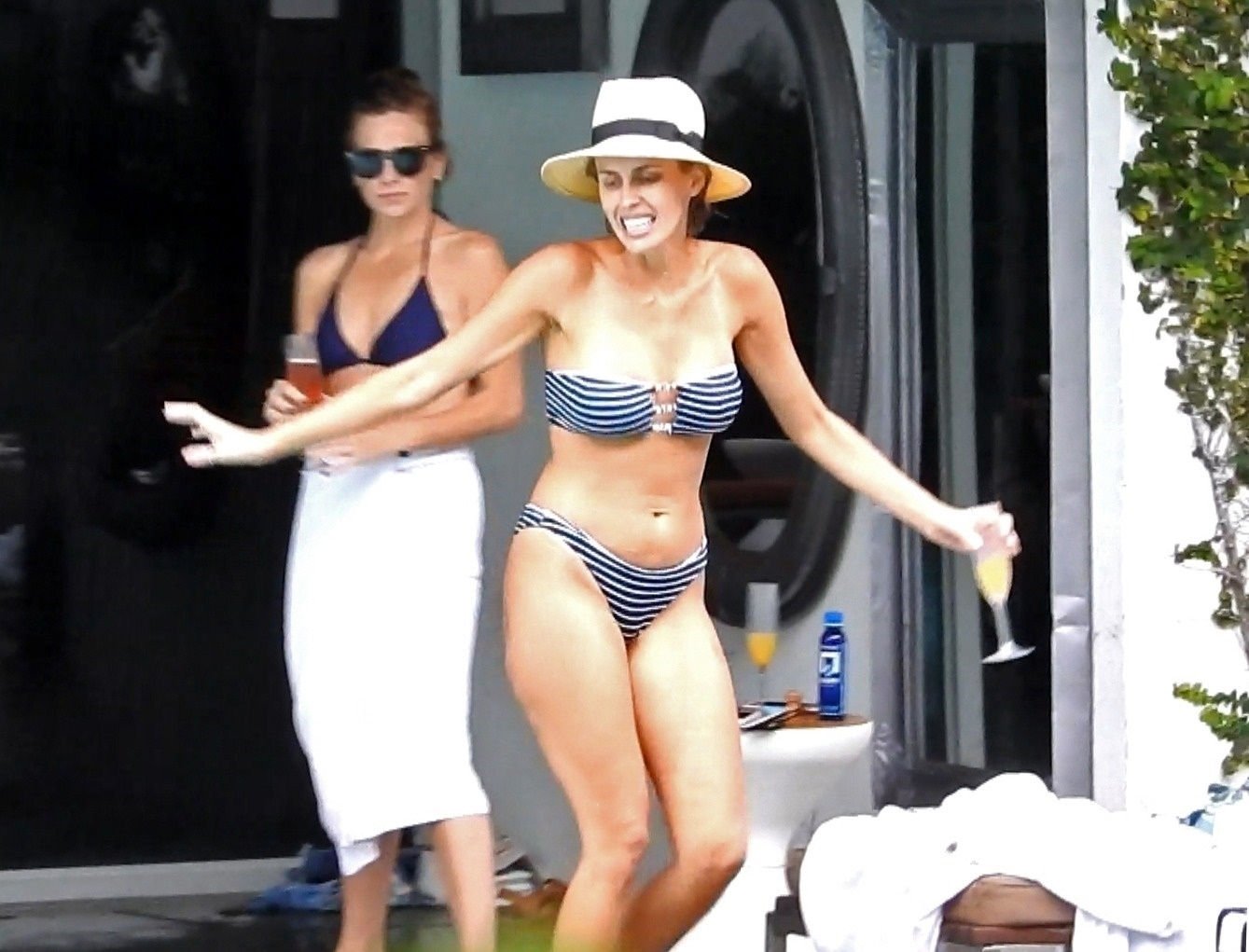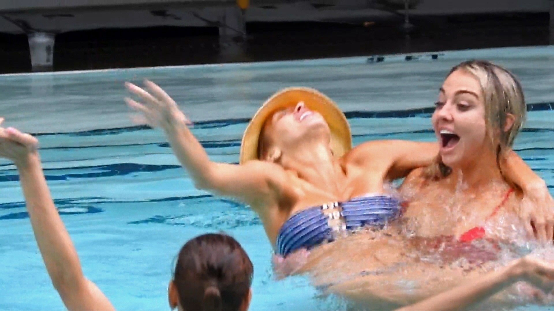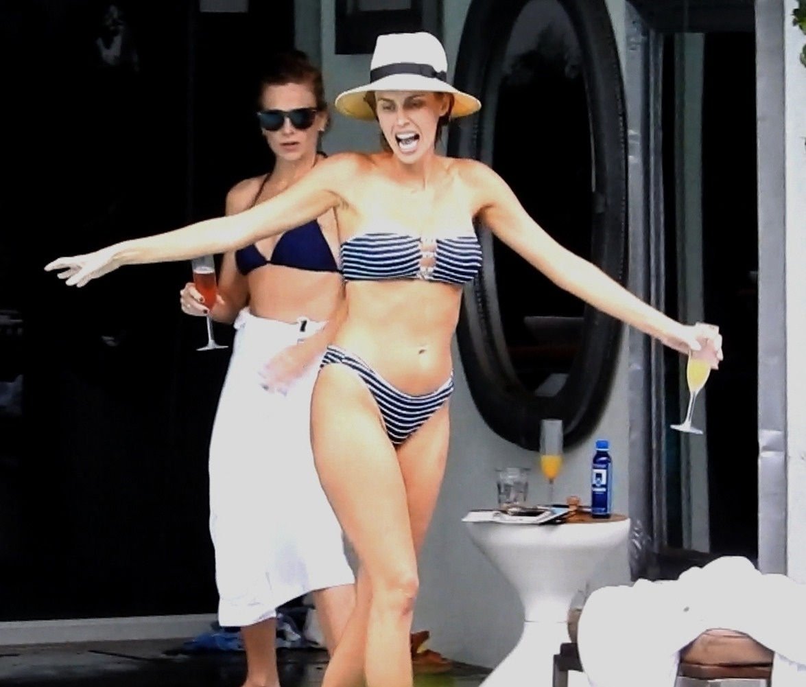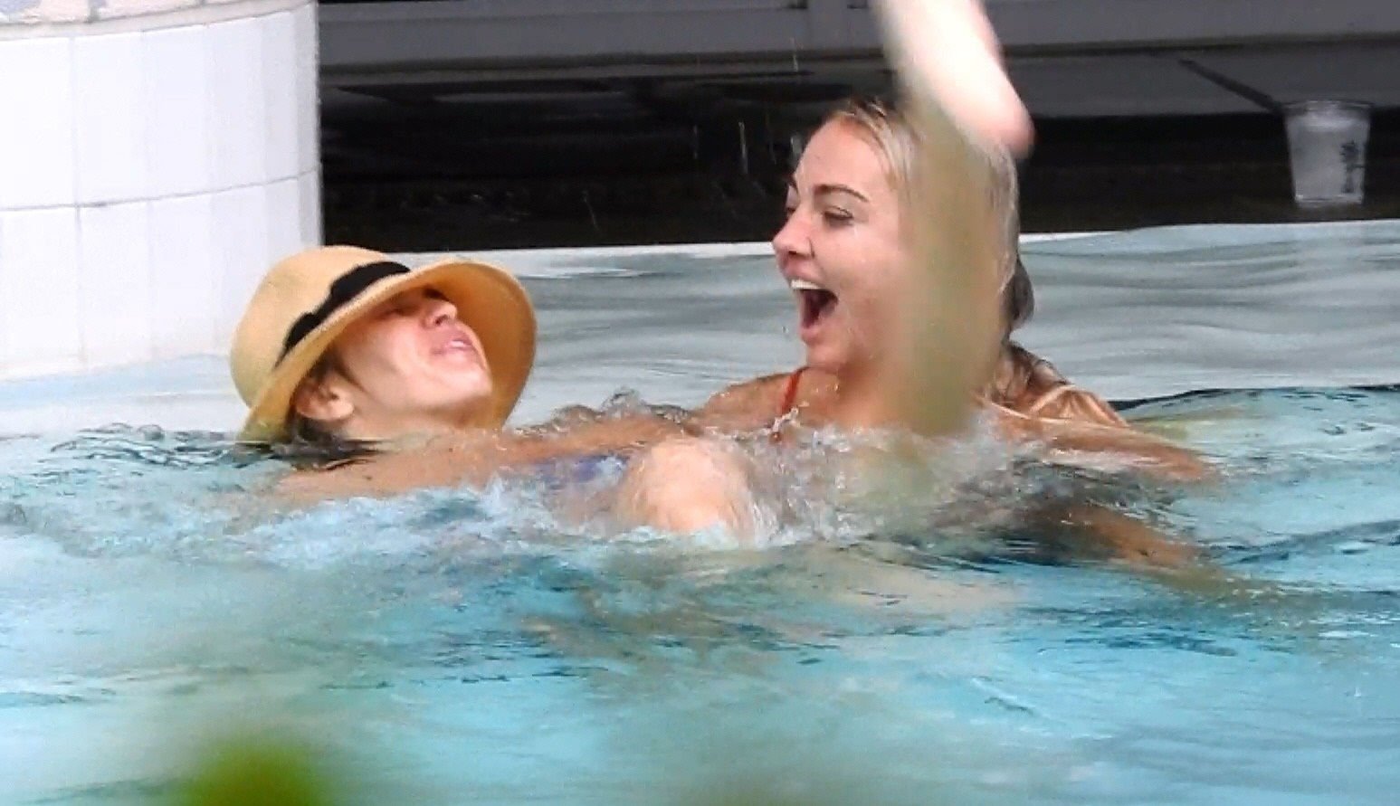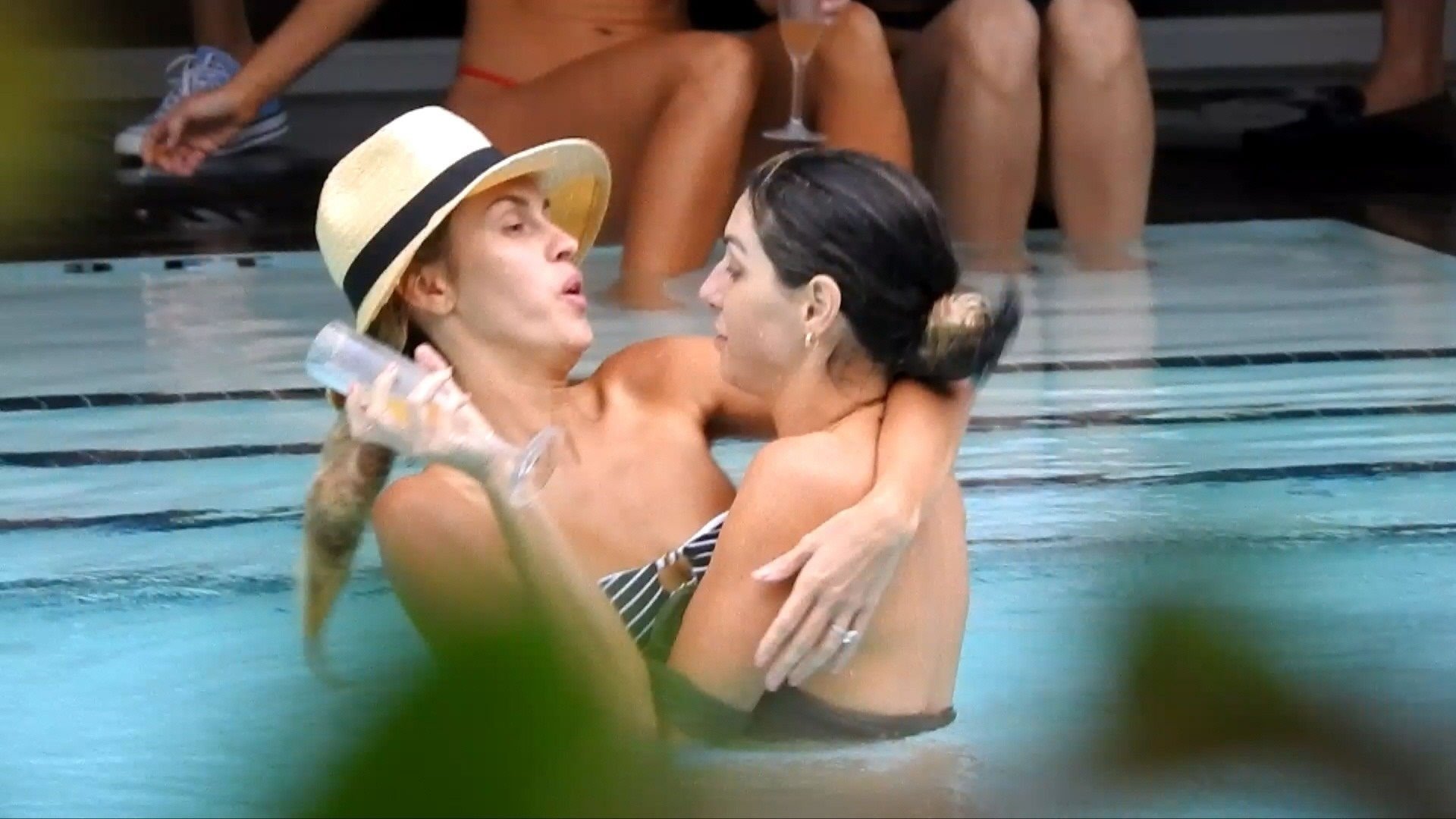 Se la ve riendo, bailando, nadando y abrazando a su adorable grupo de despedida de soltera, todas con bikinis. Se les ve en un abrazo grupal muy cercano dentro de la piscina, y una de las chicas mostró sus pechos y pezón. Su amiga cercana, la bomba rubia y DJ Brooke Evers, lució fantástica con un bikini rojo, y Kayla publicó todos los nombres de las chicas en su Instagram.