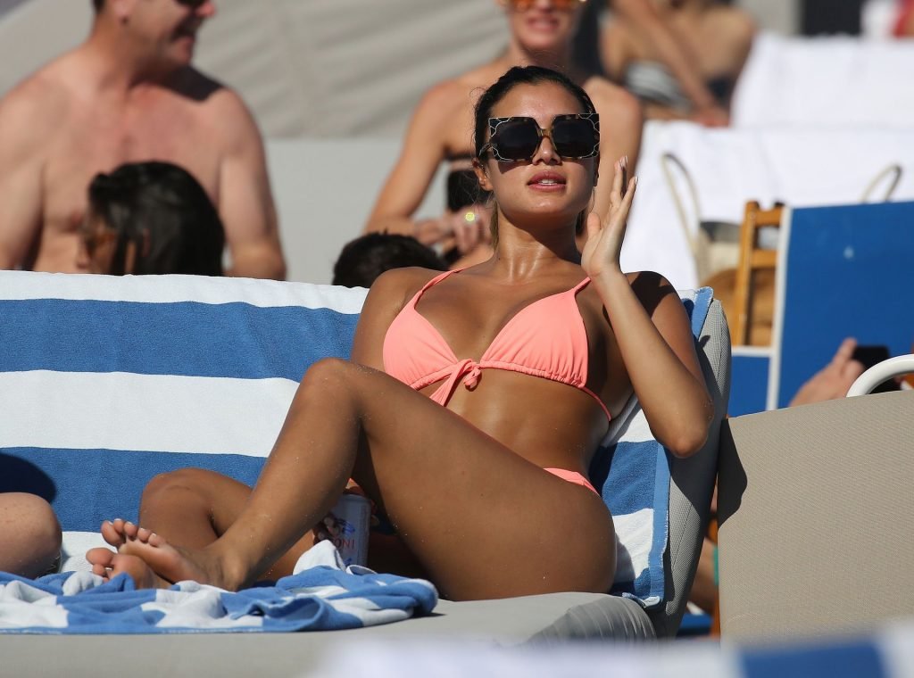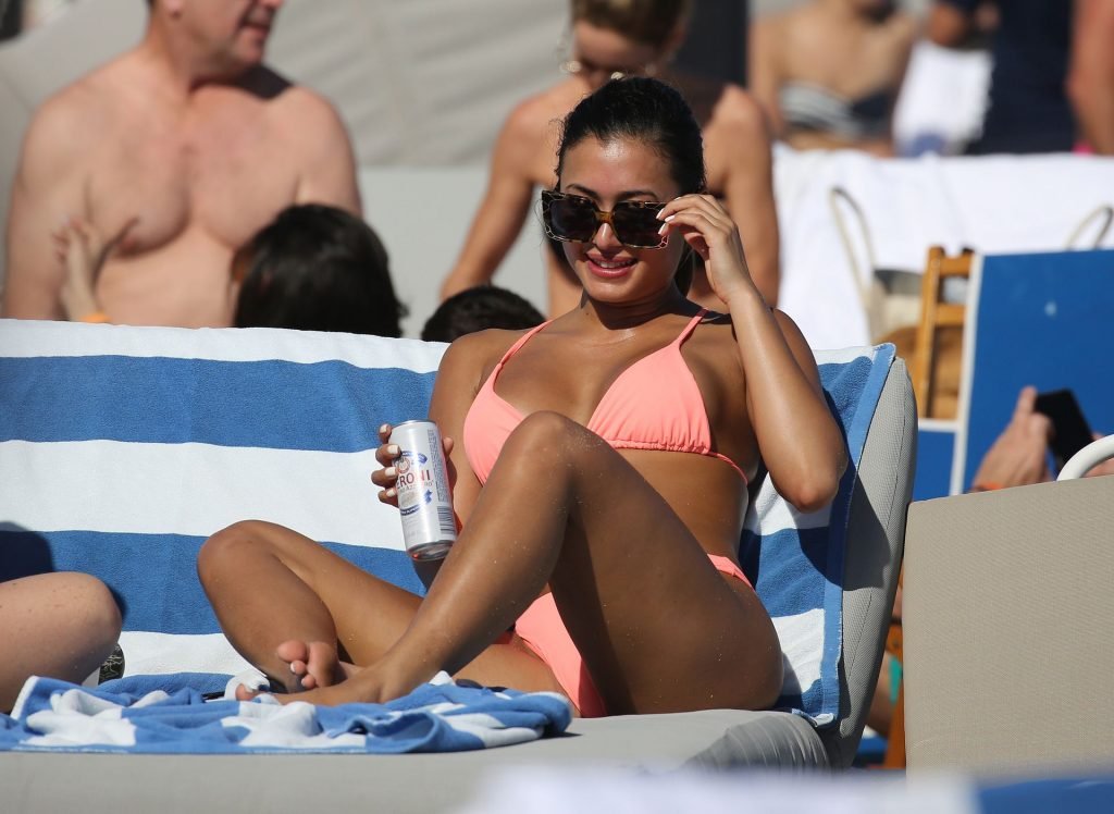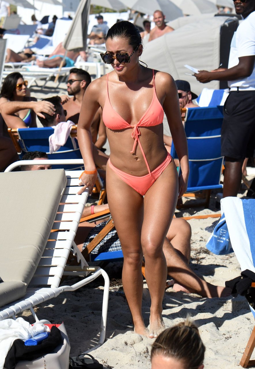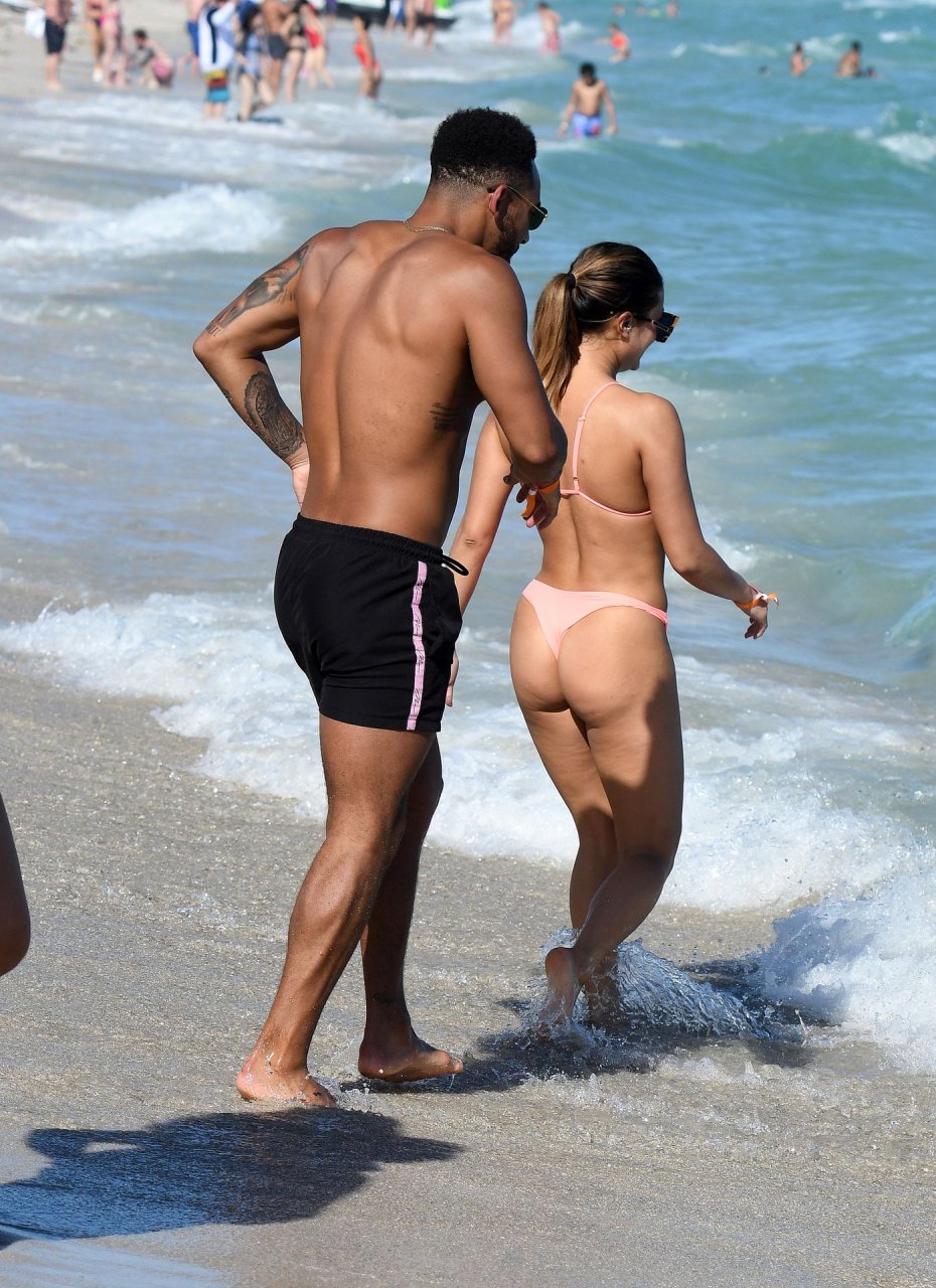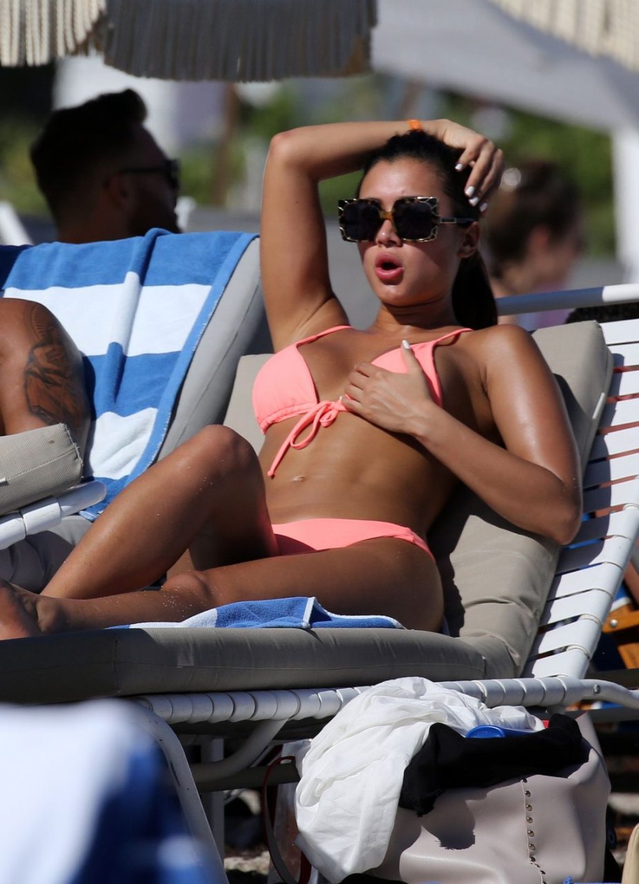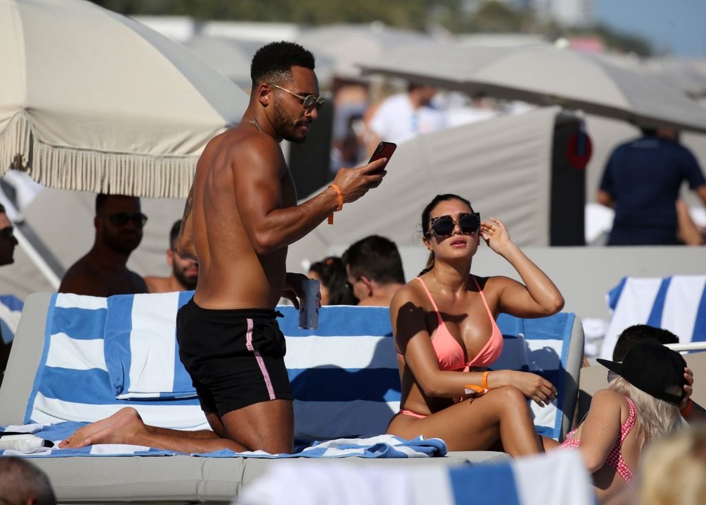Kazimir “Kaz” Crossley de Love Island lleva un bikini color durazno mientras disfruta de la playa con su novio Josh Denzel en Miami, 01/02/2019.