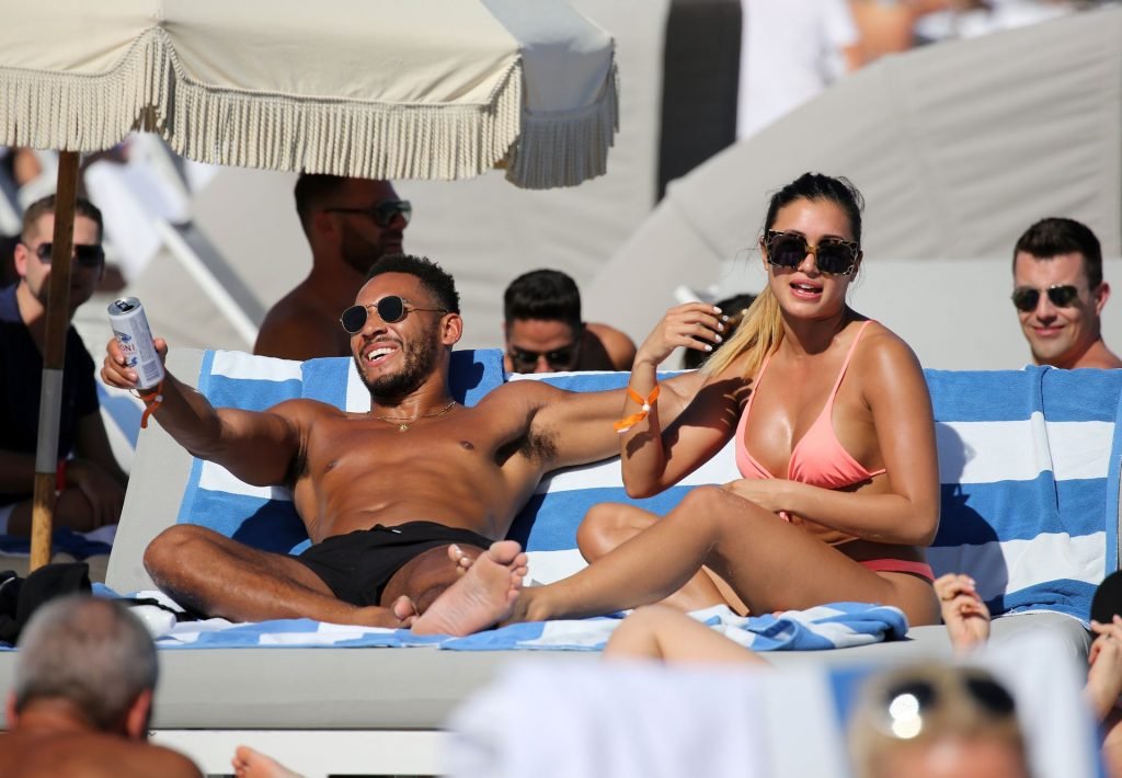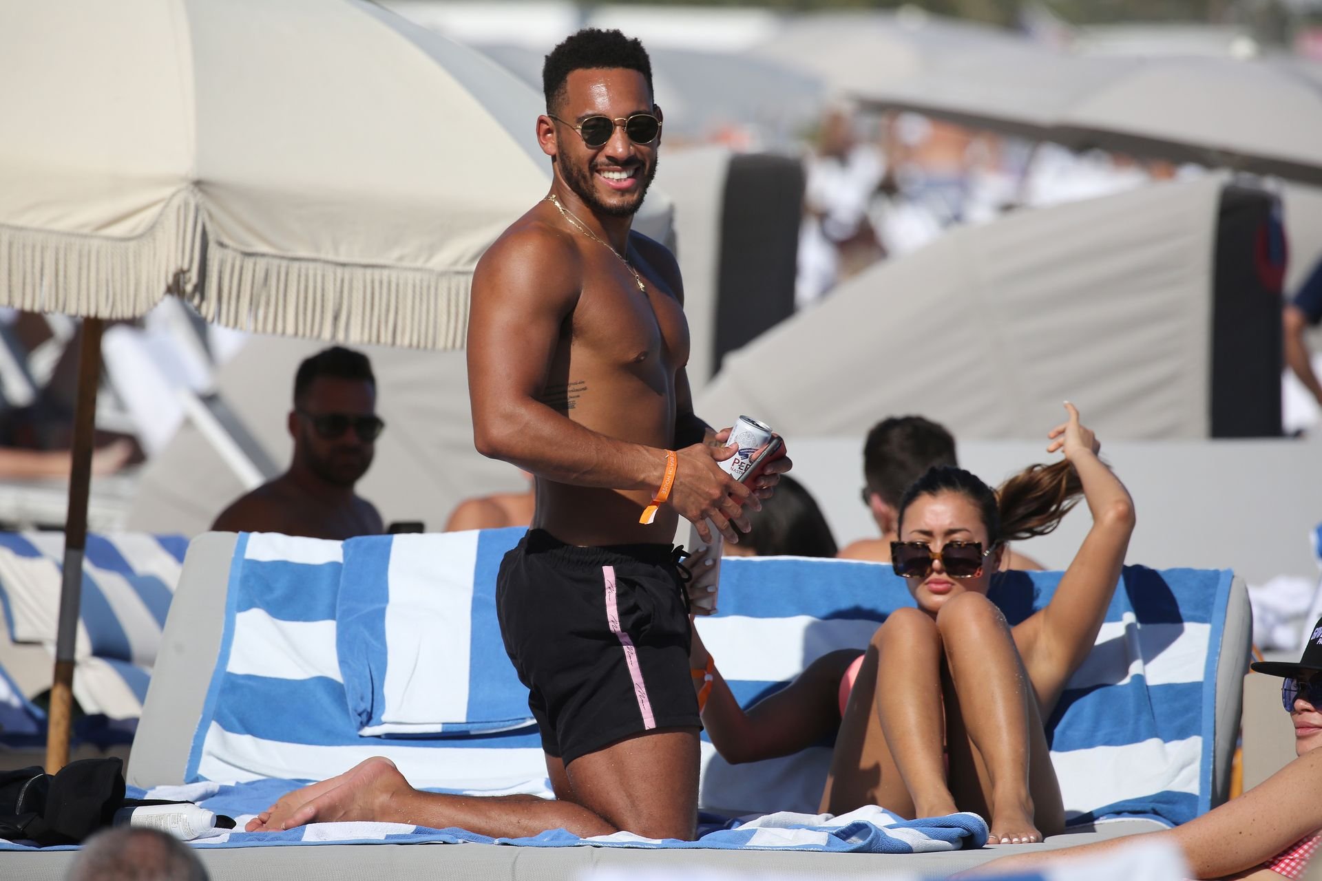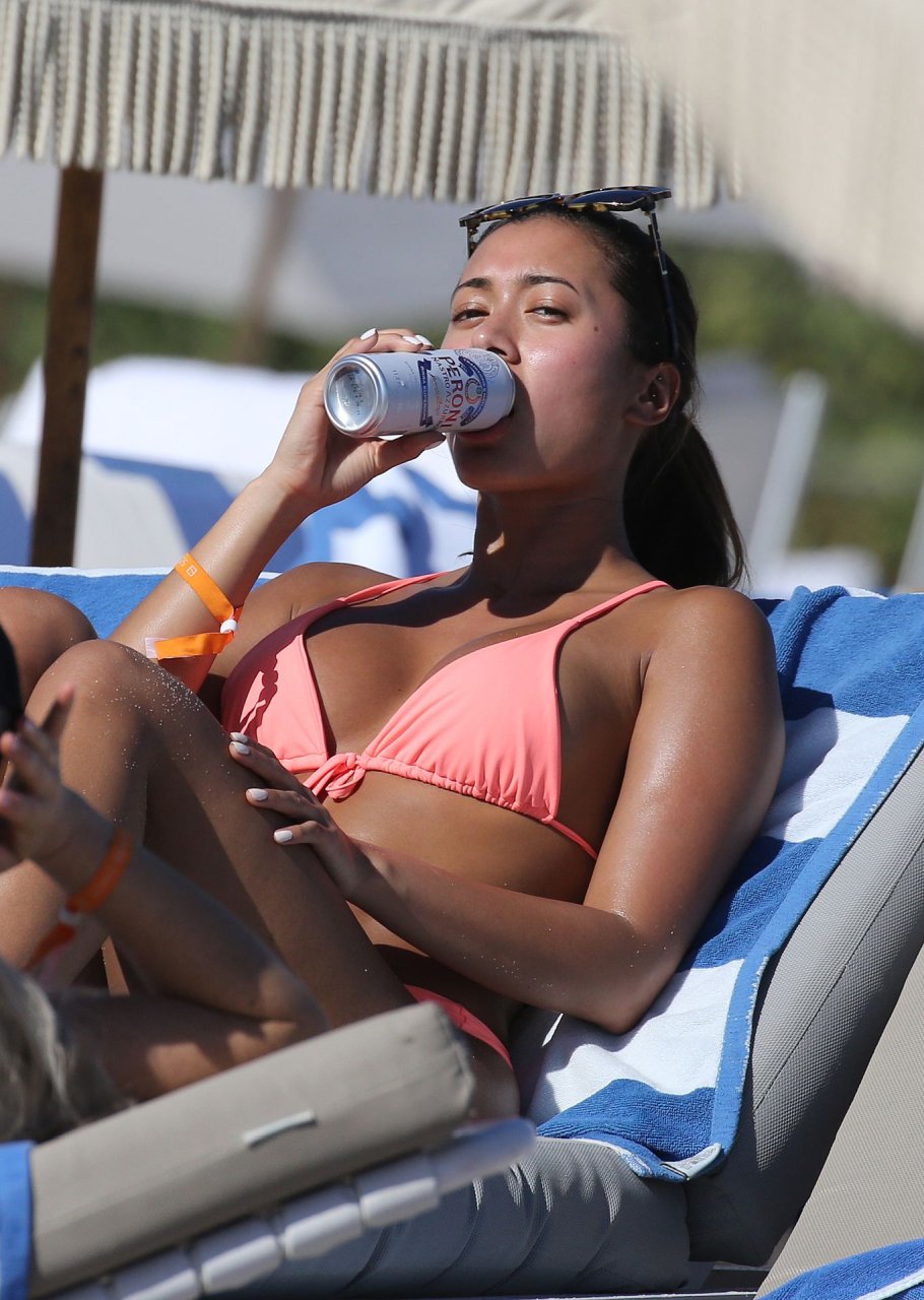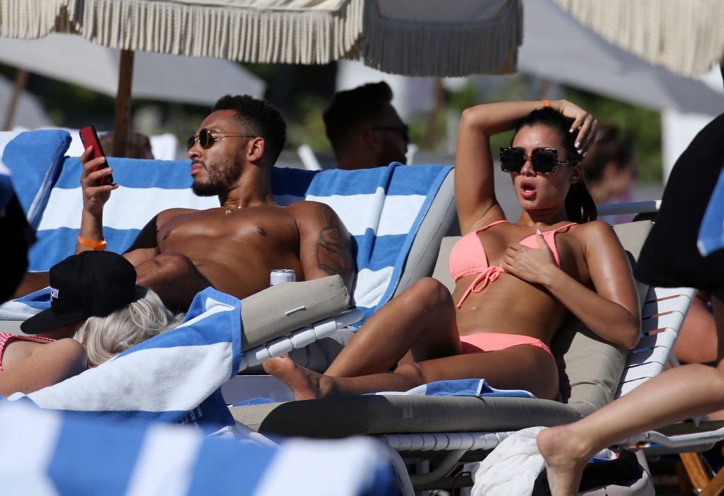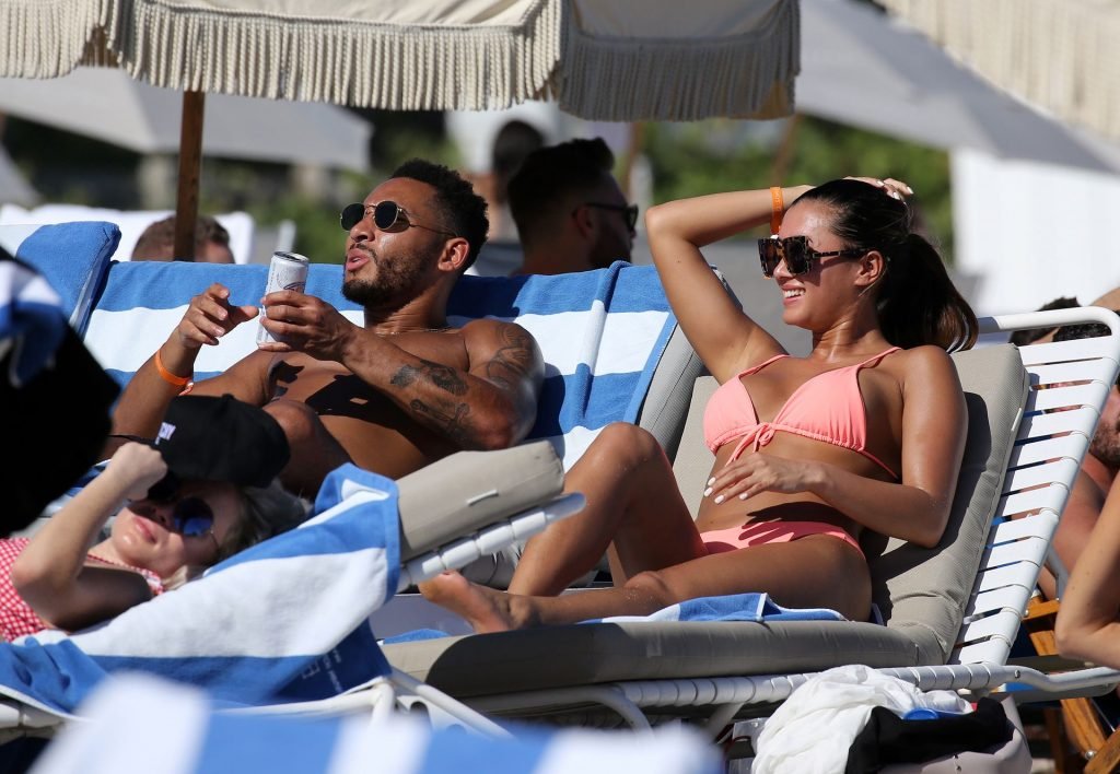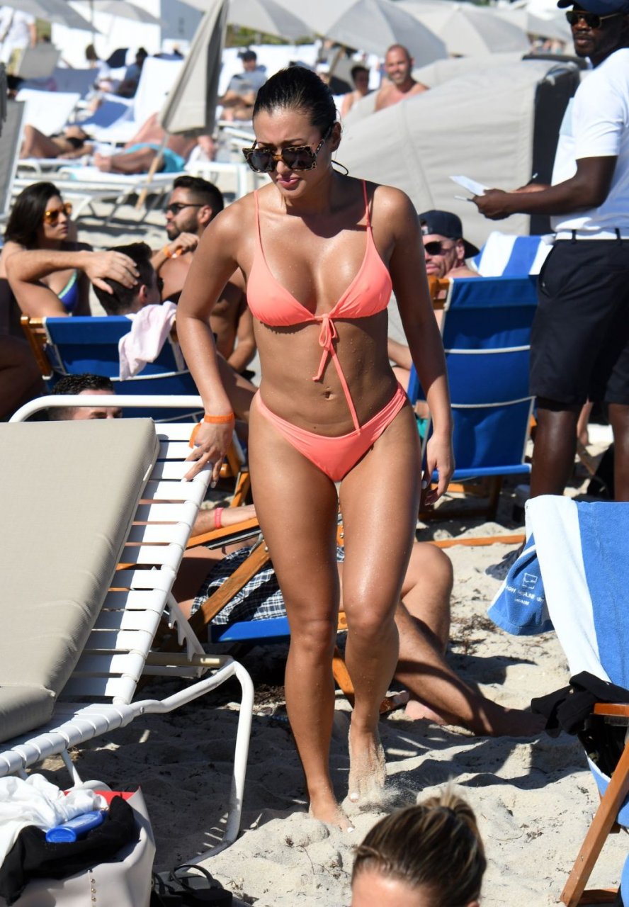Kazimir “Kaz” Crossley de Love Island lleva un bikini color durazno mientras disfruta de la playa con su novio Josh Denzel en Miami, 01/02/2019.