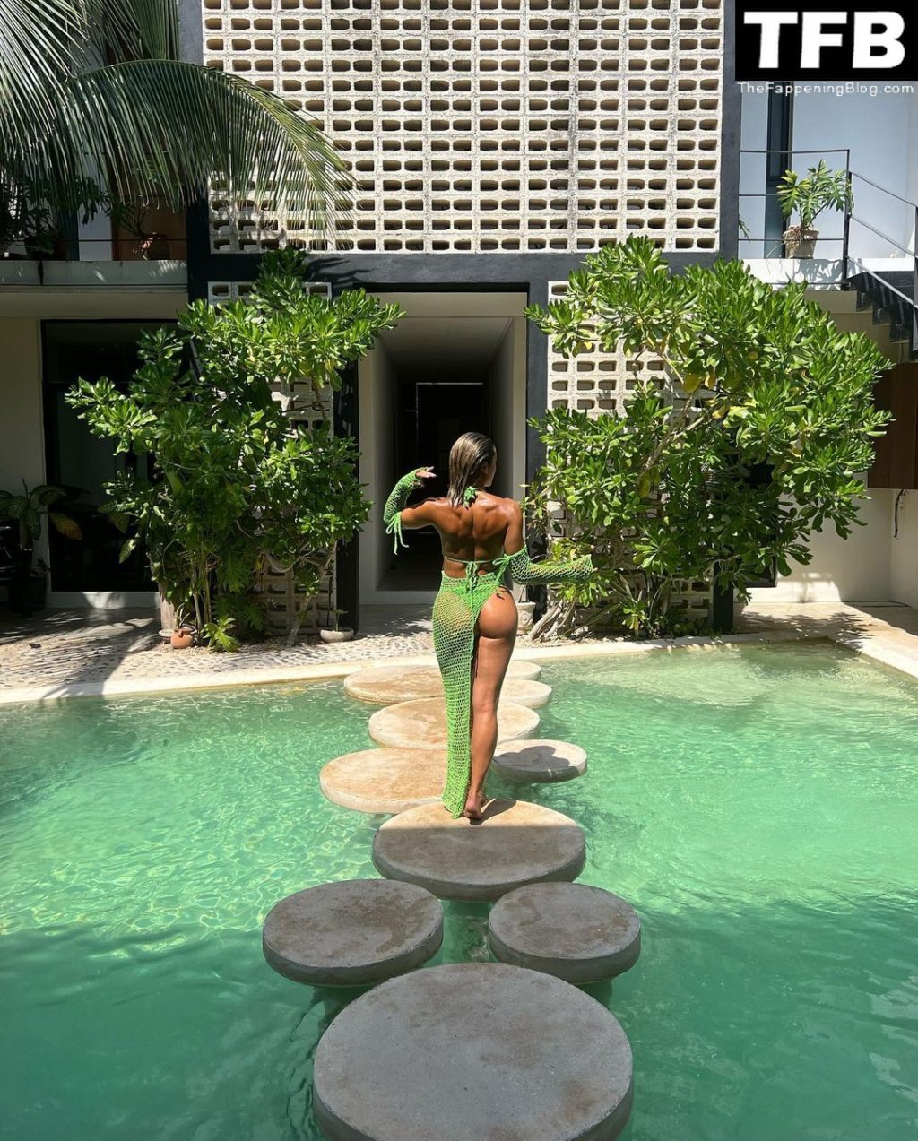 Kazimir Crossley muestra sus pechos sexys, trasero y piernas en las fotos espontáneas y de redes sociales a continuación.