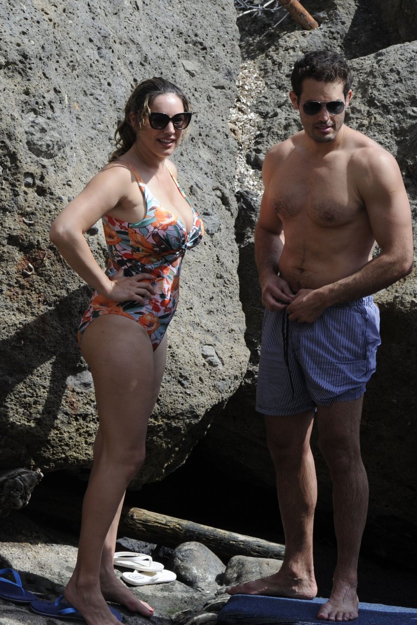 Kelly Brook vistiendo un traje de baño en Ischia, 16/07/2016. ¡Chica con curvas! Kelly Brook es una modelo, actriz y presentadora de televisión inglesa. Edad: 36 (23 de noviembre de 1979).