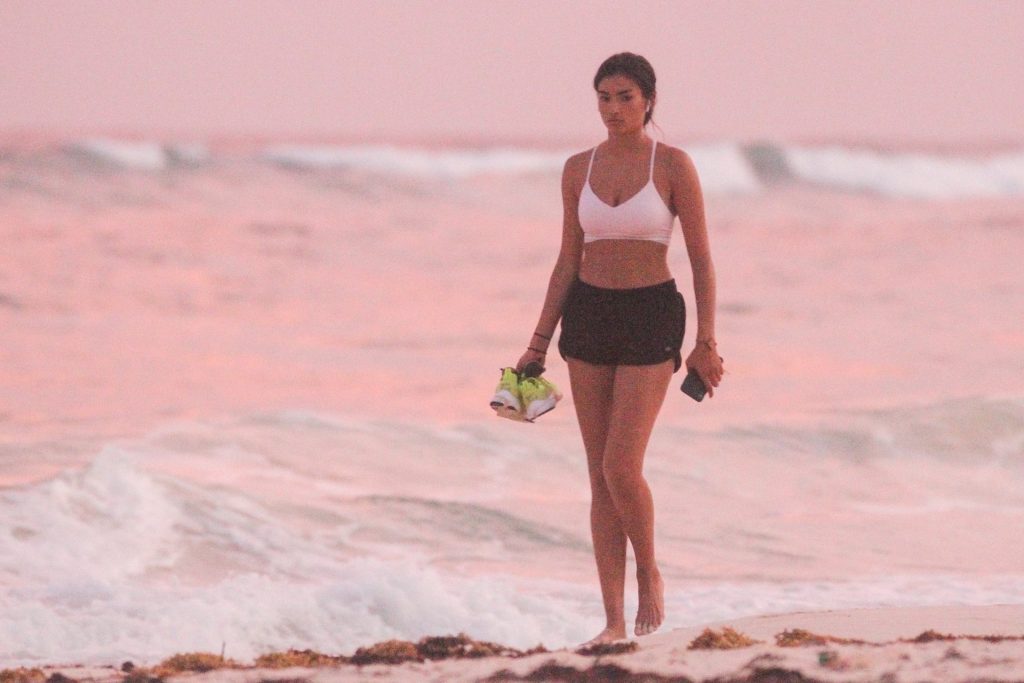 La modelo de Victoria’s Secret Kelly Gale disfruta de un relajante paseo en solitario por la playa en Tulum, México, 13/12/2019. La modelo sueco-australiana lleva sus zapatos mientras camina por la arena después de una carrera vespertina durante sus vacaciones al sur de la frontera.