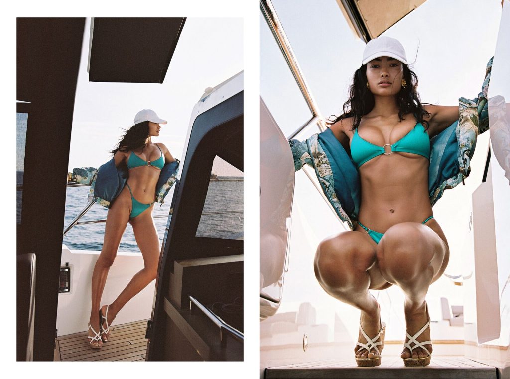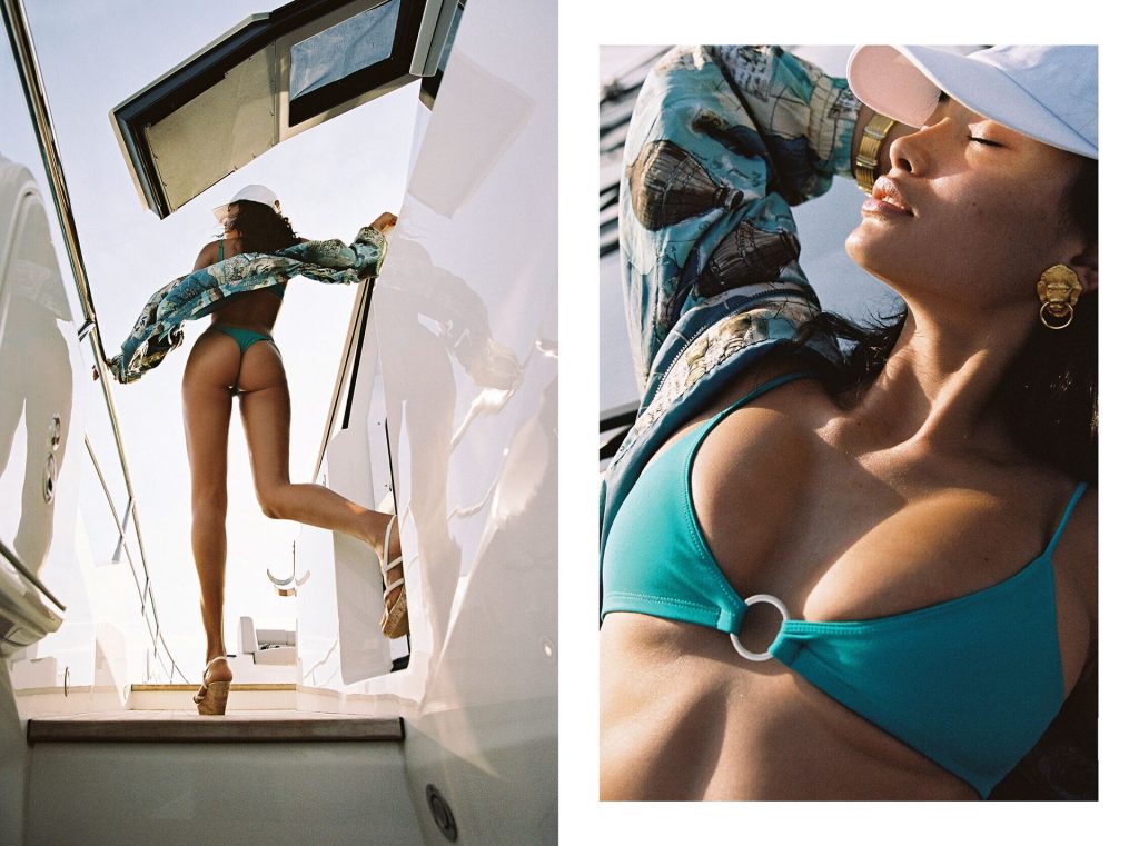 ¡Imágenes emocionantes de los pechos desnudos de Kelly Gayle para una sesión fotográfica promocional de Bamba Swim! Por ejemplo, la joven de 24 años fue fotografiada en la playa, vistiendo una camiseta blanca mojada y transparente y una parte inferior de bikini, mostrando su cameltoe.