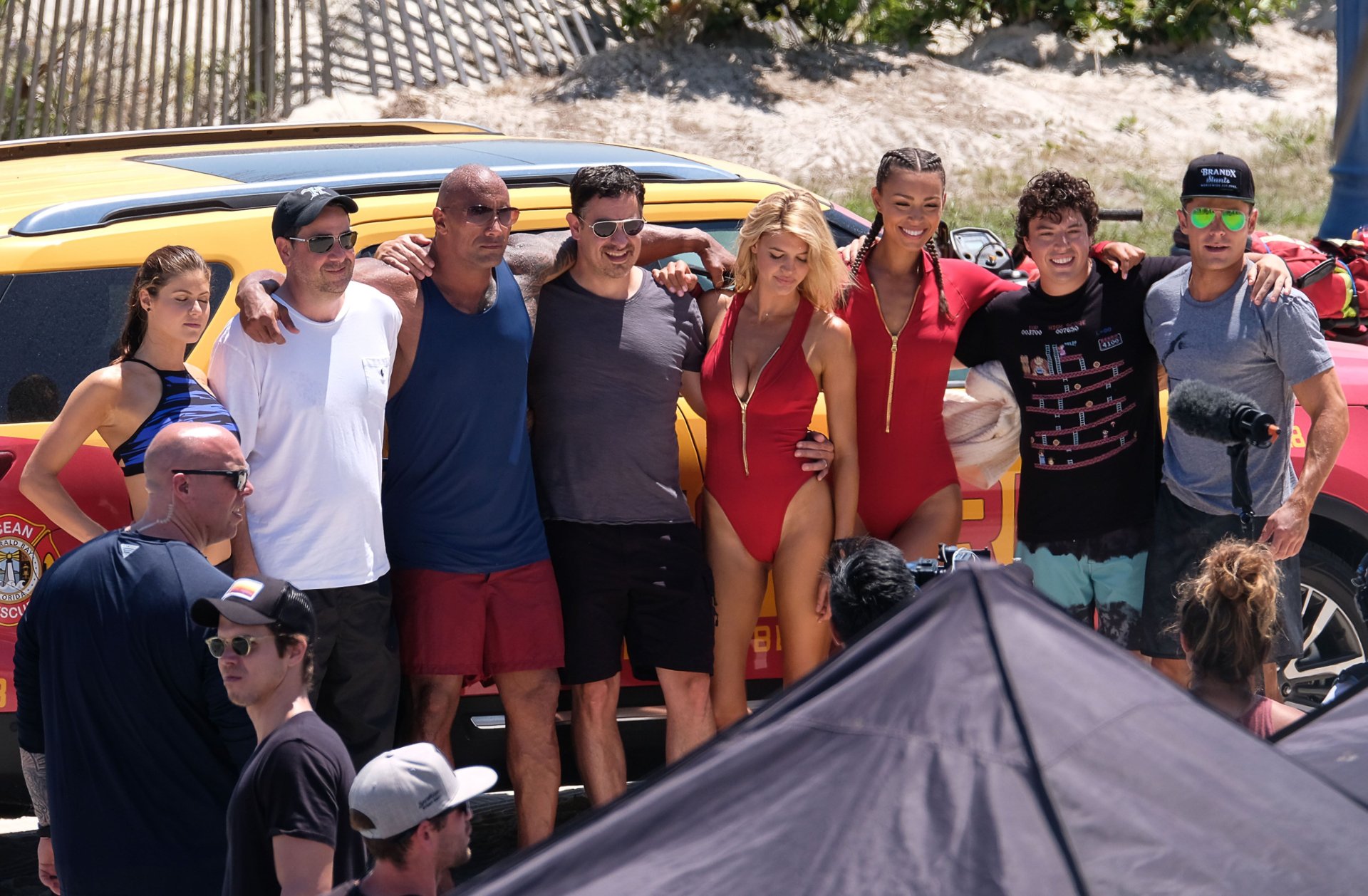 Alexandra Daddario, Ilfenesh Hadera y Kelly Rohrbach en el set de Baywatch en Georgia, 29/04/16. ¡Trío caliente!