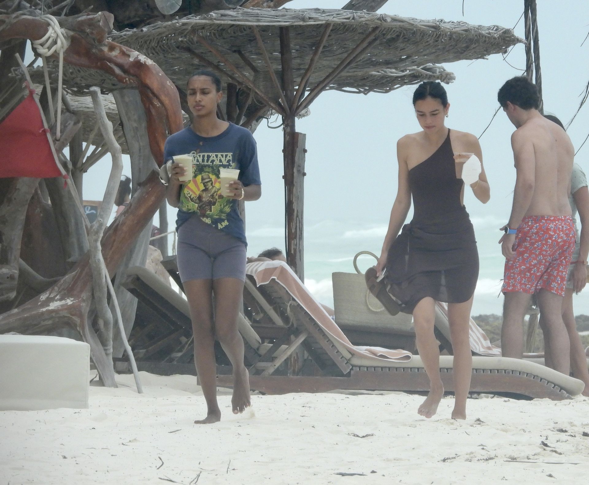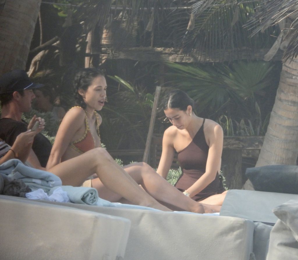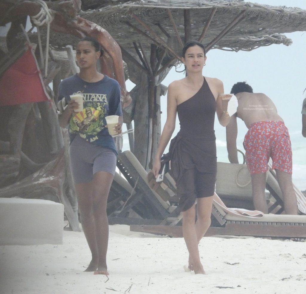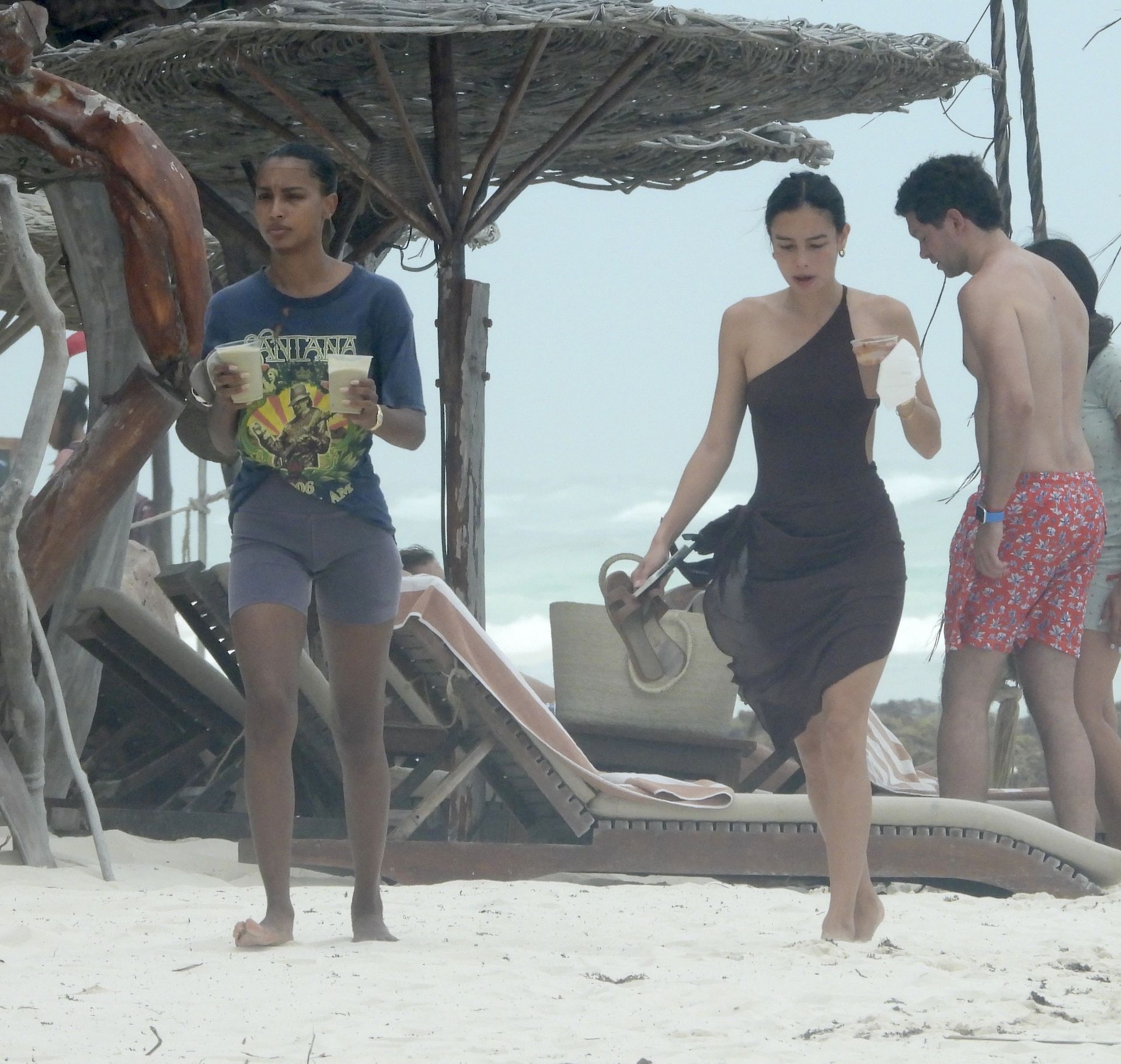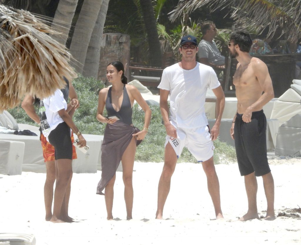 La modelo de Sports Illustrated fue fotografiada relajándose en la playa con su compañera modelo Jasmine Tookes.