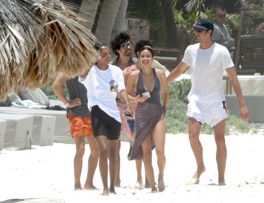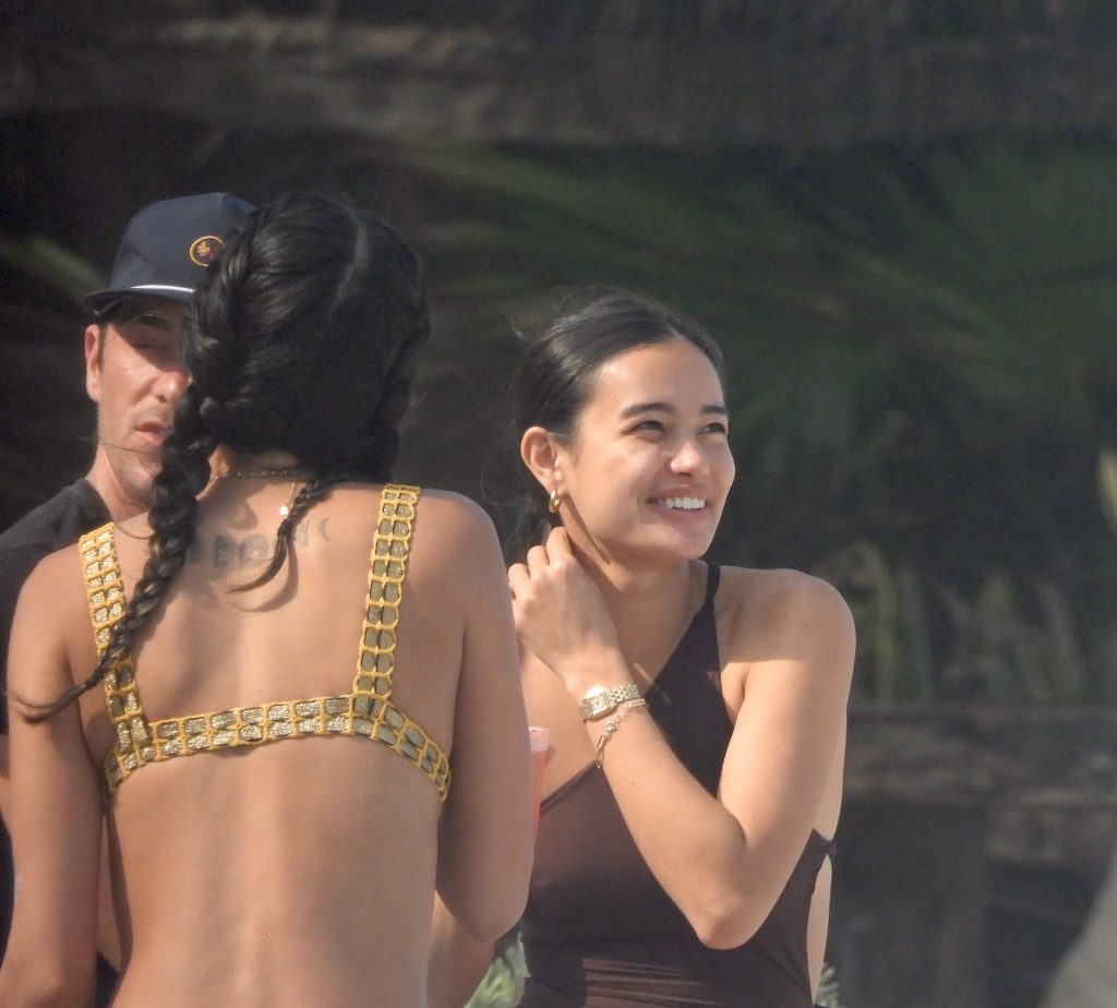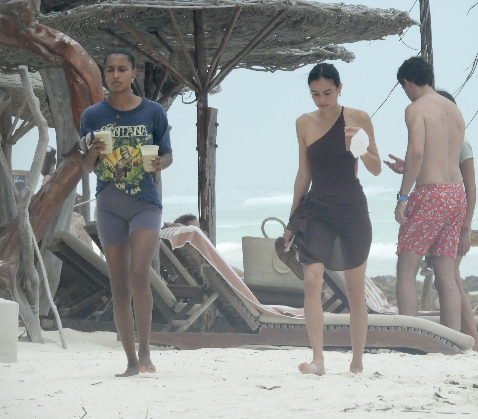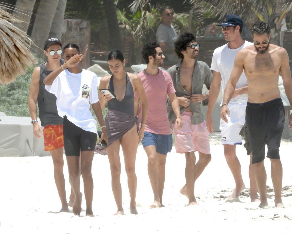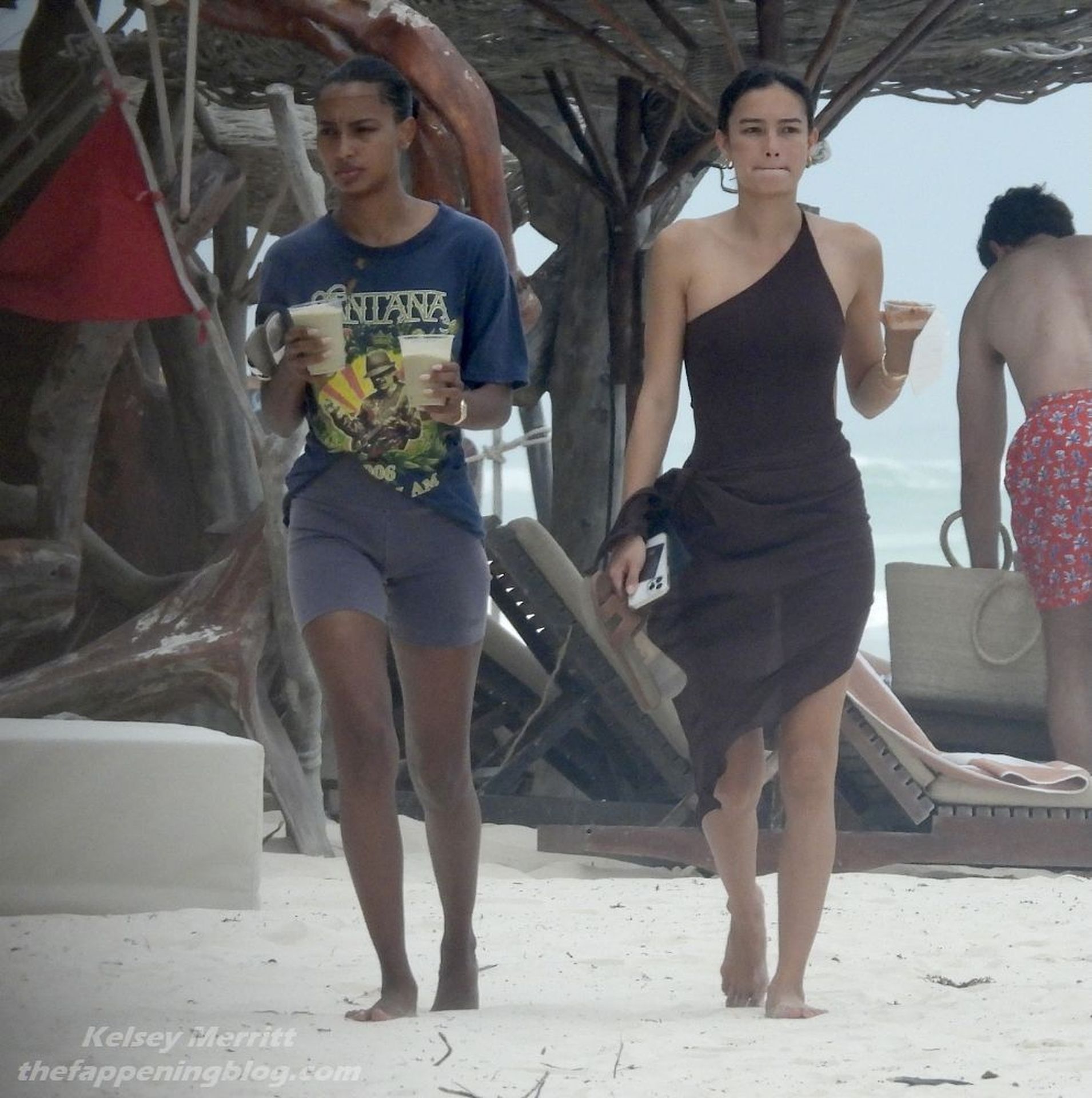 La modelo de Sports Illustrated fue fotografiada relajándose en la playa con su compañera modelo Jasmine Tookes.
