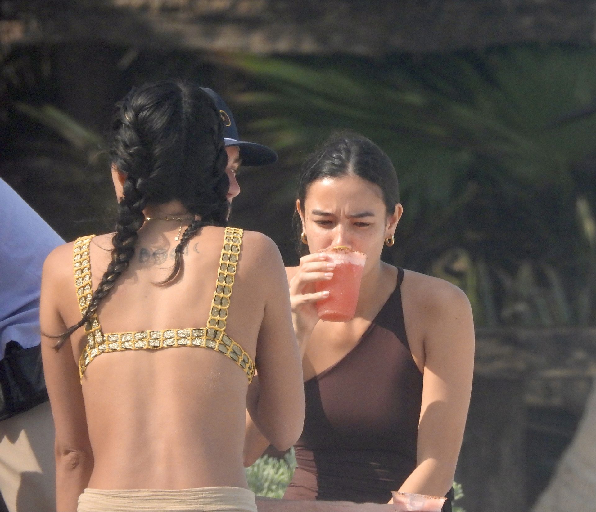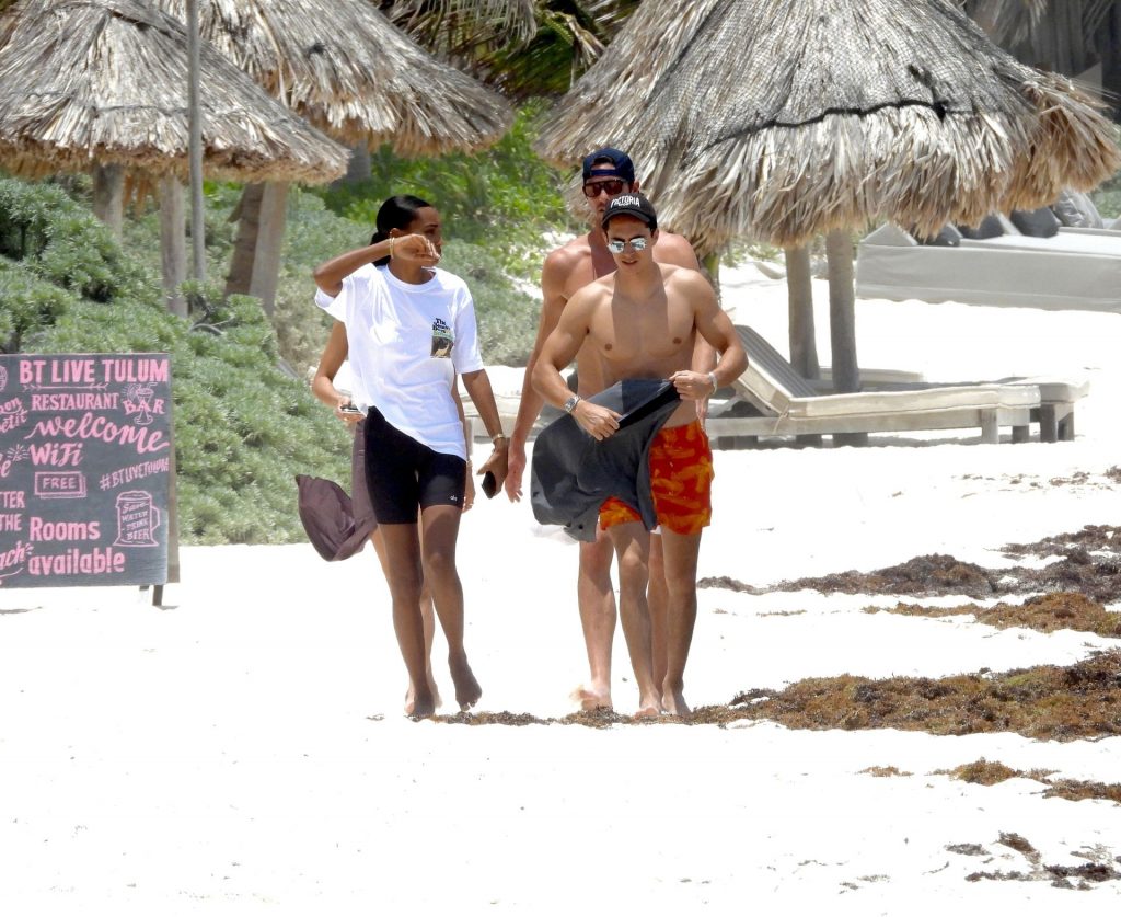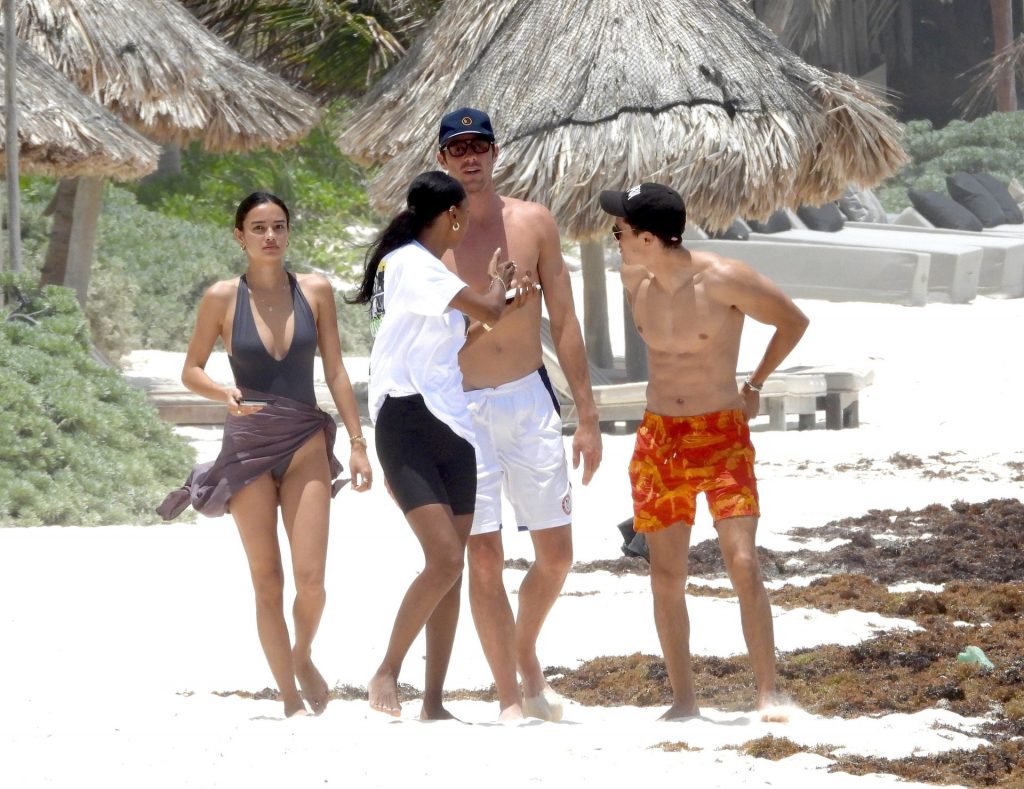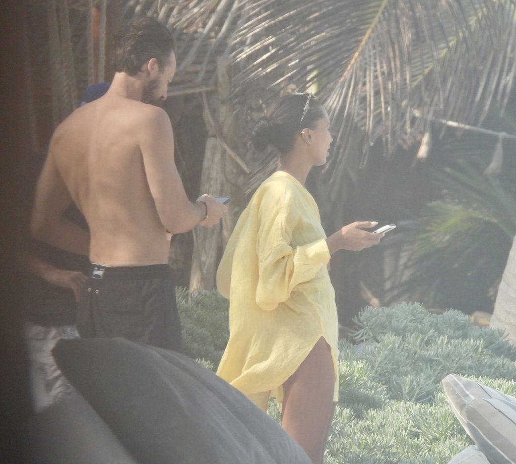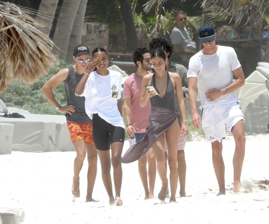 La modelo de Sports Illustrated fue fotografiada relajándose en la playa con su compañera modelo Jasmine Tookes.