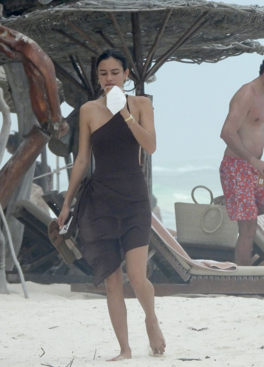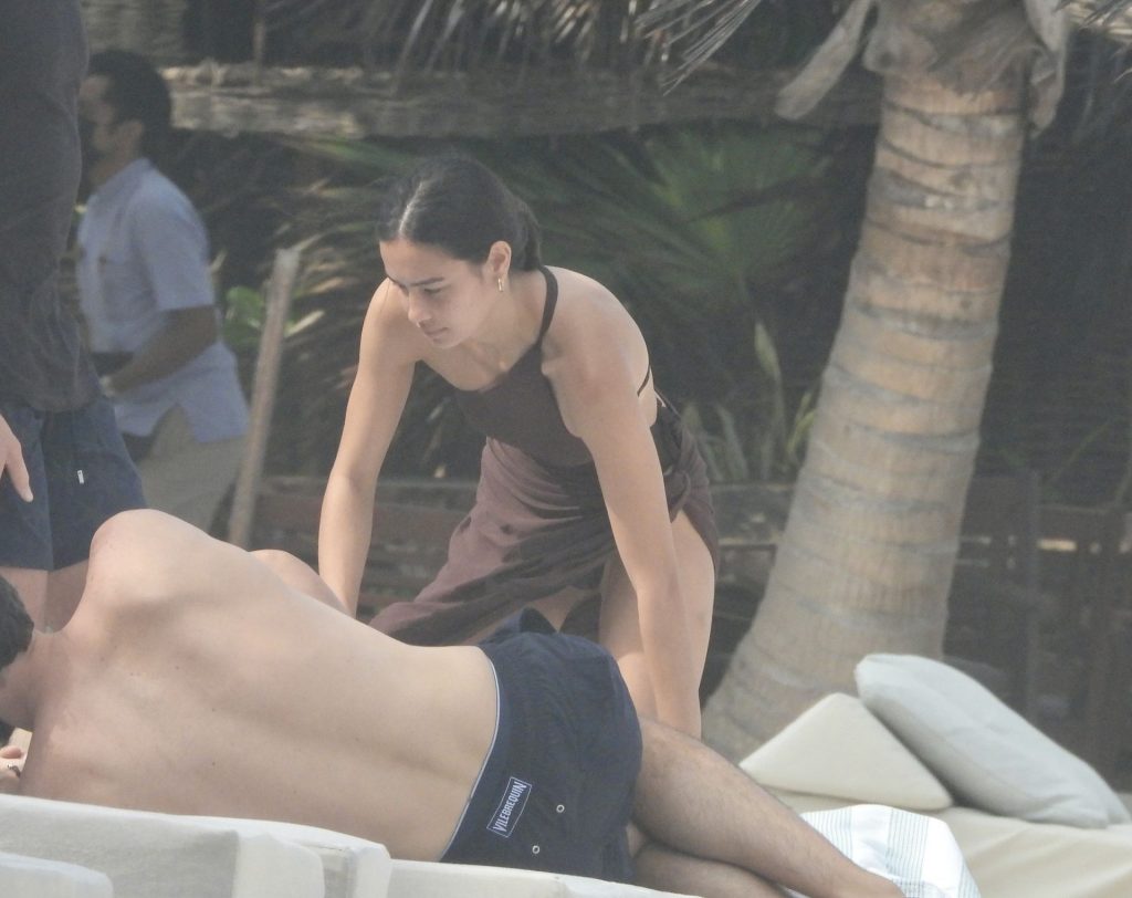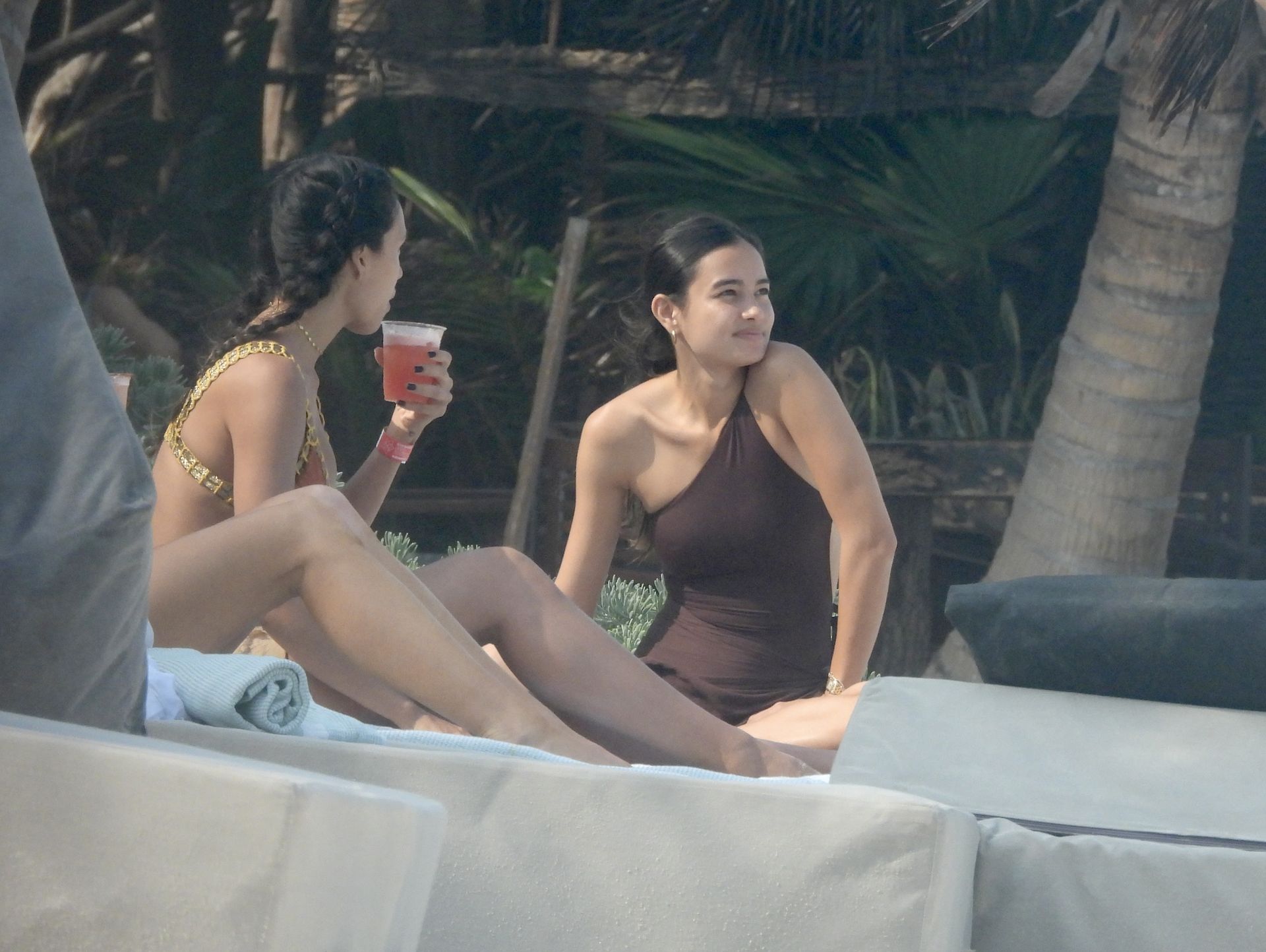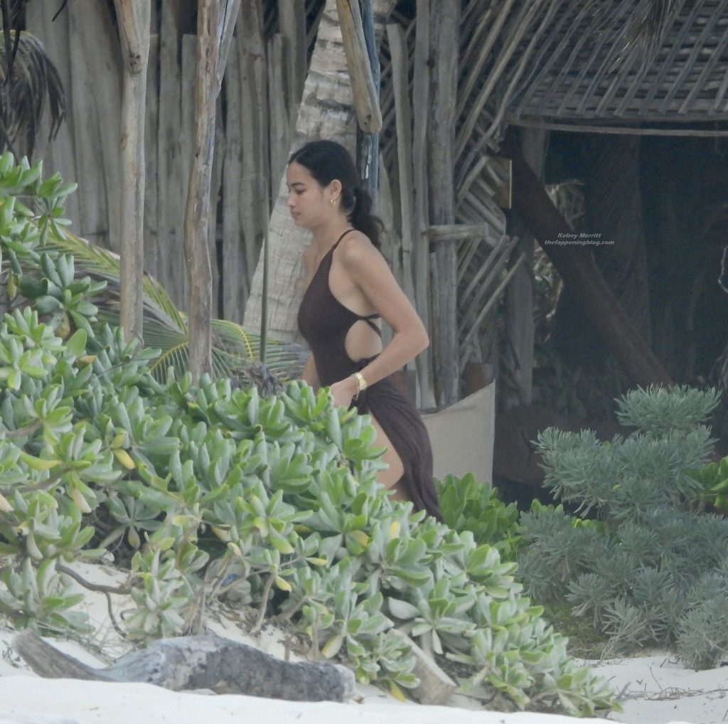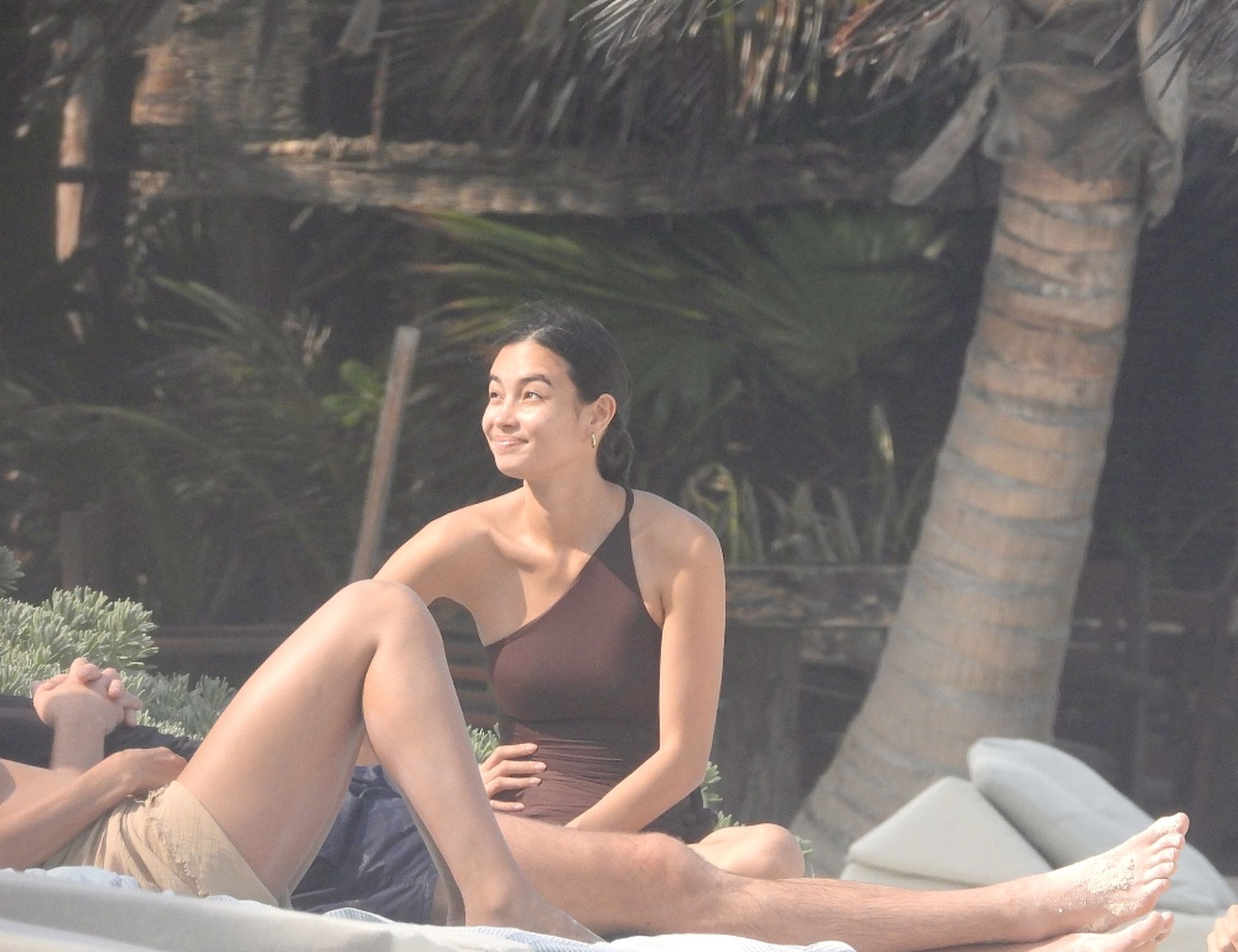 Kelsey Merritt luce impresionante con un traje de baño de una pieza mientras se relaja en Tulum, México, 05/05/2021.