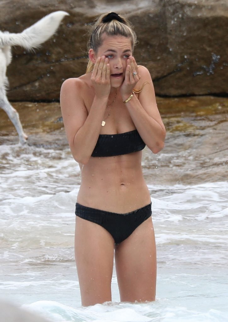 Leonardo De Caprio’s ex novia modelo Kendal Lee Schuler muestra su increíble cuerpo después de haber dado a luz recientemente, con su esposo y amigos en Bondi Beach en Sídney, 28/10/2017.