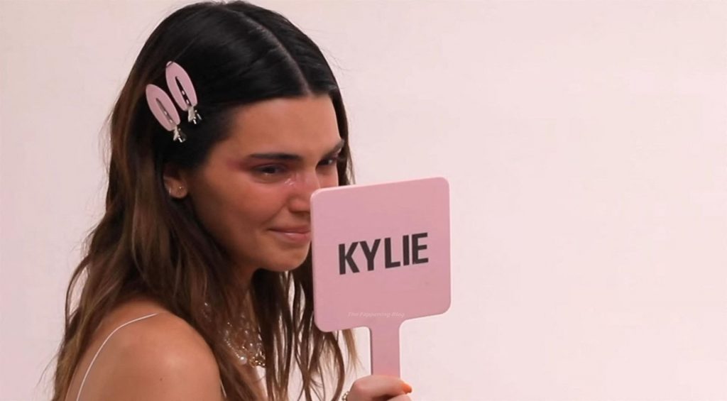 Mientras Kendall trabaja en su ojo ahumado púrpura y Kylie difumina con un tono amarillo, las lágrimas felices comienzan a rodar nuevamente ya que claramente las hermanas no están en su mejor momento en el departamento de maquillaje. Avanzando con unos cuantos tragos más, Kendall y Kylie han consumido un total de 8 shots cada una. Kylie le dice a su hermana mayor: “Termina mi brillo, haz lo que quieras.” Lo que Kendall quiere es sombra azul en los labios de Kylie. “Me encanta que uses sombra azul para mis labios. Súper creativo,” bromea ella. Pero Kendall no quería que la ‘creatividad’ fuera recíproca.