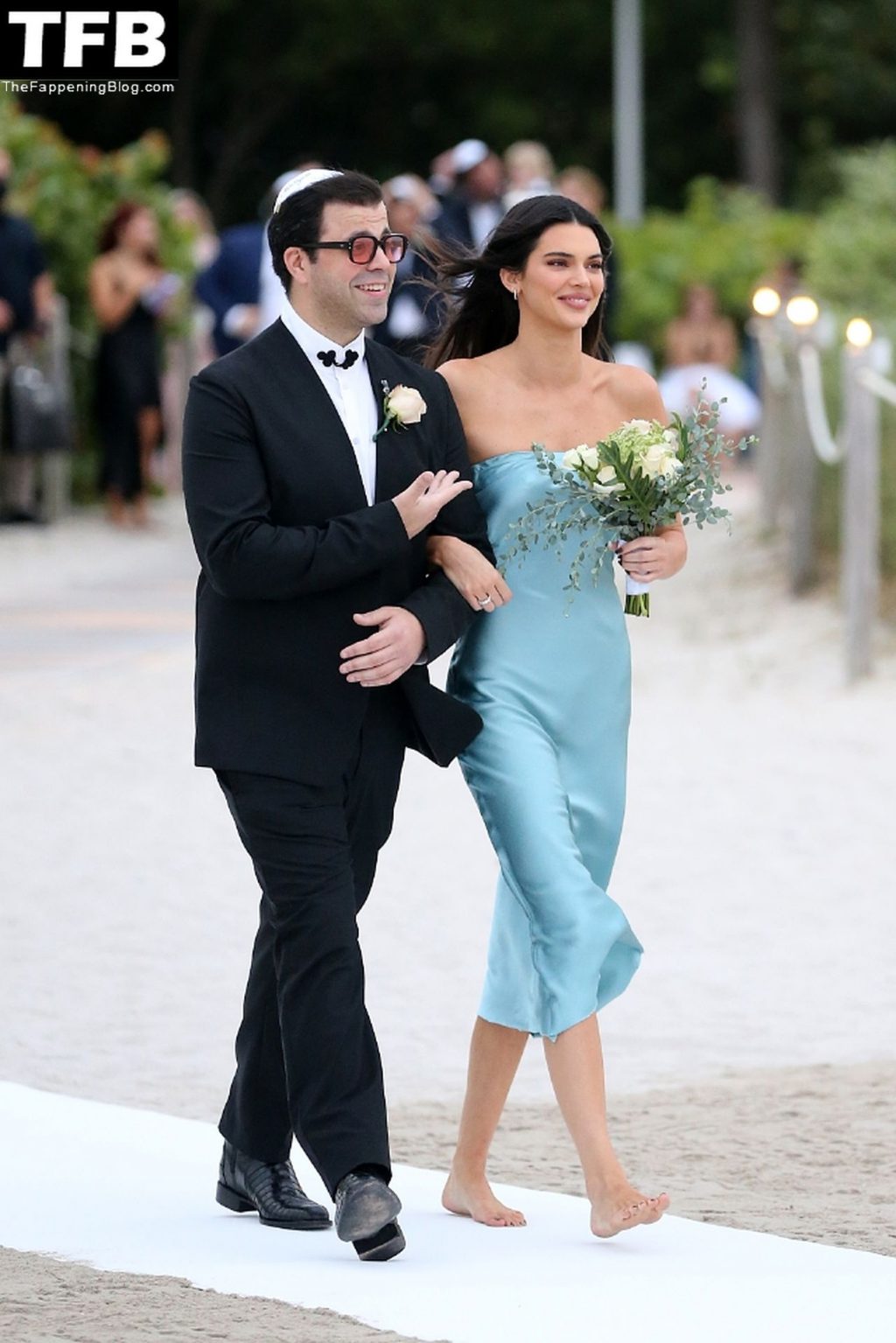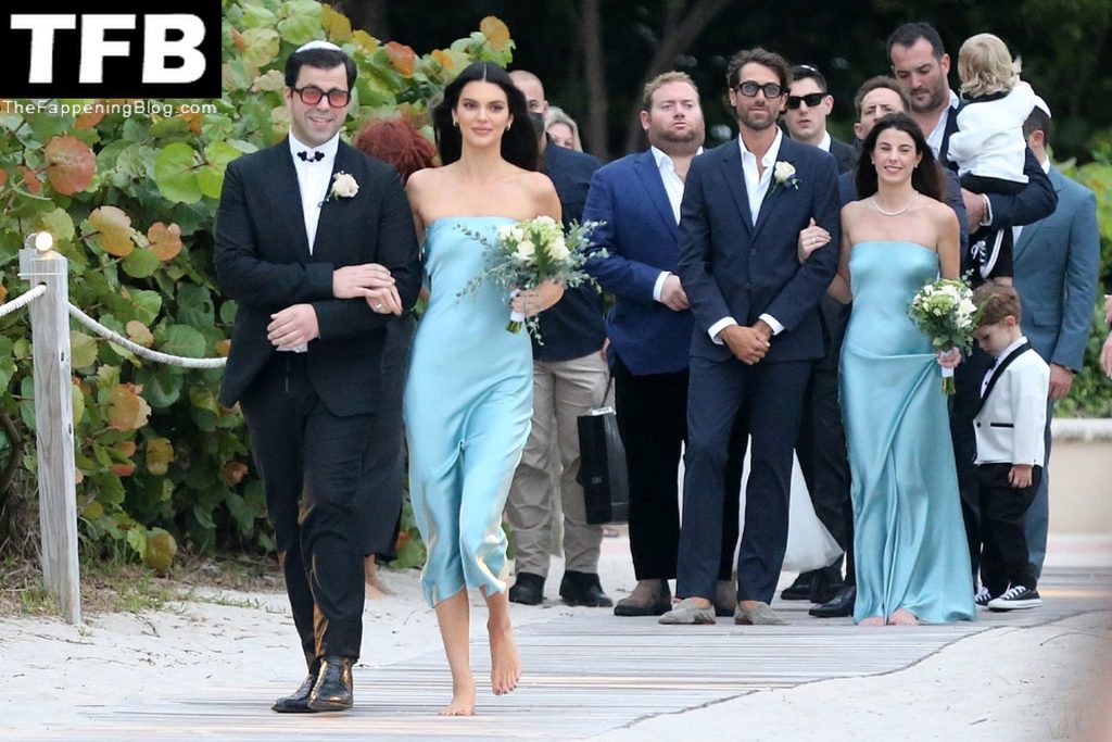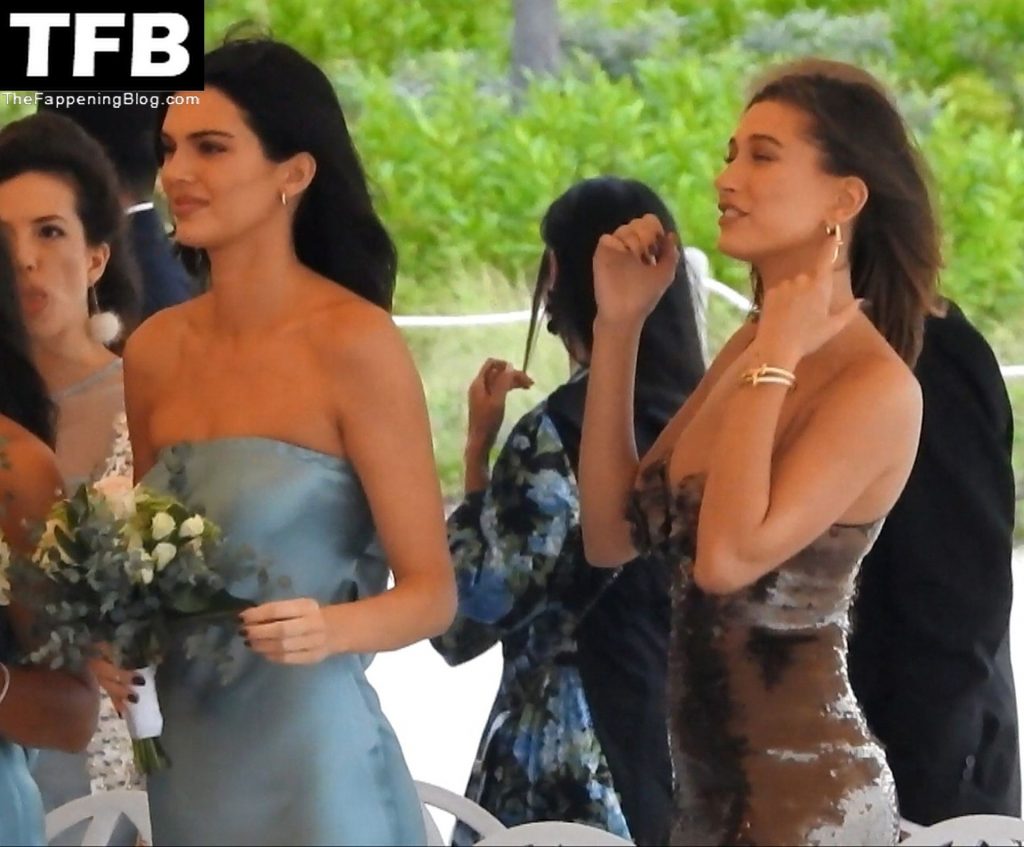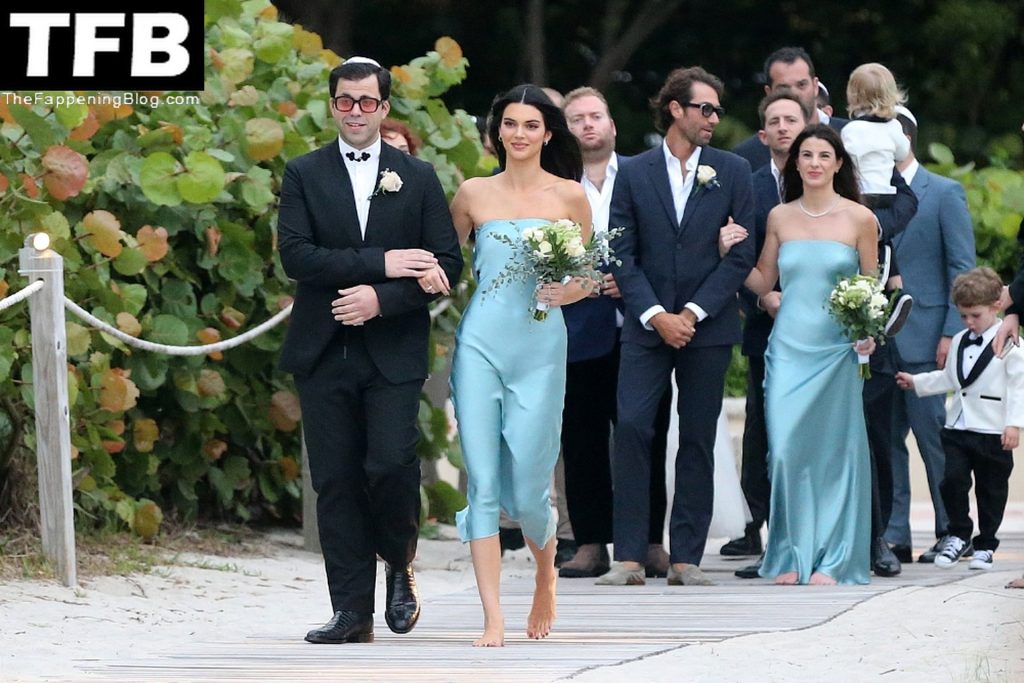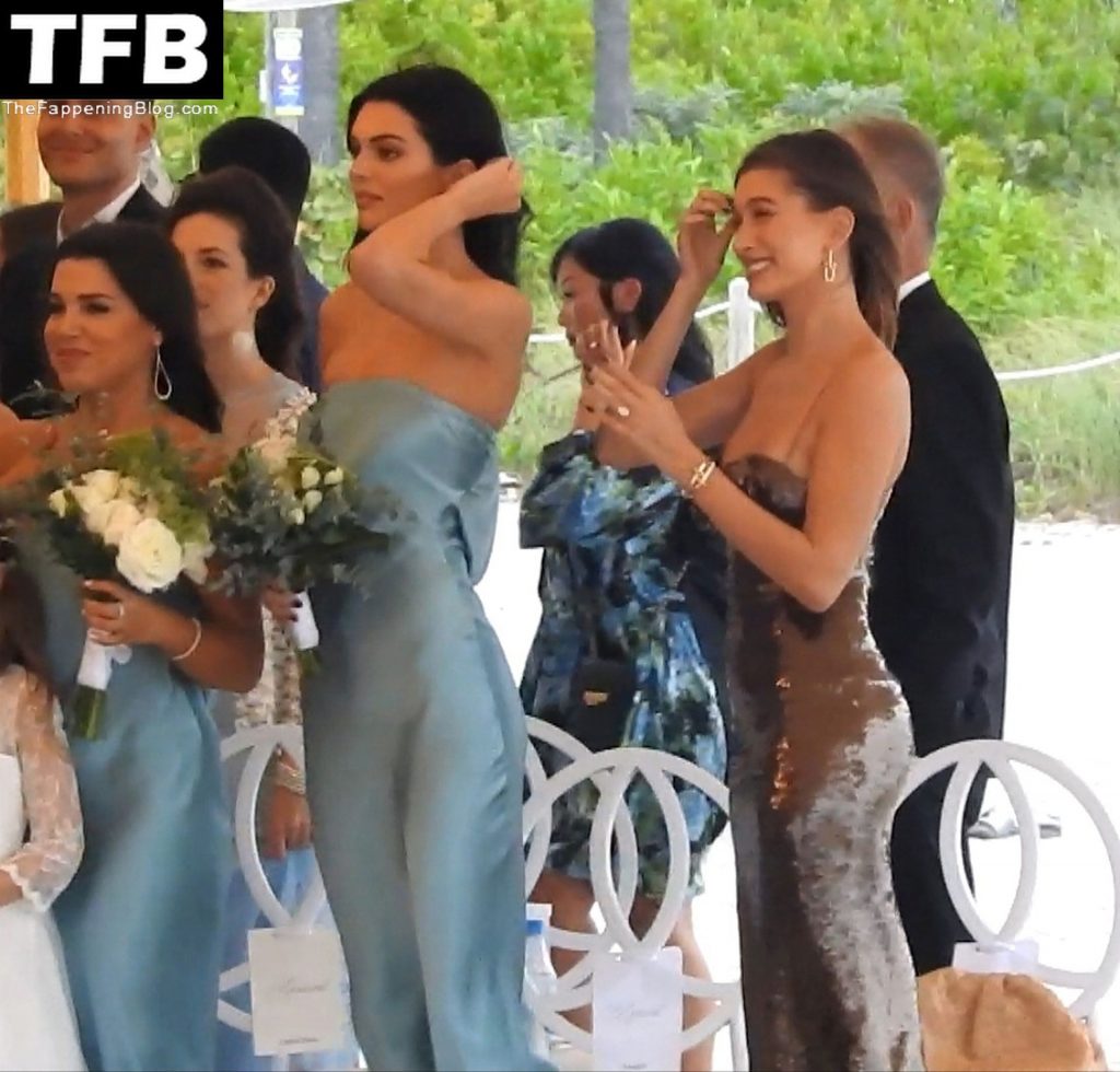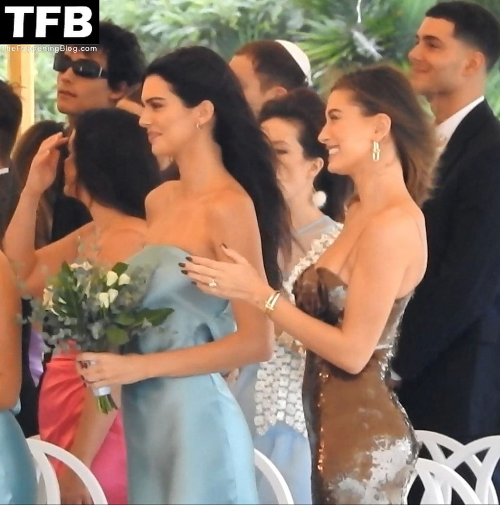 Las modelos Kendall Jenner y Bella Hadid lucen radiantes como damas de honor descalzas en una boda en la playa en Miami mientras Hailey Bieber asiste al evento sin acompañante.
