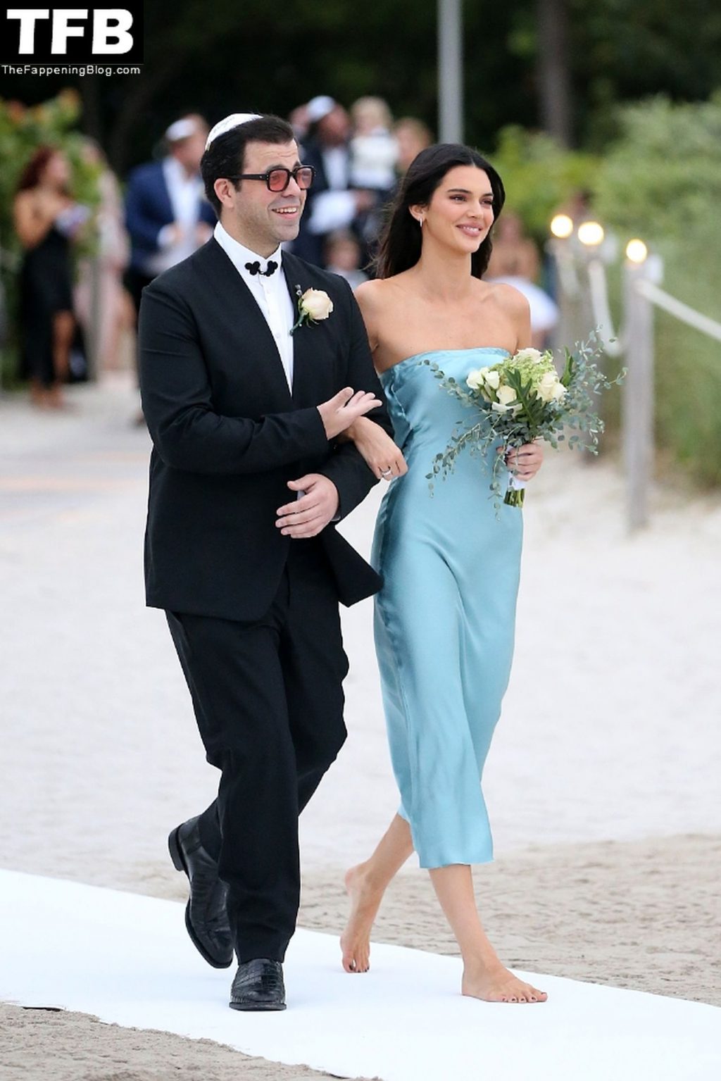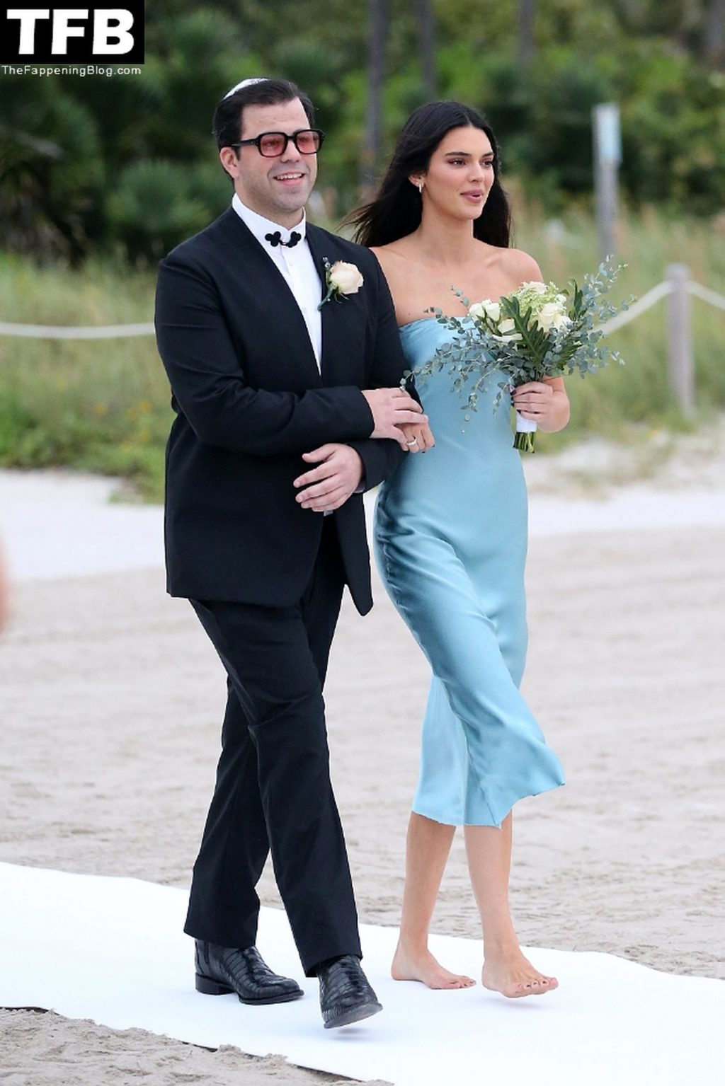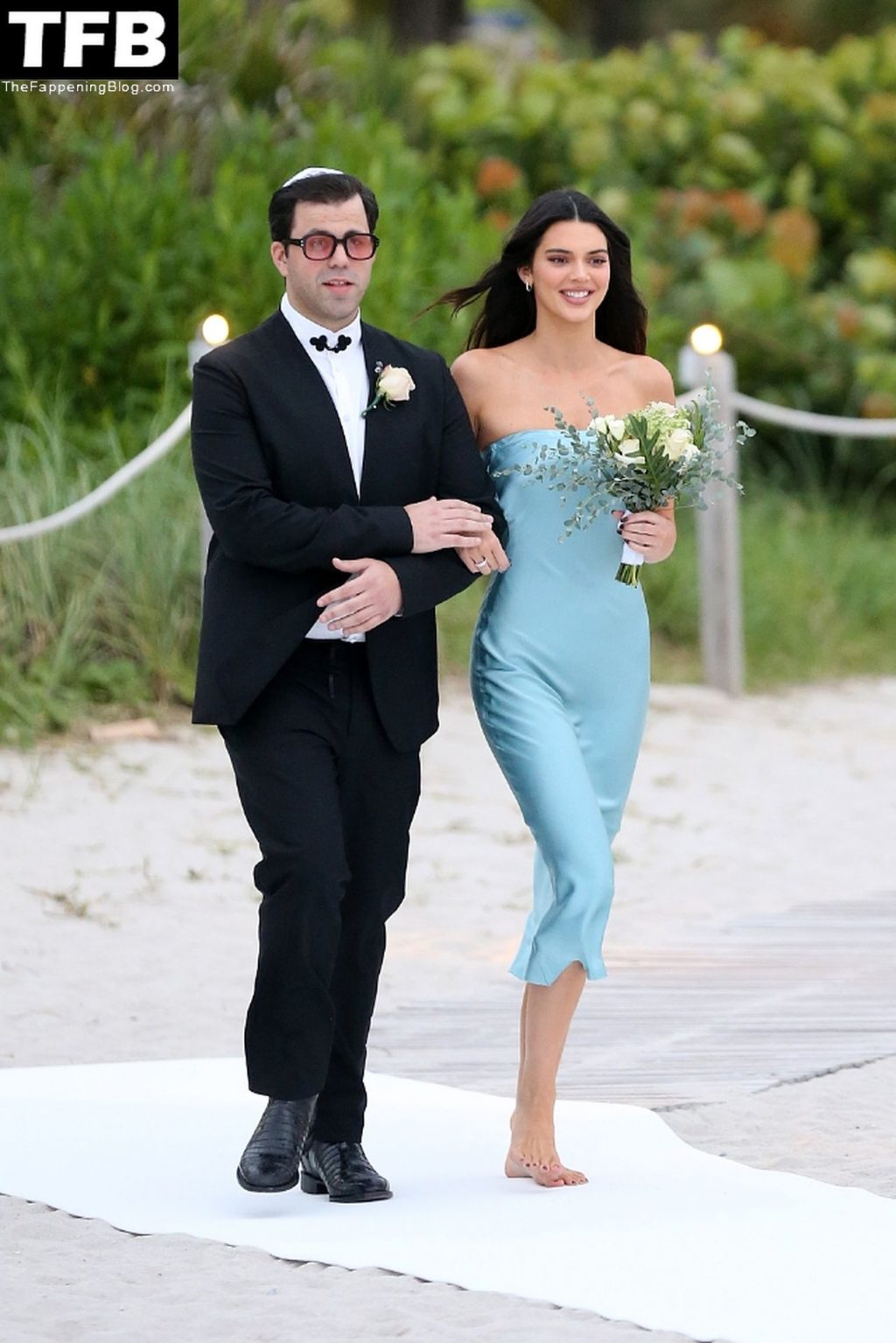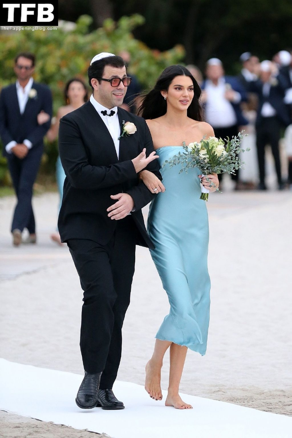 Las modelos Kendall Jenner y Bella Hadid lucen radiantes como damas de honor descalzas en una boda en la playa en Miami mientras Hailey Bieber asiste al evento sin acompañante.