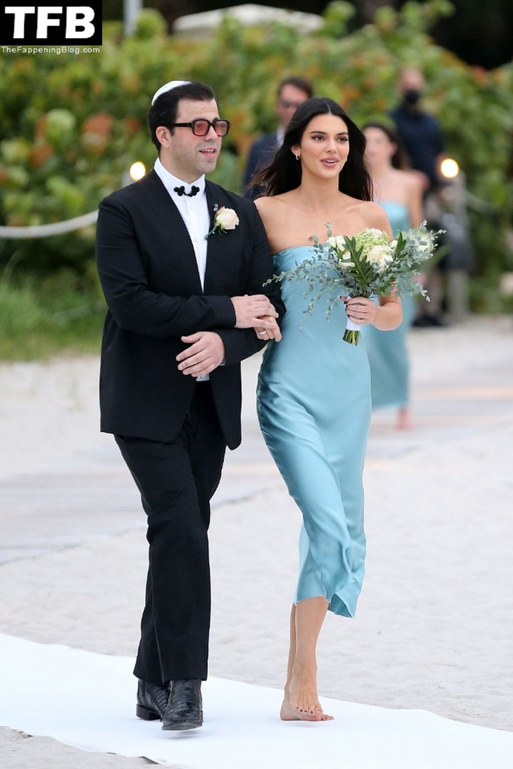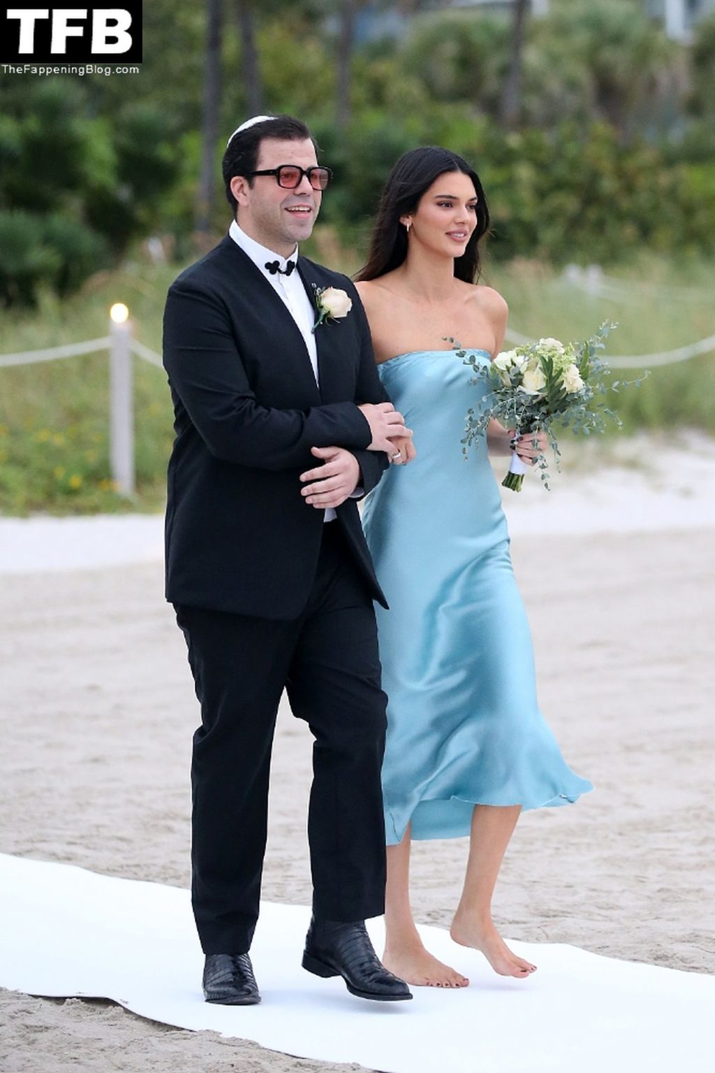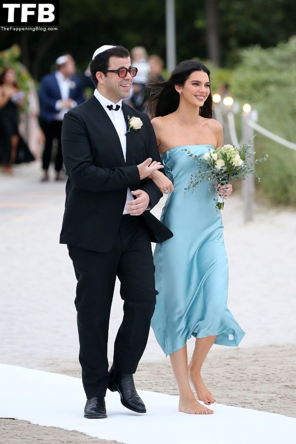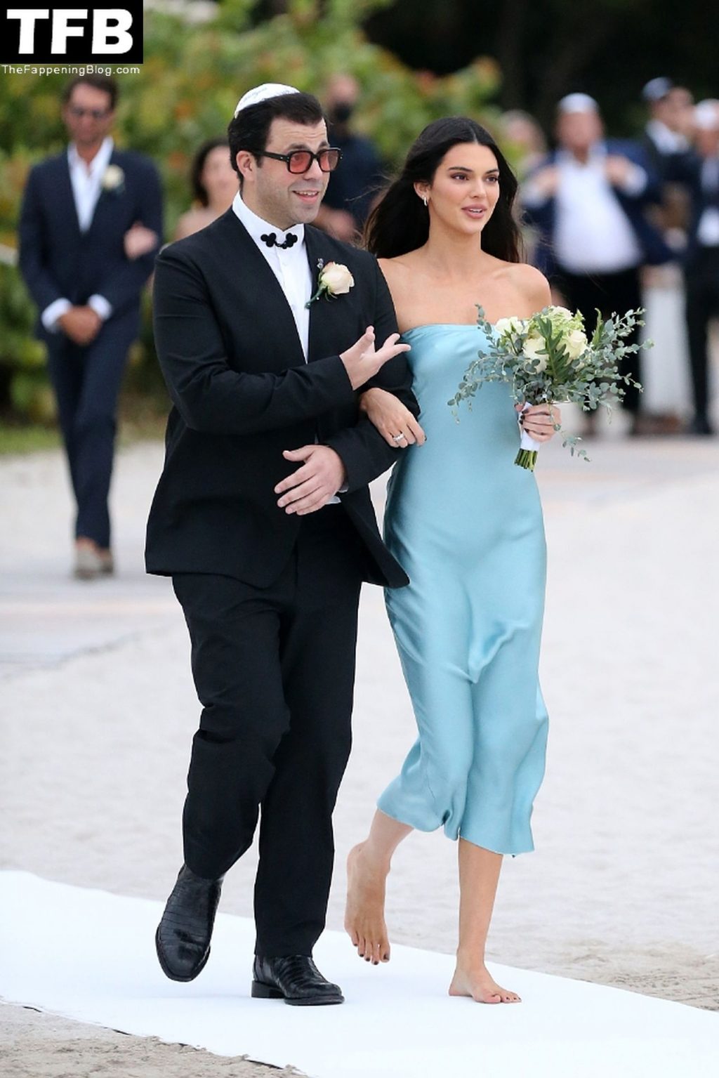 Las modelos Kendall Jenner y Bella Hadid lucen radiantes como damas de honor descalzas en una boda en la playa en Miami mientras Hailey Bieber asiste al evento sin acompañante.