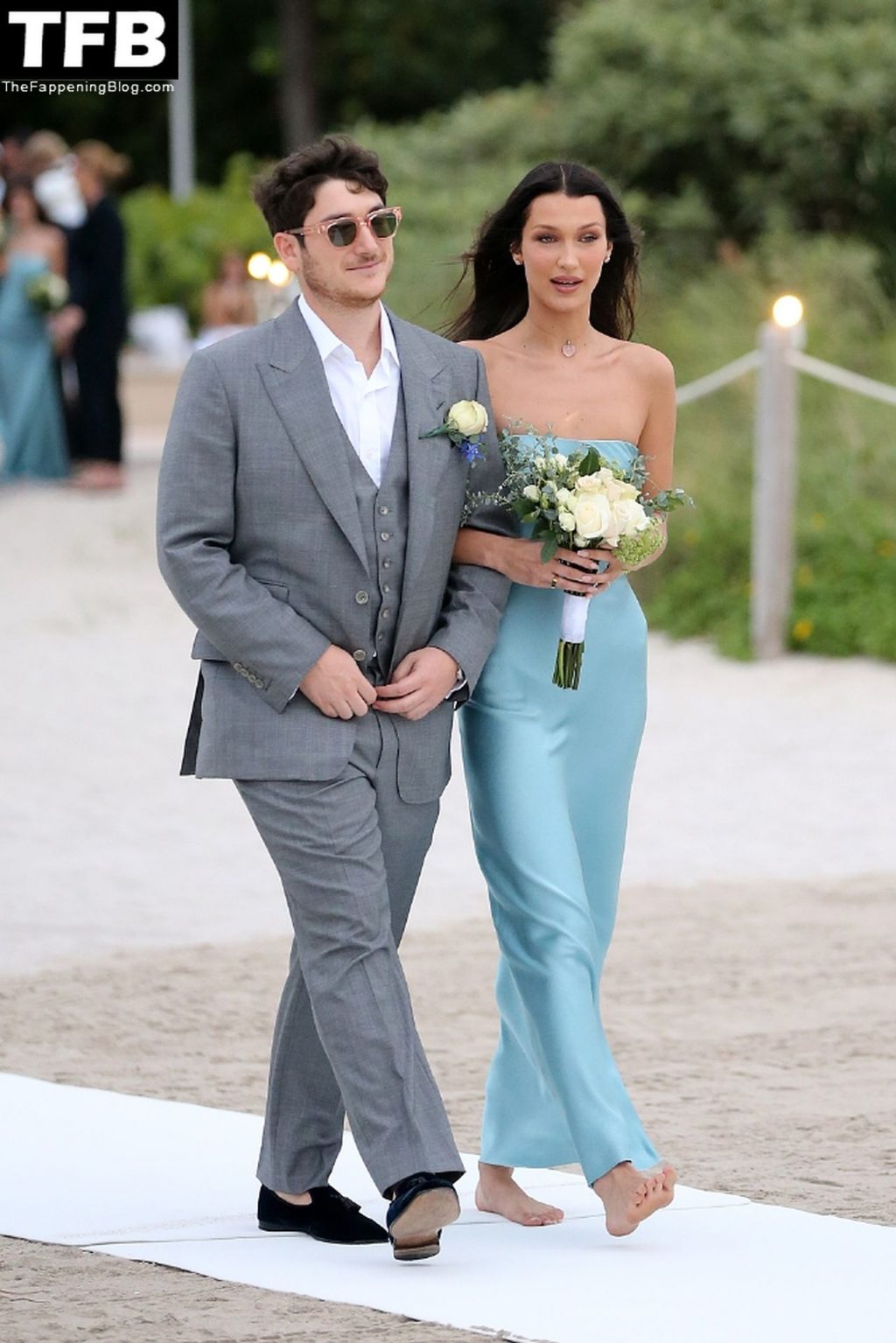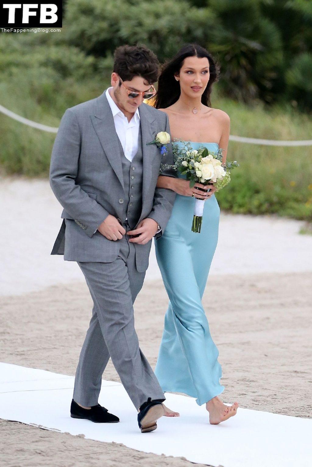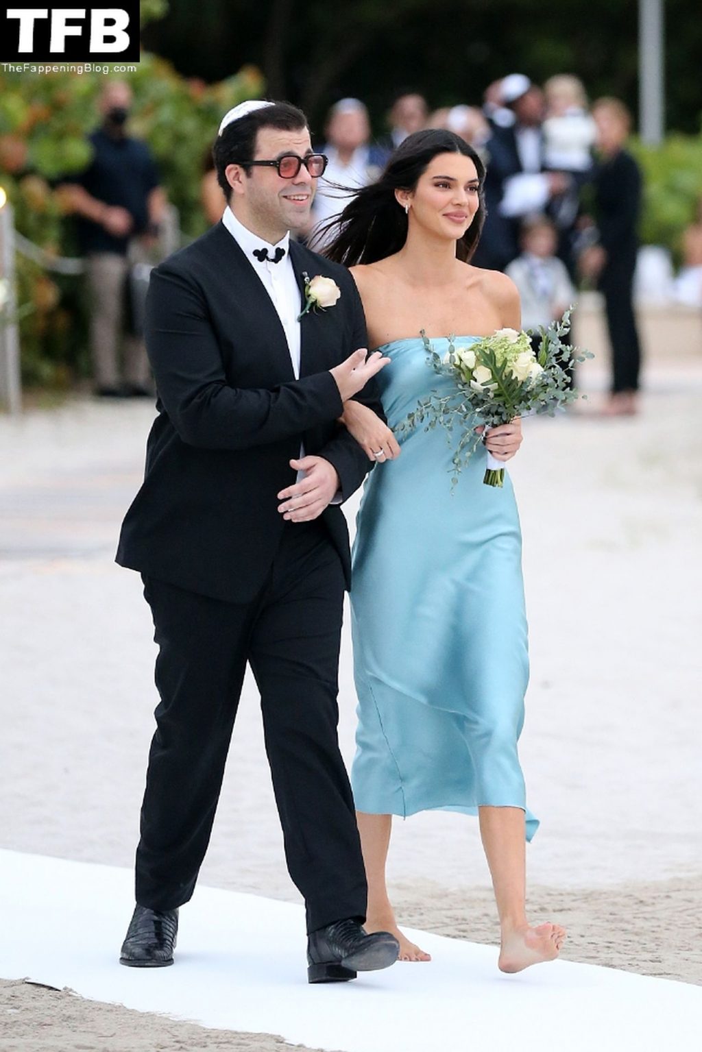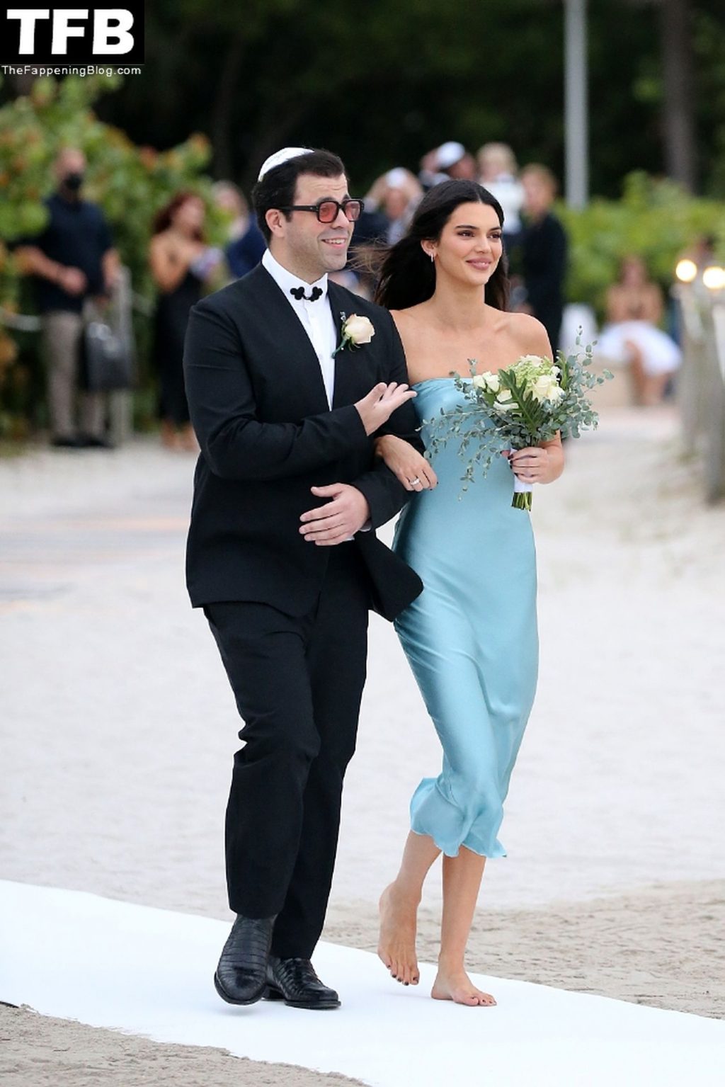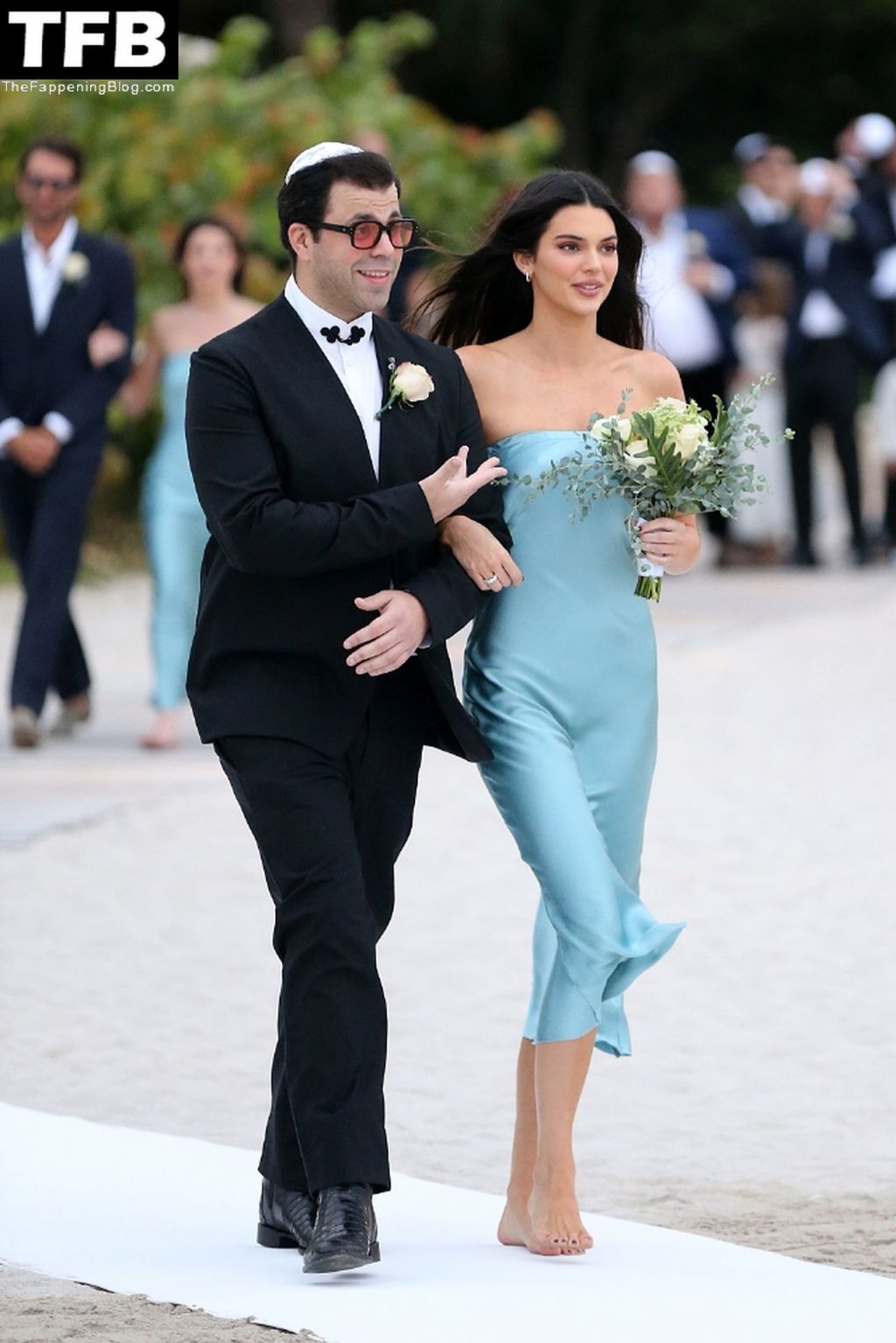 Las modelos Kendall Jenner y Bella Hadid lucen radiantes como damas de honor descalzas en una boda en la playa en Miami mientras Hailey Bieber asiste al evento sin acompañante.
