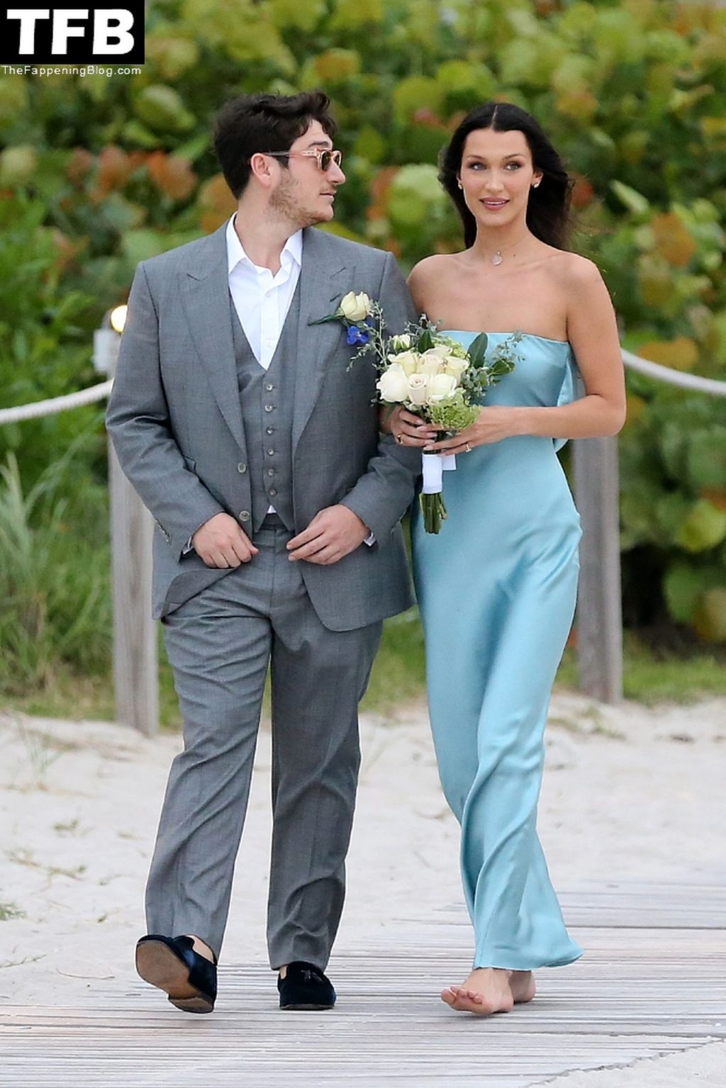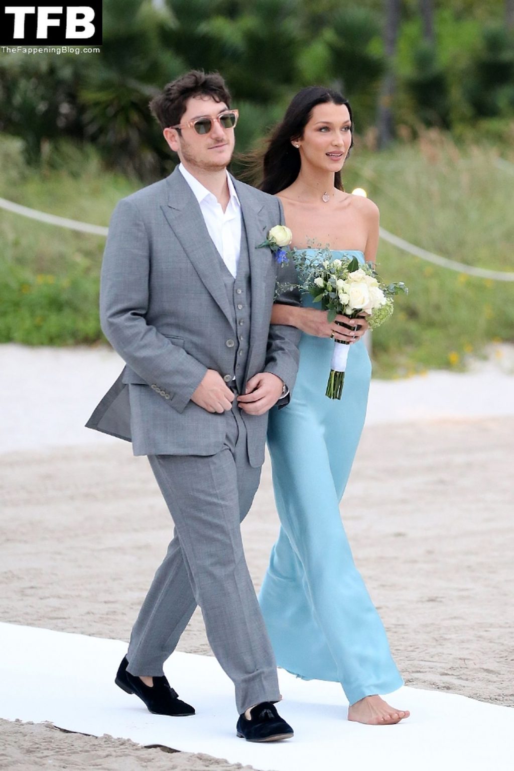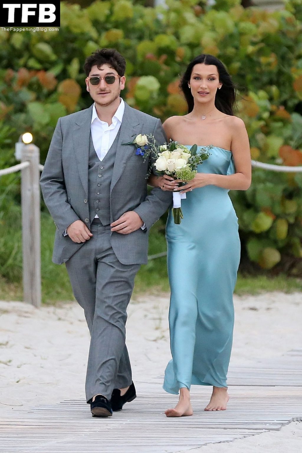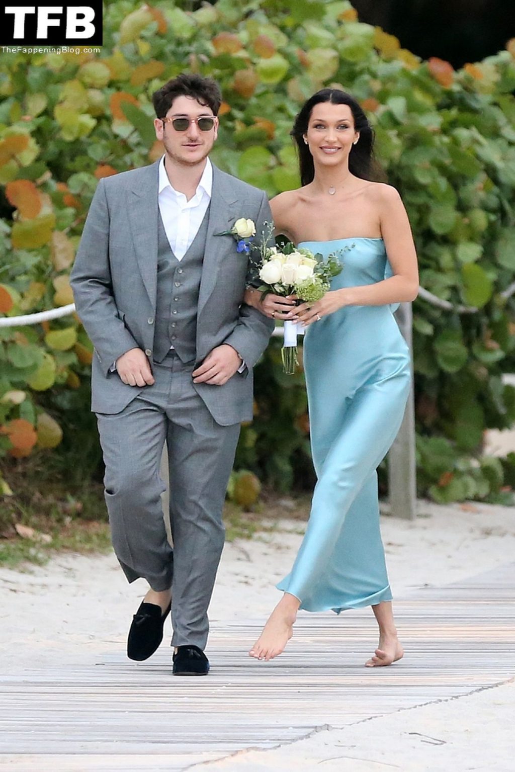 Las modelos Kendall Jenner y Bella Hadid lucen radiantes como damas de honor descalzas en una boda en la playa en Miami mientras Hailey Bieber asiste al evento sin acompañante.