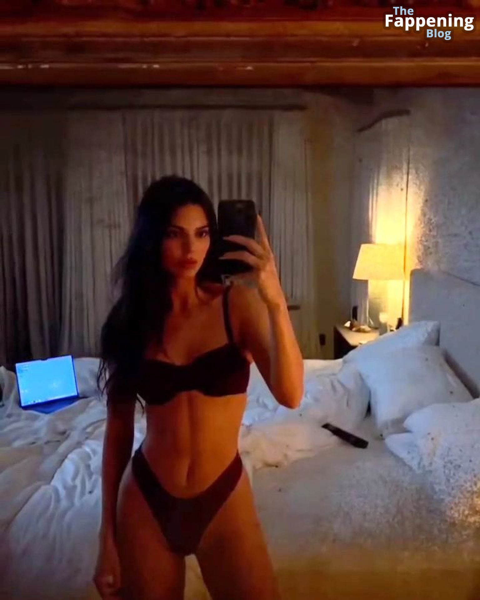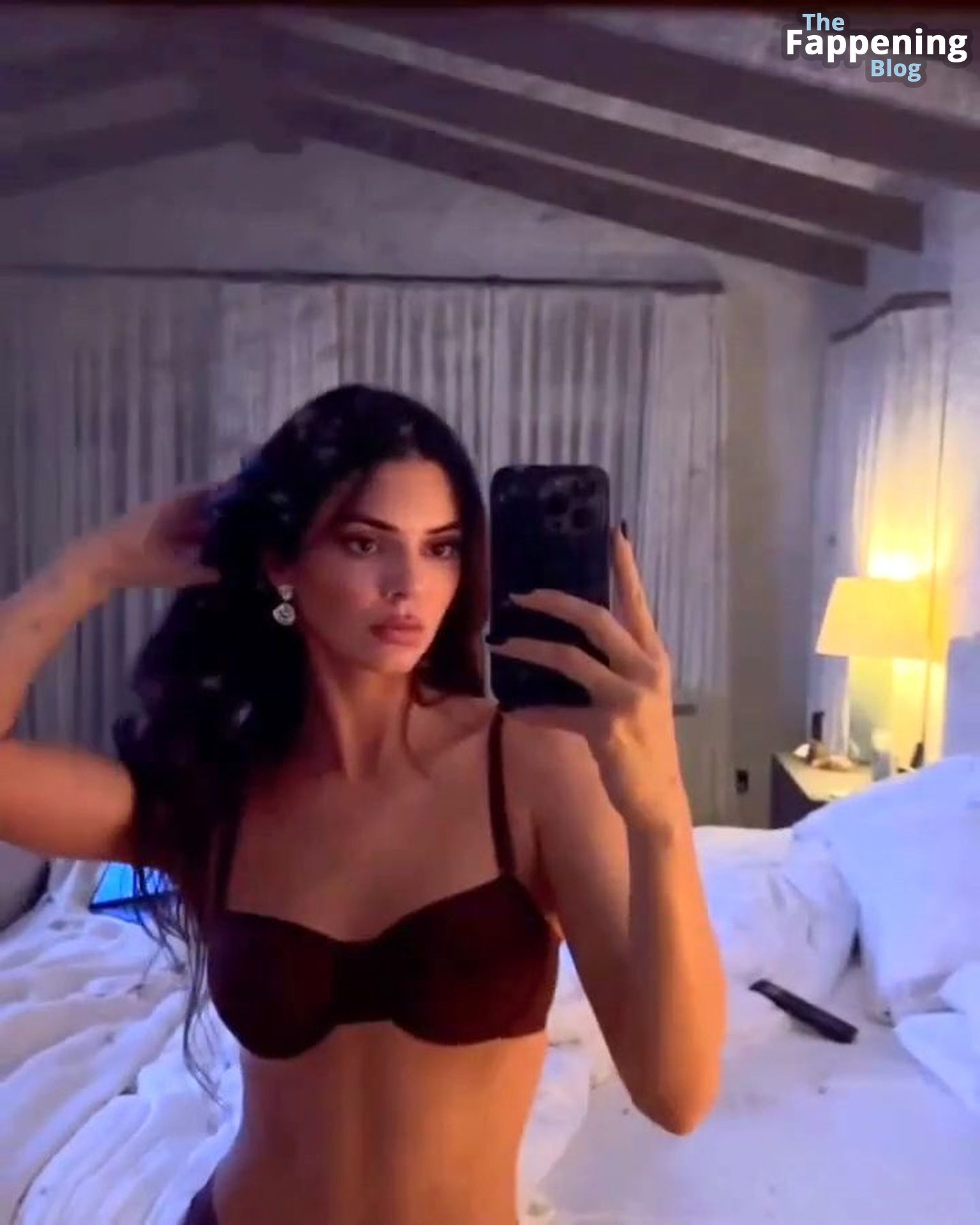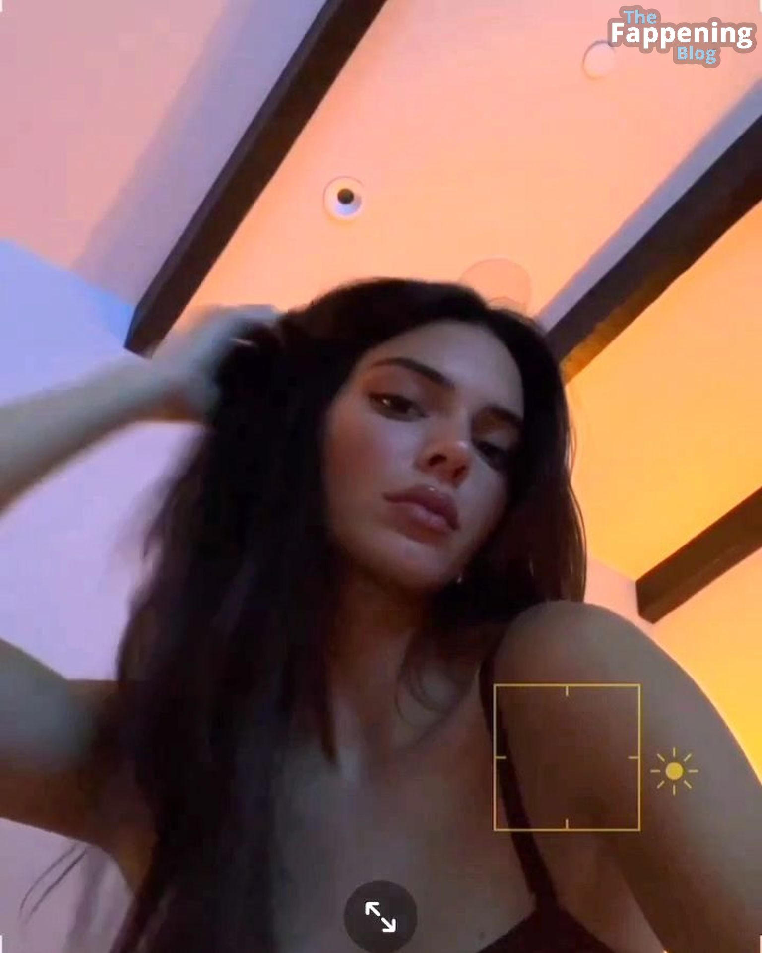 Kendall Jenner muestra sus tetas filmando un sexy video selfie en su dormitorio.