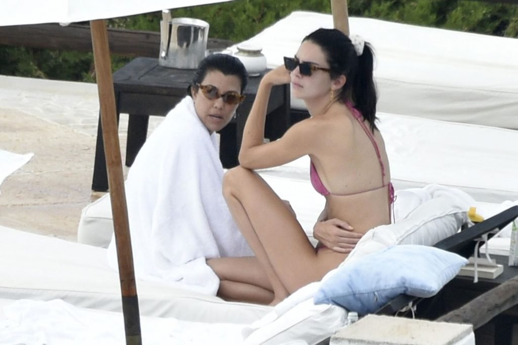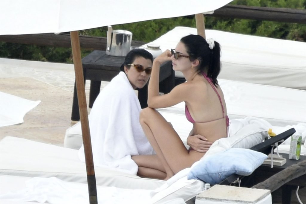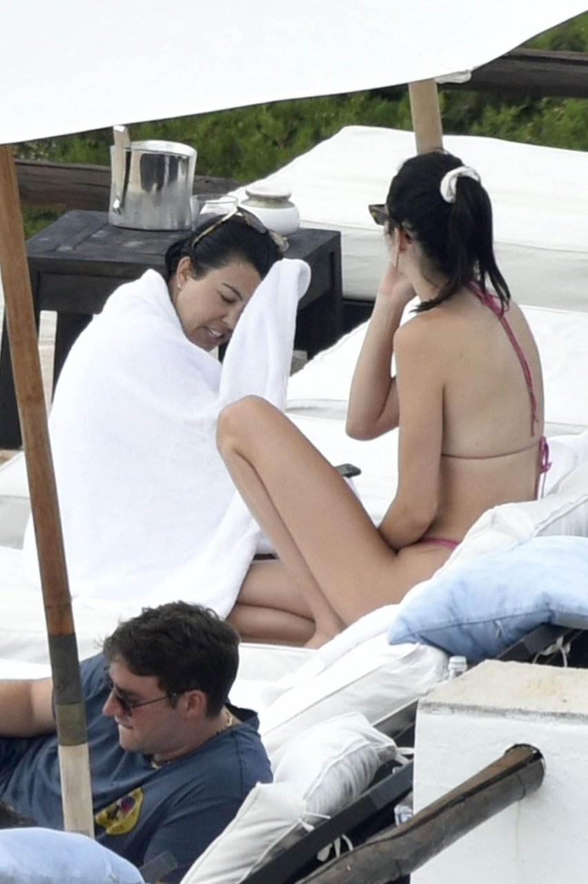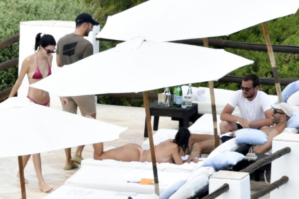 Kendall Jenner disfruta de sus vacaciones mientras muestra su cuerpo delgado junto a la piscina con Kourtney Kardashian y amigos en Costa Smeralda, Cerdeña, 27/07/2019. Se puede ver a Kendall leyendo un libro mientras toma el sol.