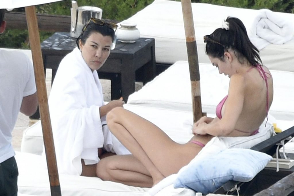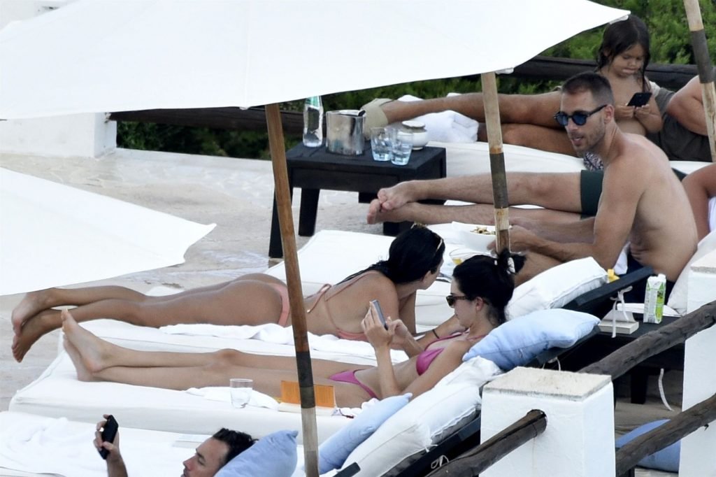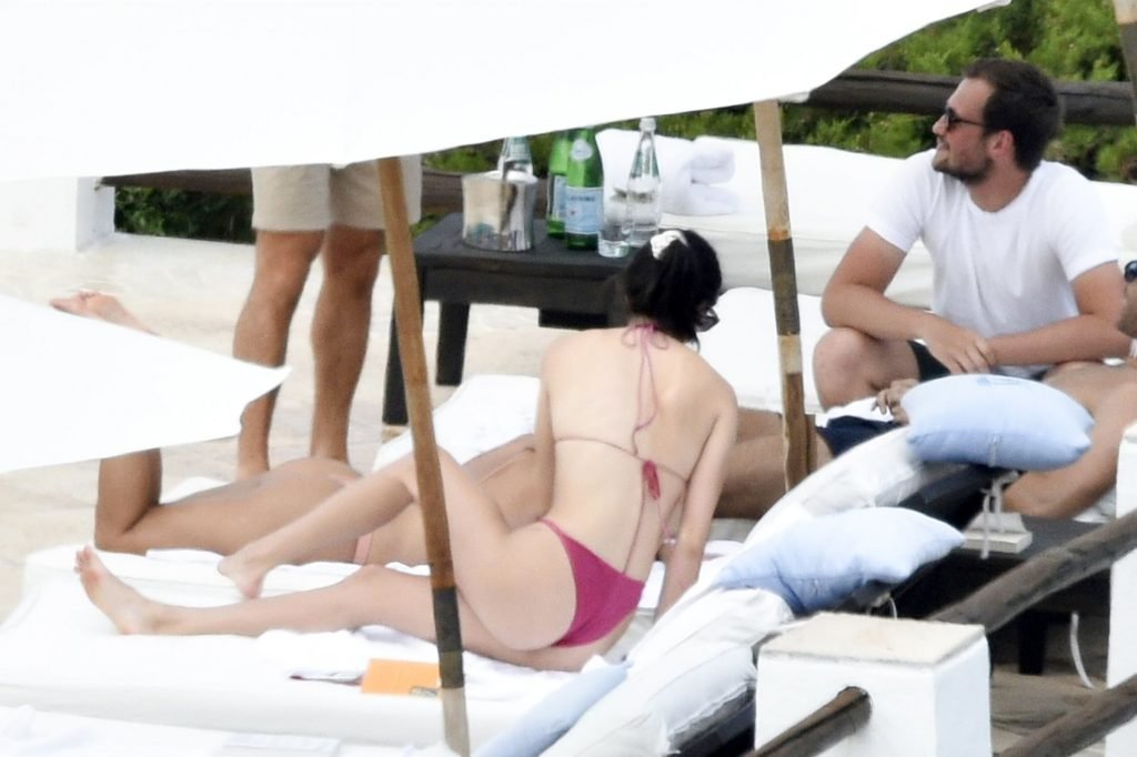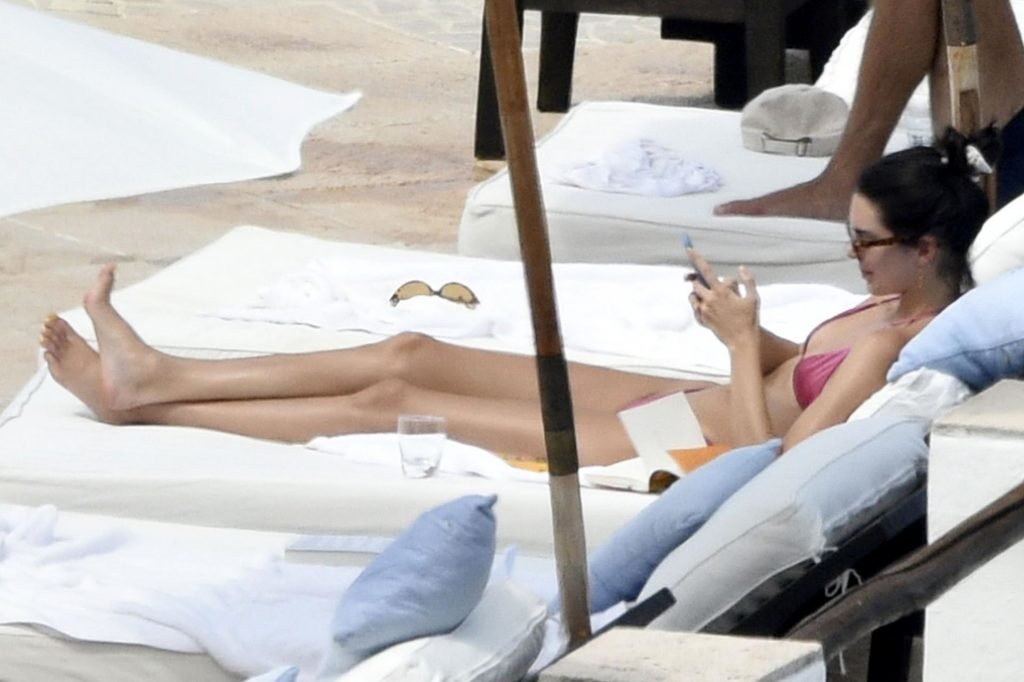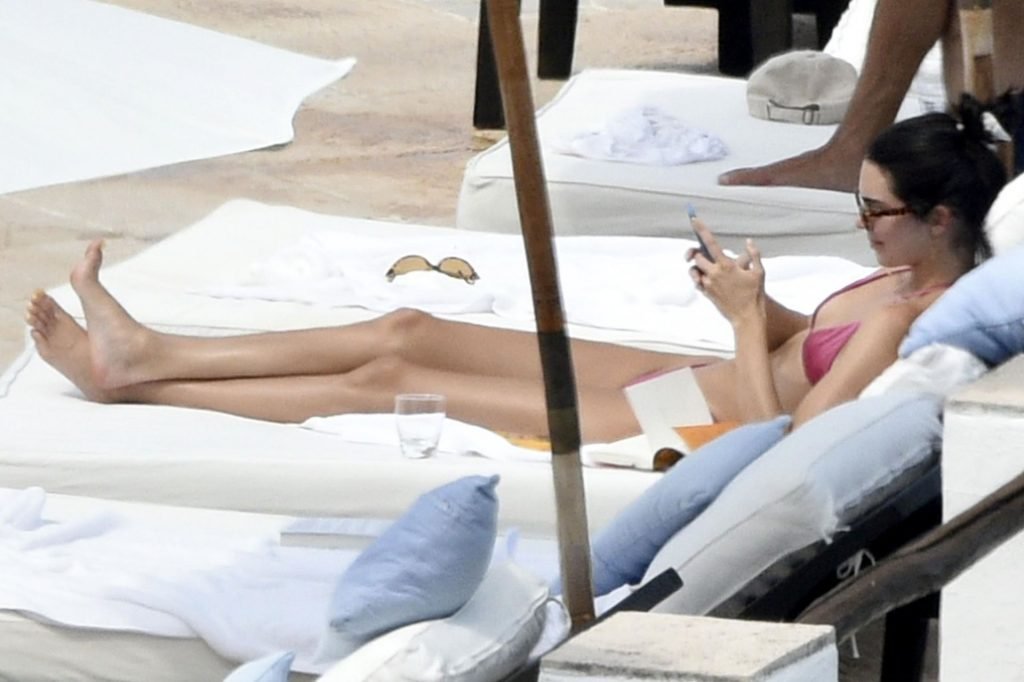 Kendall Jenner disfruta de sus vacaciones mientras muestra su cuerpo delgado junto a la piscina con Kourtney Kardashian y amigos en Costa Smeralda, Cerdeña, 27/07/2019. Se puede ver a Kendall leyendo un libro mientras toma el sol.