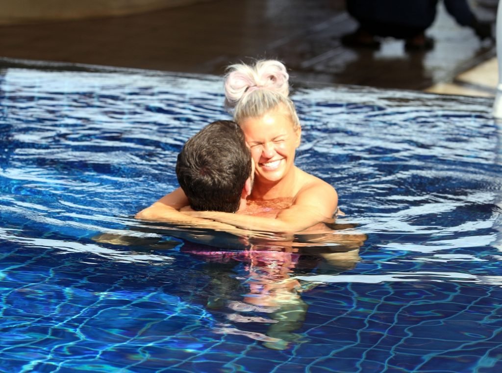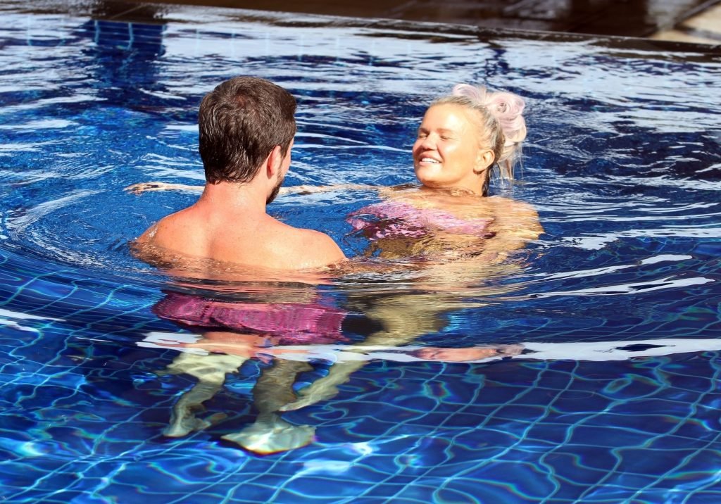 Kerry parecía estar en el paraíso tailandés mientras Ryan se ponía un poco “manos a la obra” masajeándole los hombros, aparentemente quitándole todo el estrés y la tensión, con la pareja disfrutando de un beso romántico y un abrazo en la piscina, con una Kerry ahora relajada refrescándose con una ducha.