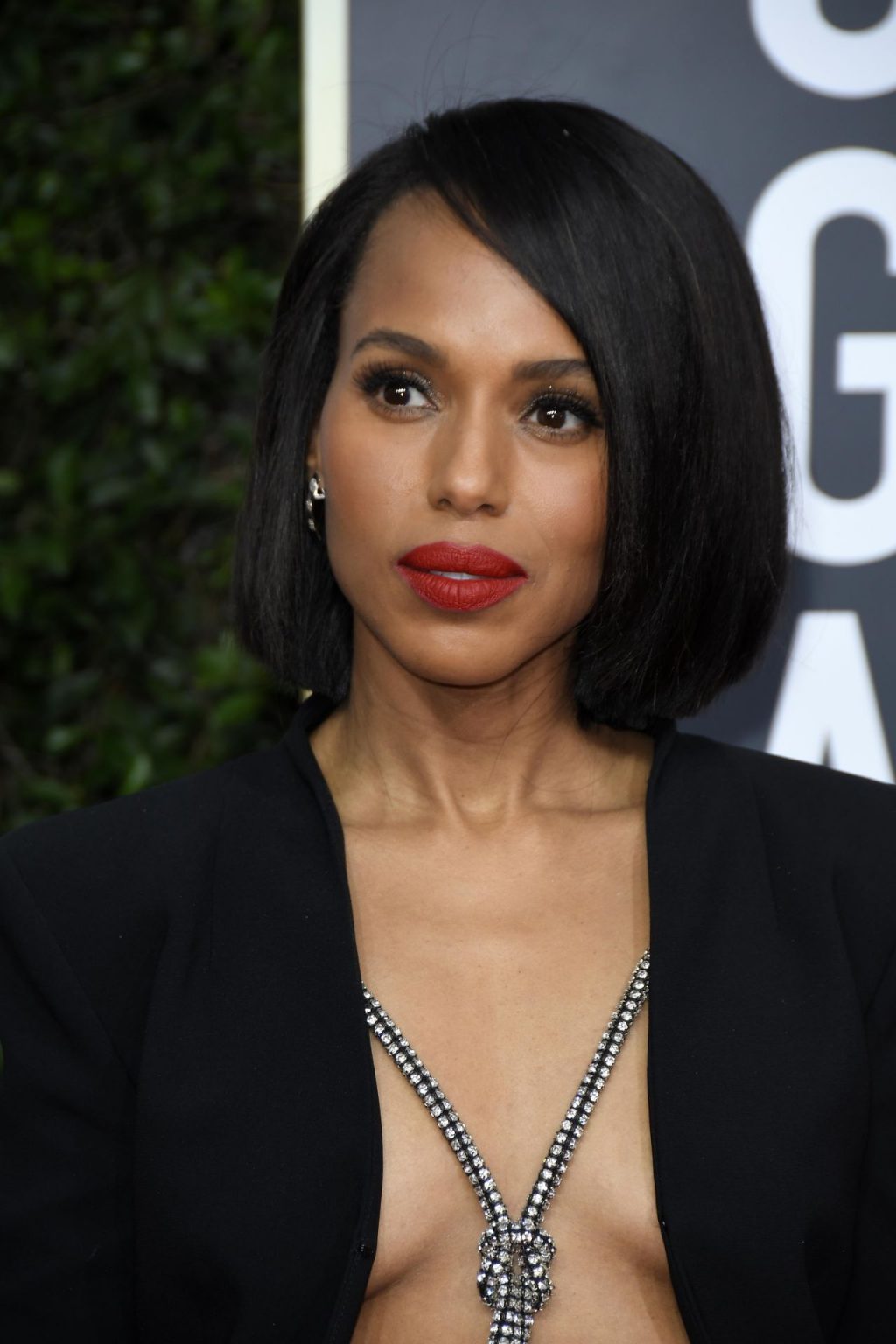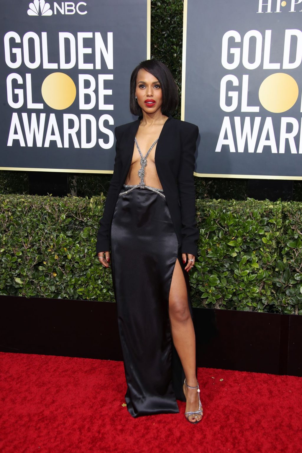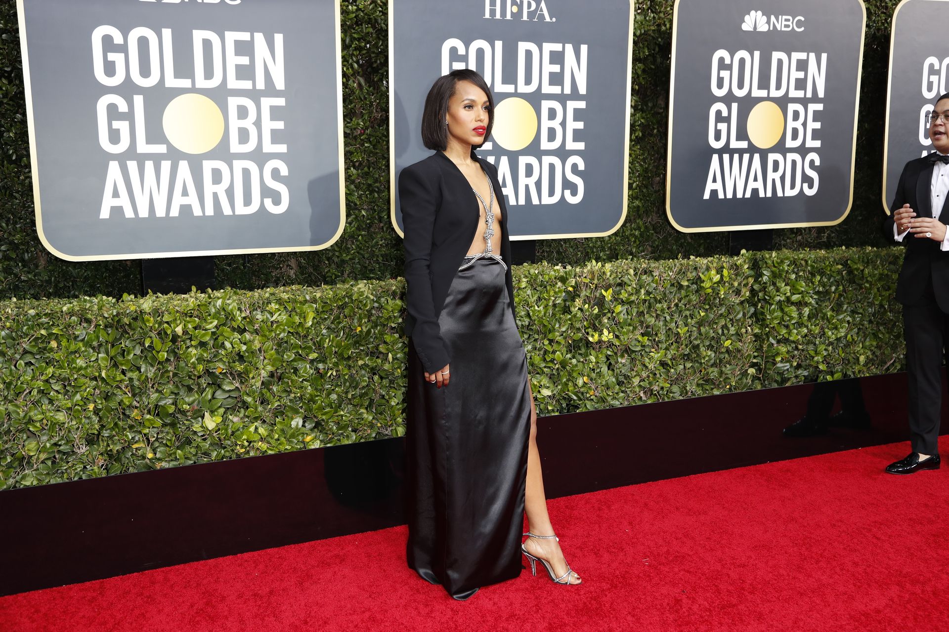 Kerry Washington y Jennifer Aniston declaran su admiración mutua mientras se encuentran en la alfombra roja de los Globos de Oro en Beverly Hills, 01/05/2020.