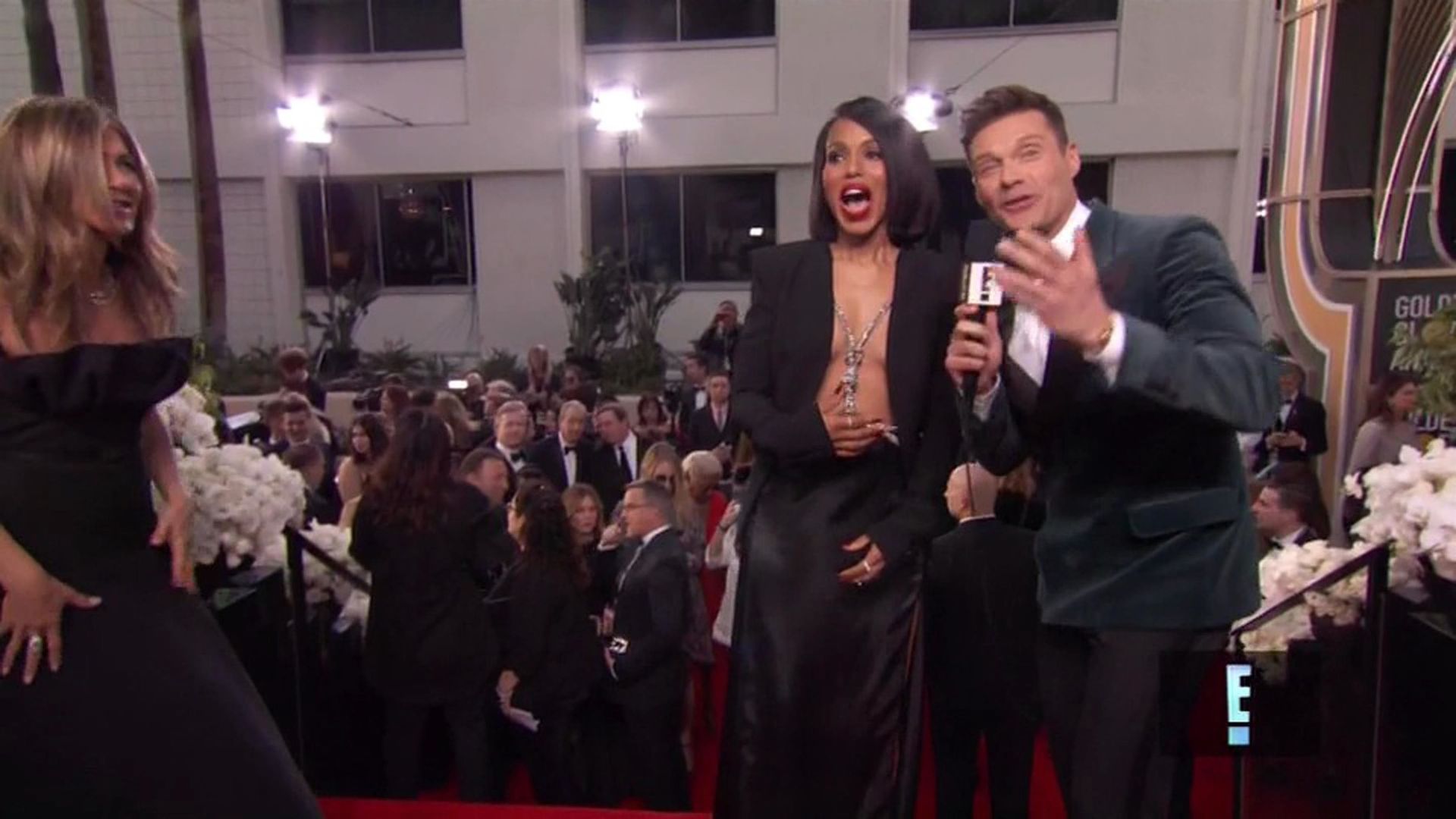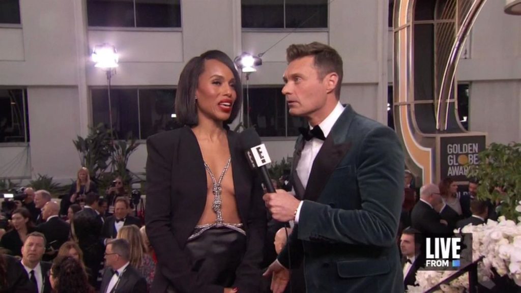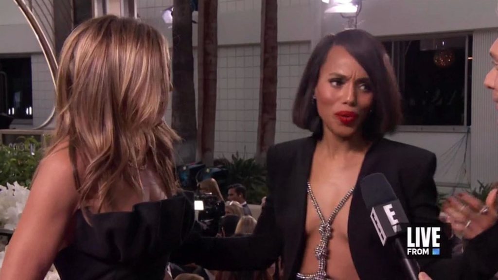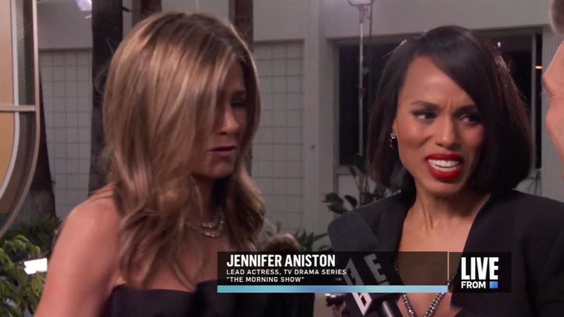 Mientras Aniston y Washington se acercaban a Ryan Seacrest de E! para una charla exclusiva, la estrella de Scandal no pudo evitar gritar: “¡Te ves tan hermosa!” Luego le dijo a Seacrest: “Amo a Jennifer Aniston y amo The Morning Show.” Seacrest y Washington luego invitaron a la nominada a los Globos de Oro, Aniston, a unirse a su conversación. “Estaba mirando las estrellas”, intervino Aniston, mientras Washington le decía: “Solo estaba diciendo lo increíble que es Morning Show y cuánto amamos ambas a Reese Witherspoon. Y lo fenomenal que eres. ¡Estoy obsesionada. Me encanta!” “Te amo”, le dijo Aniston a la estrella. “Eres tan hermosa.”
