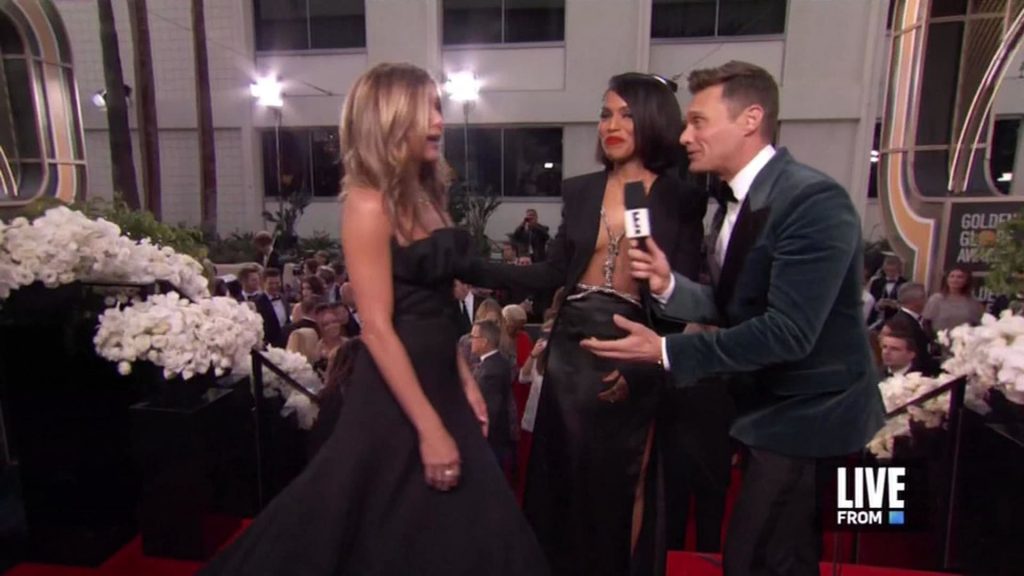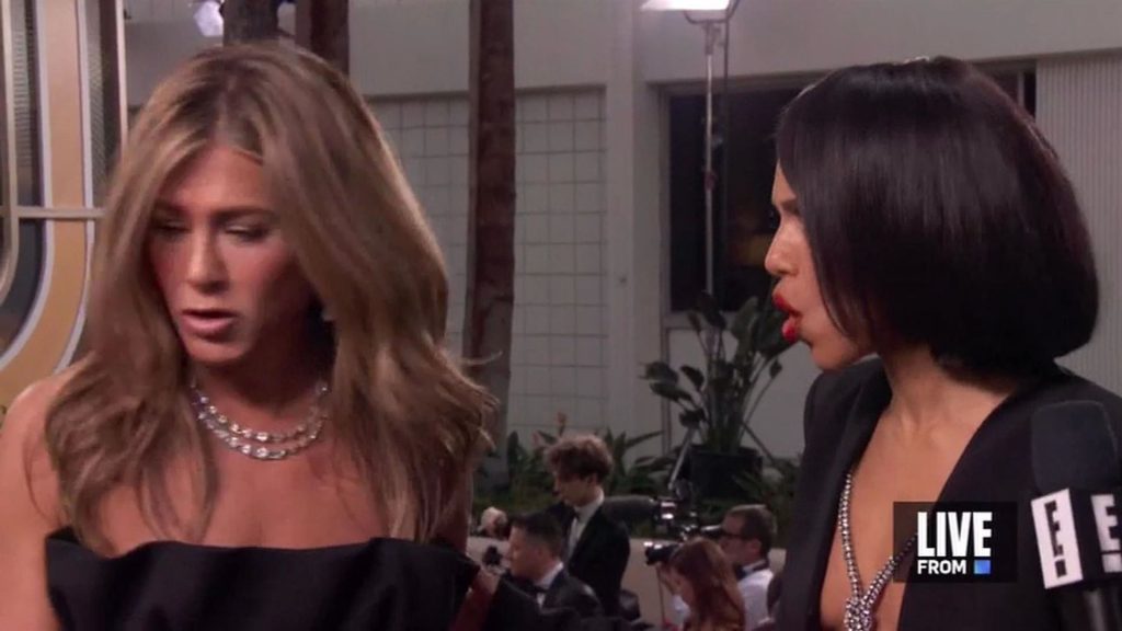 La ex alumna de Friends, nominada a Mejor Actriz en una Serie Dramática de TV, luego habló con Seacrest sobre su nuevo programa en Apple+. “He estado produciendo durante los últimos 10 años”, compartió Aniston. “Mi socio y yo, cuando comenzamos nuestra compañía, fue en ese momento cuando no encontrábamos papeles ni materiales que nos emocionaran. Así que tomas el asunto en tus propias manos y ahora estamos en este momento. Es increíble.”