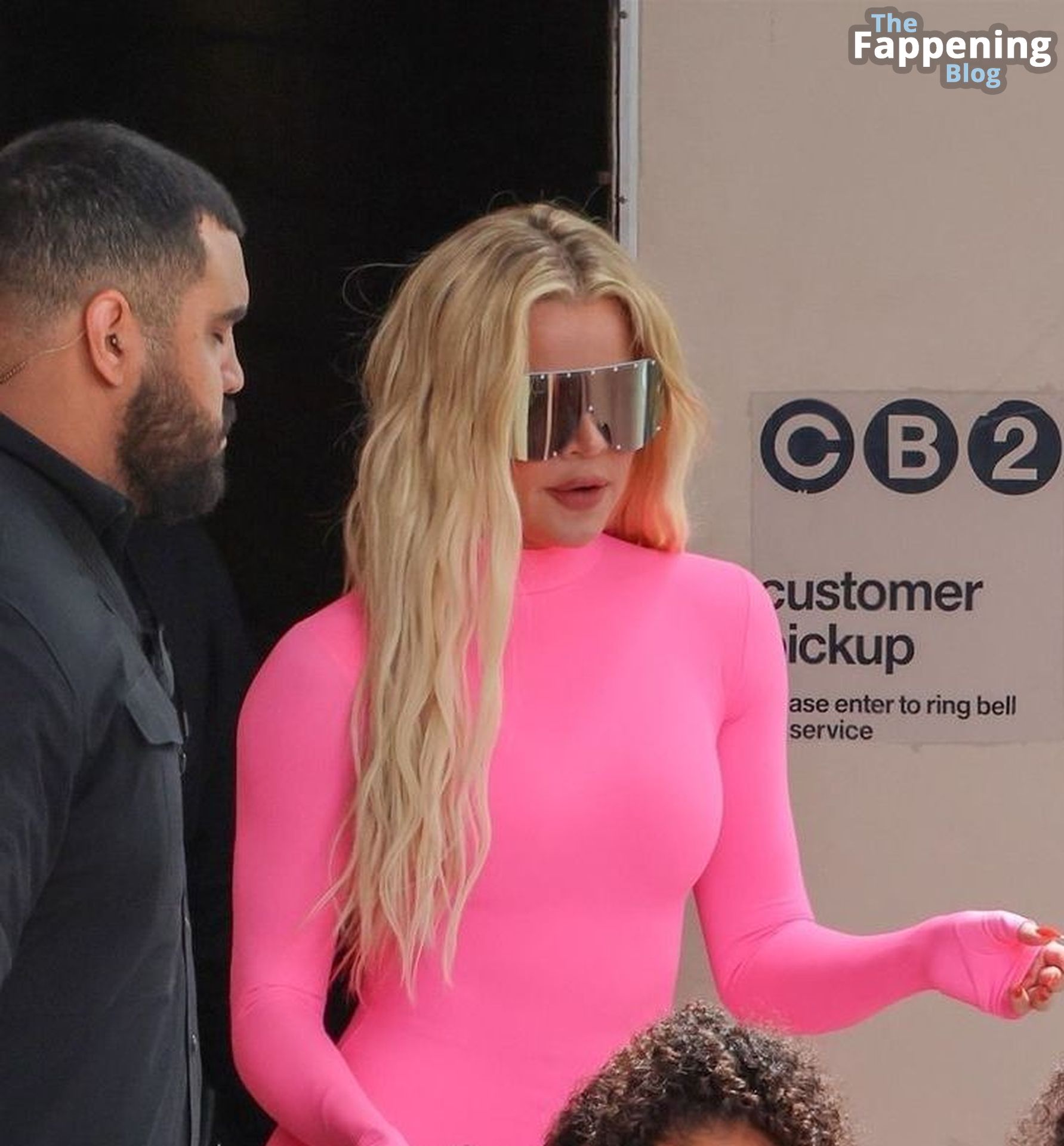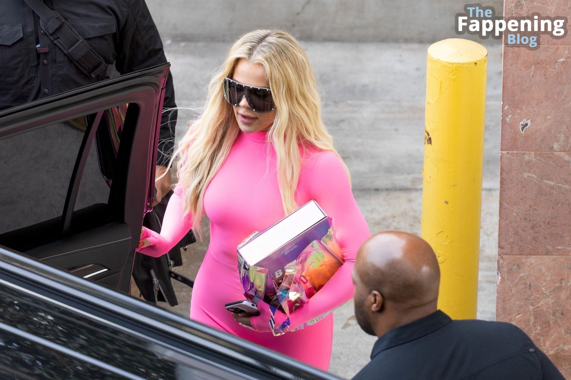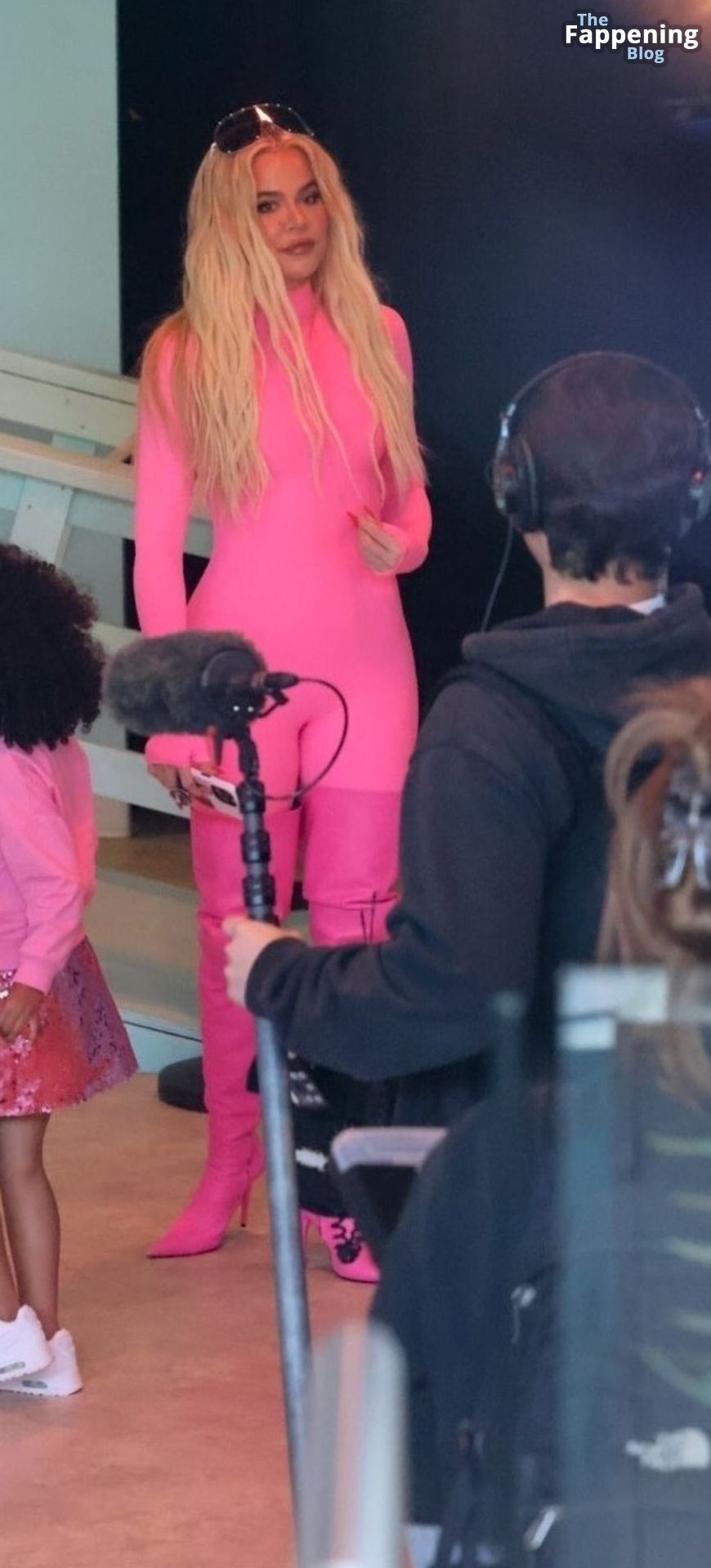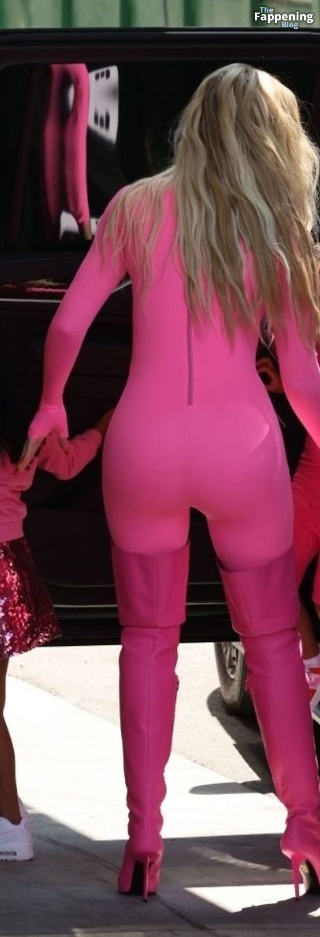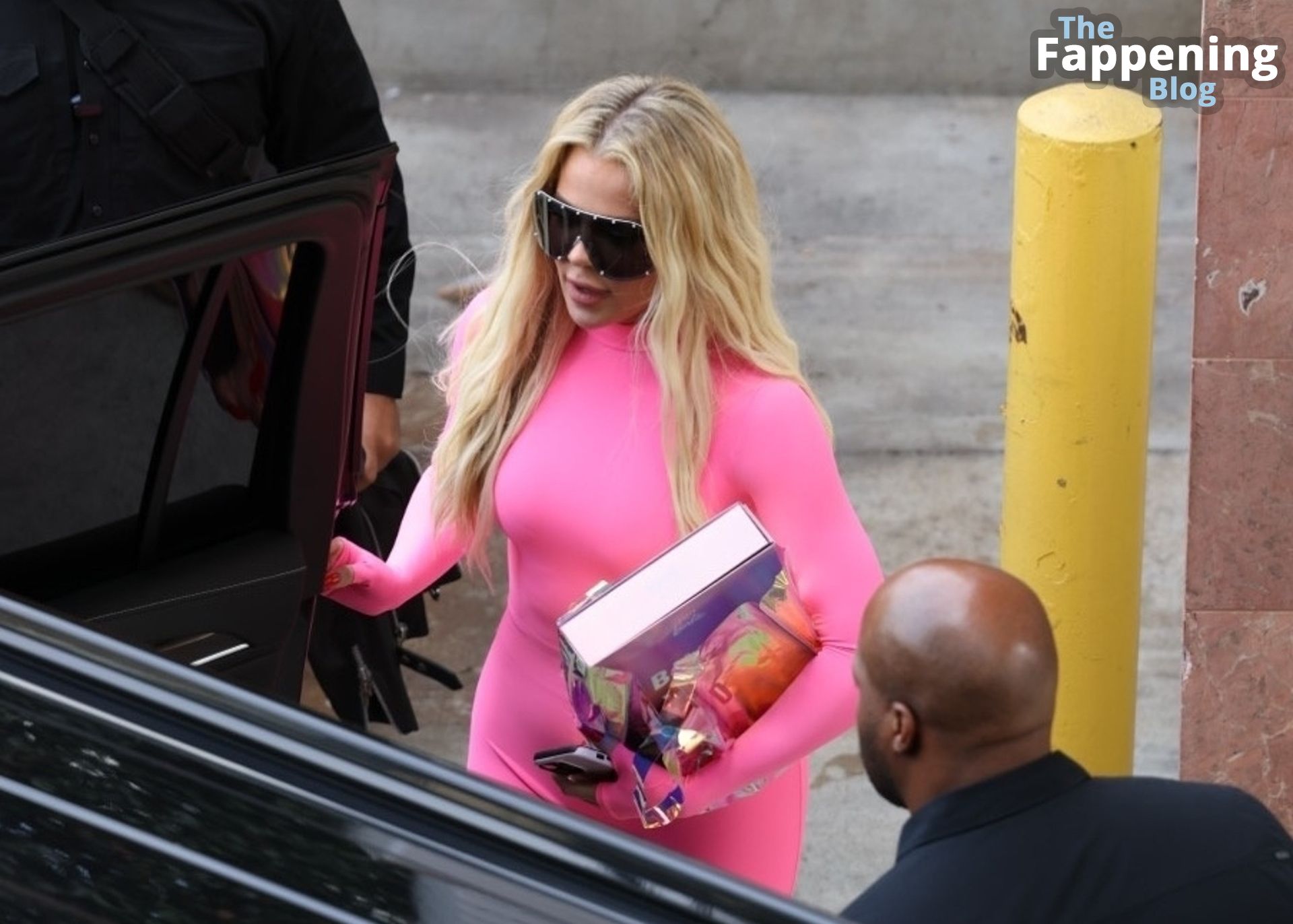 Khloe luce un conjunto rosa de pies a cabeza, y sus hijos están todos coordinados en el mismo color. Mientras tanto, Kim se estiliza con un elegante atuendo negro y muestra su apoyo a su hermana mientras se van del lugar.