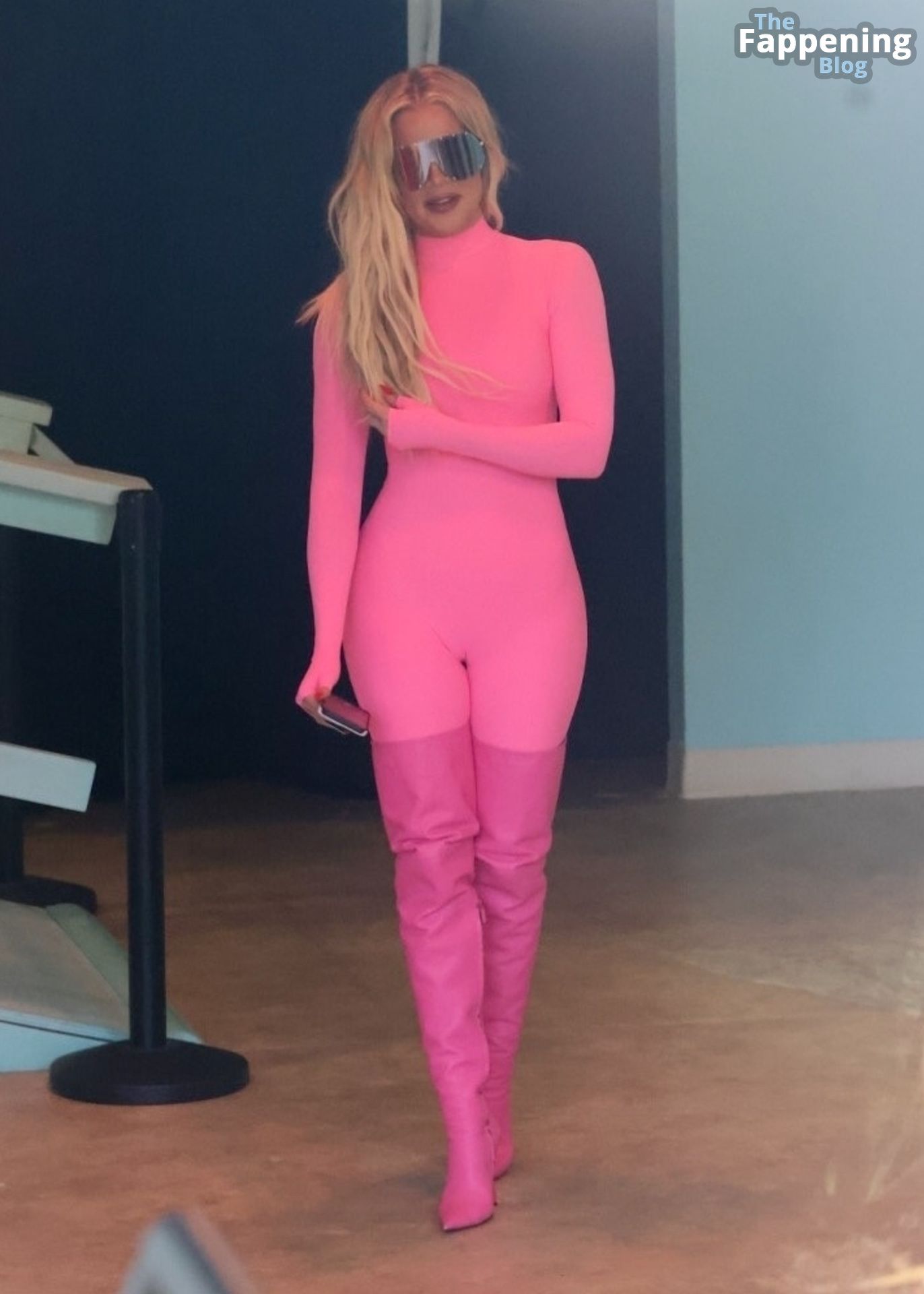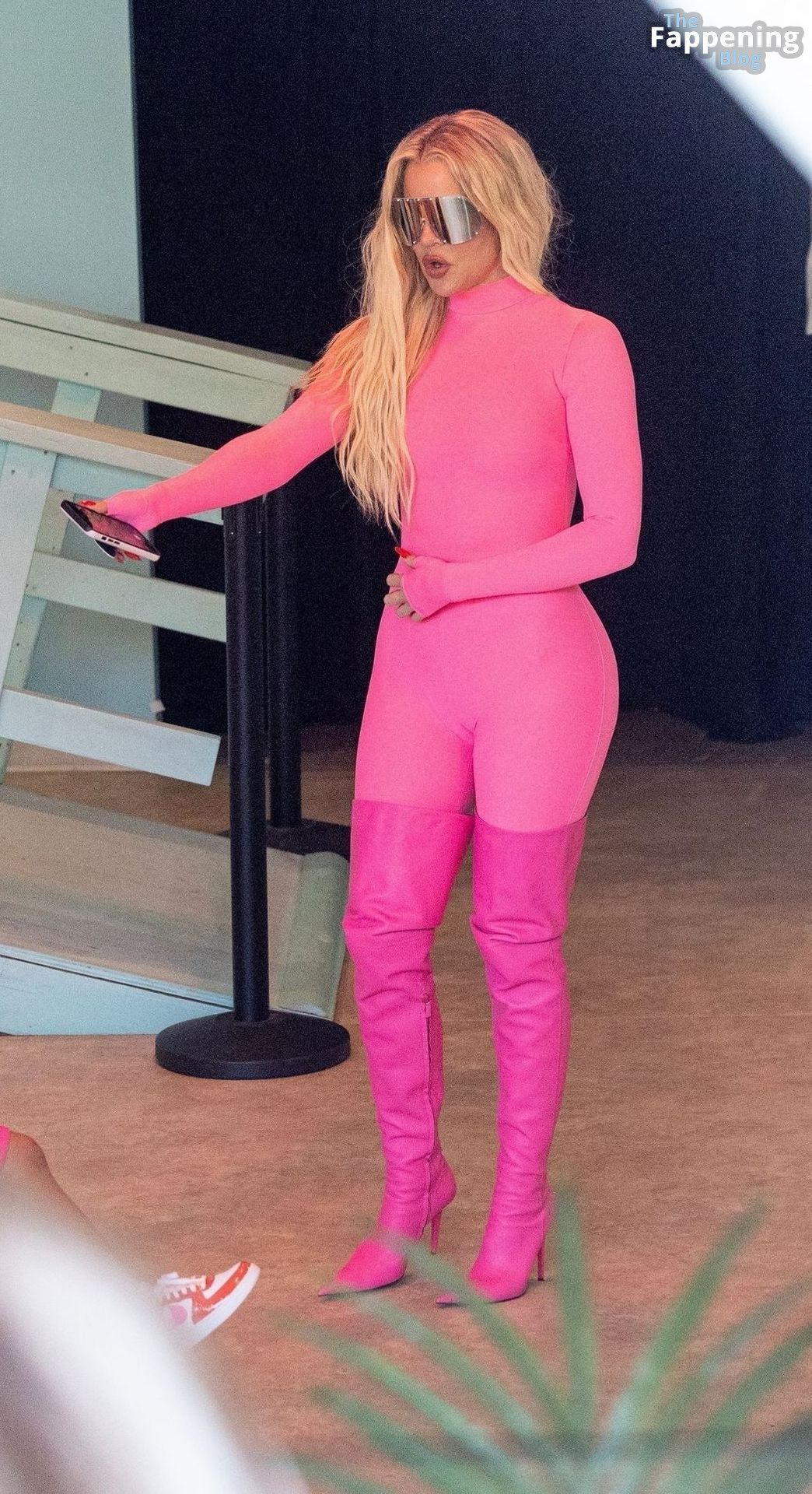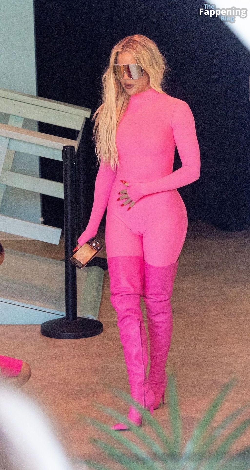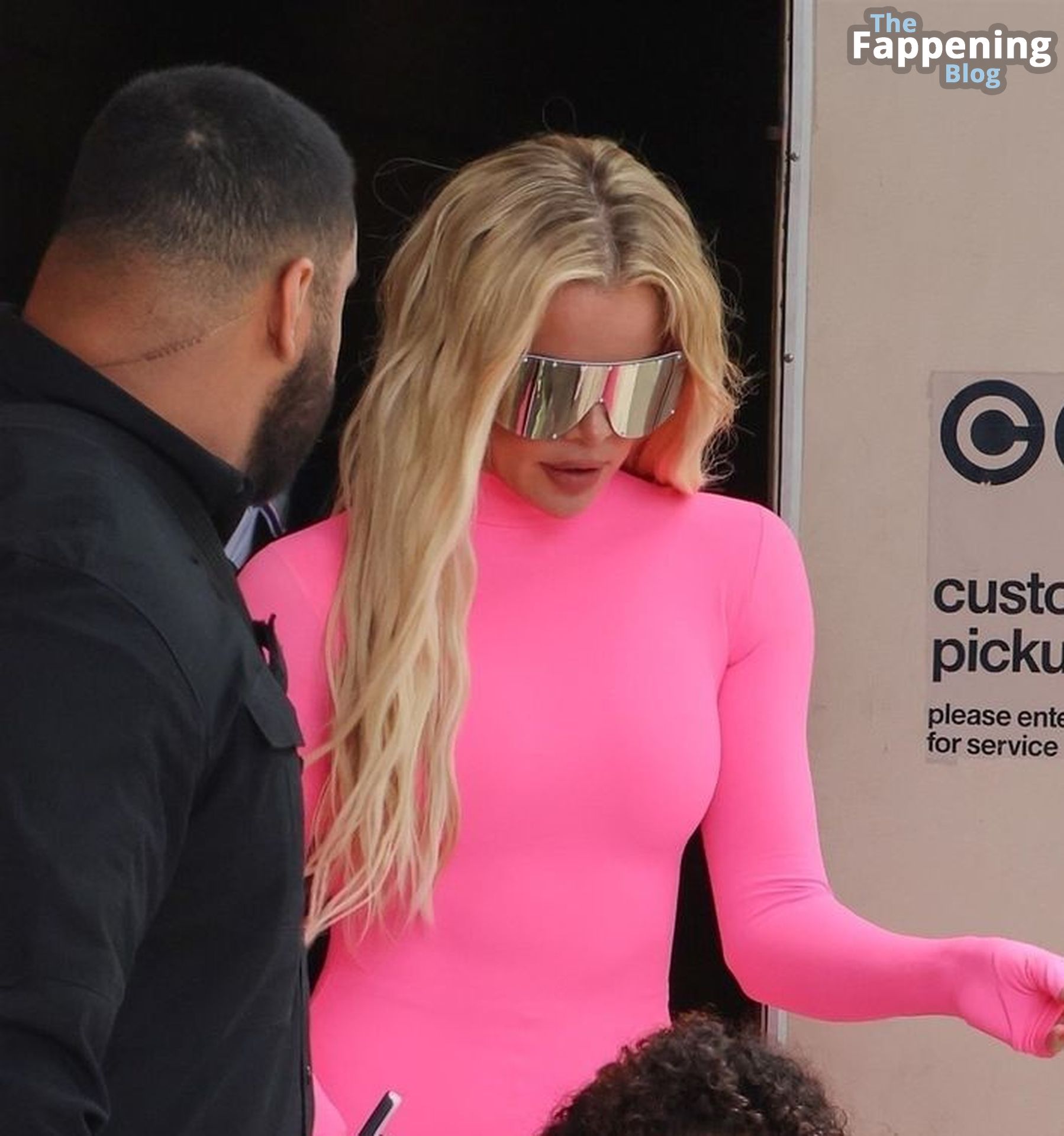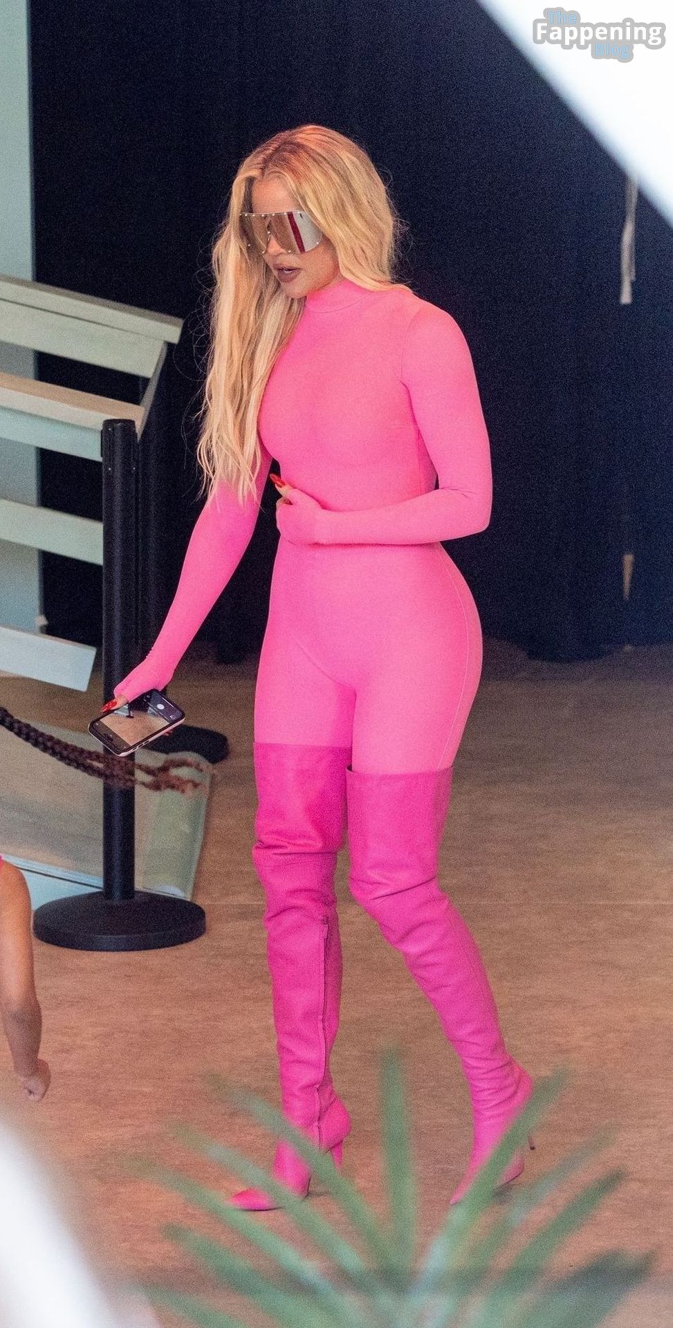 Khloe luce un conjunto rosa de pies a cabeza, y sus hijos están todos coordinados en el mismo color. Mientras tanto, Kim se estiliza con un elegante atuendo negro y muestra su apoyo a su hermana mientras se van del lugar.