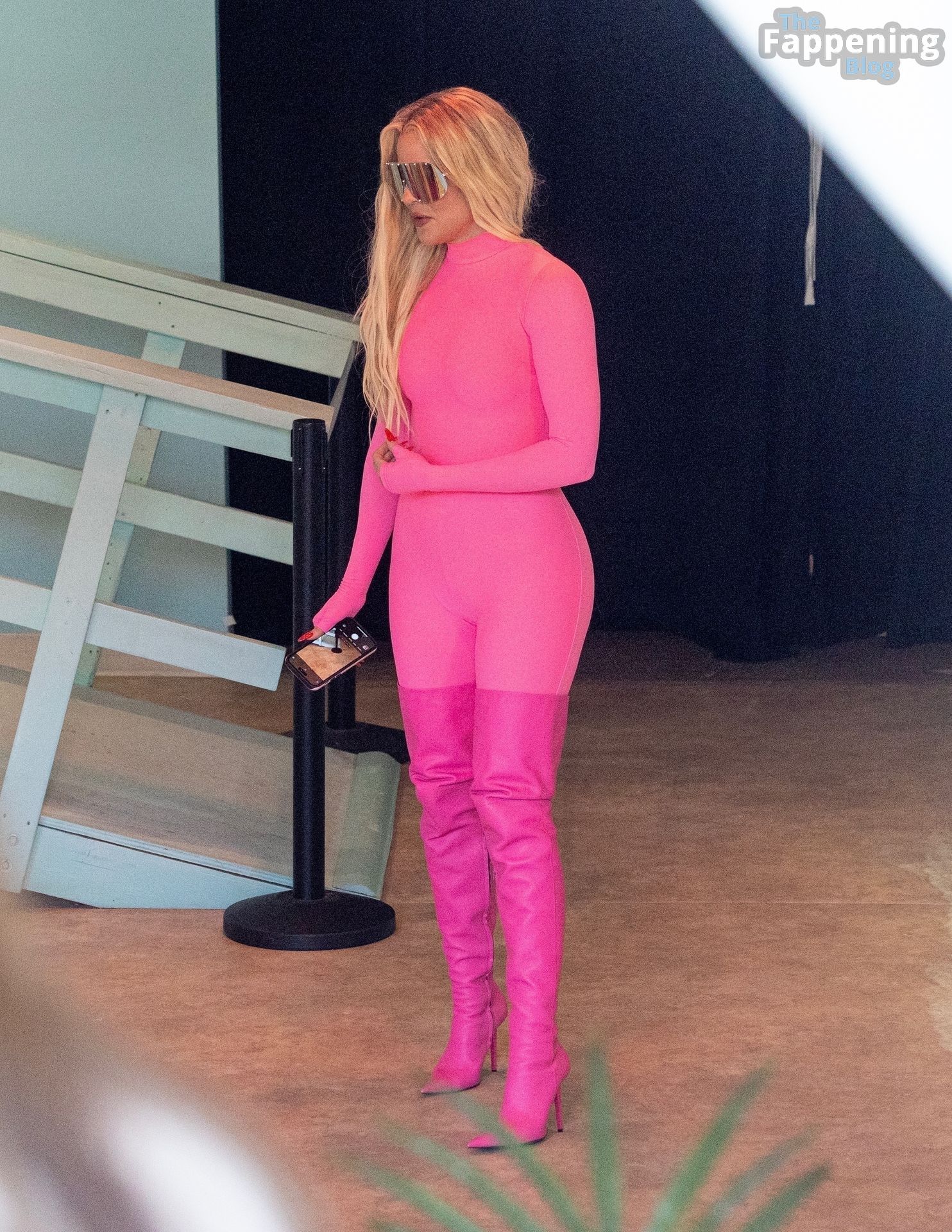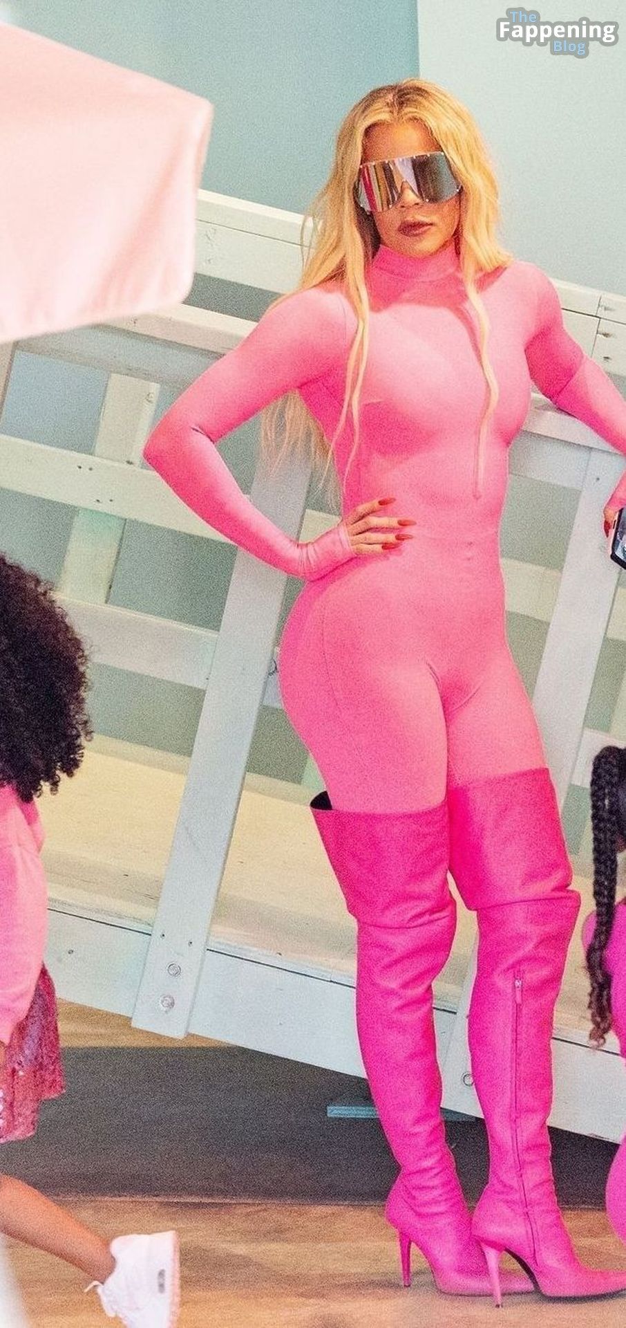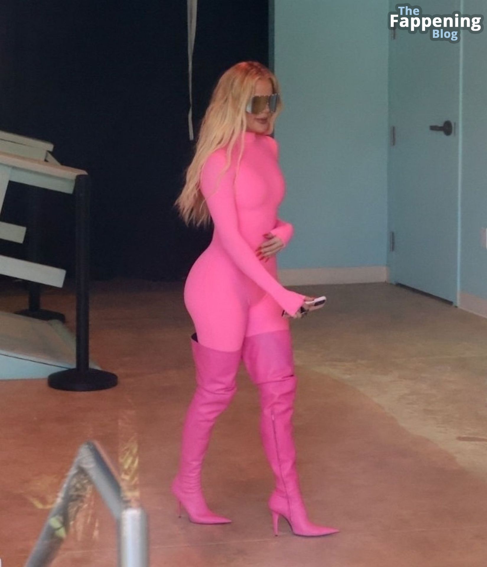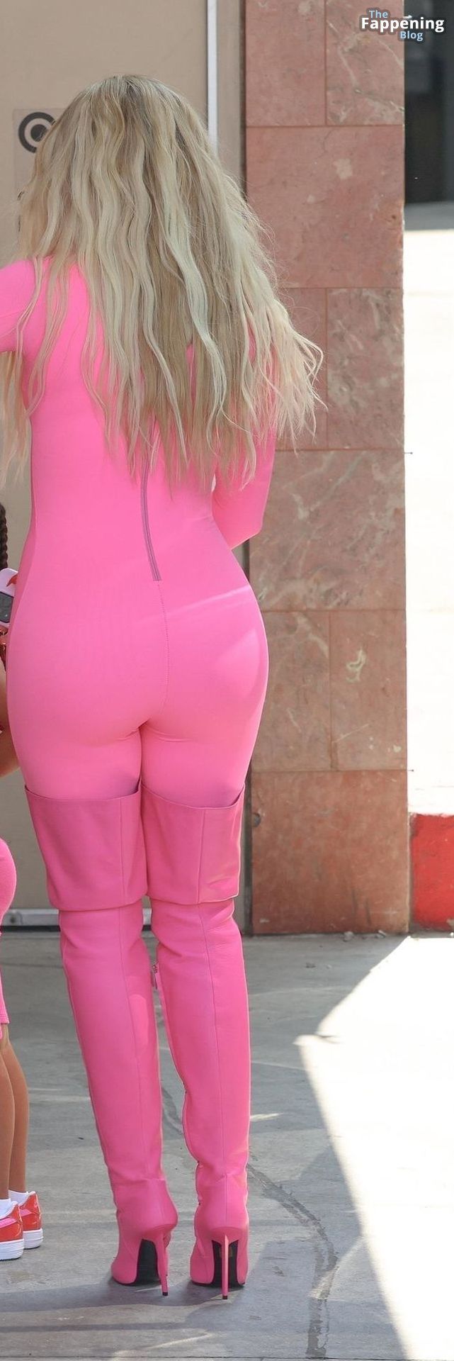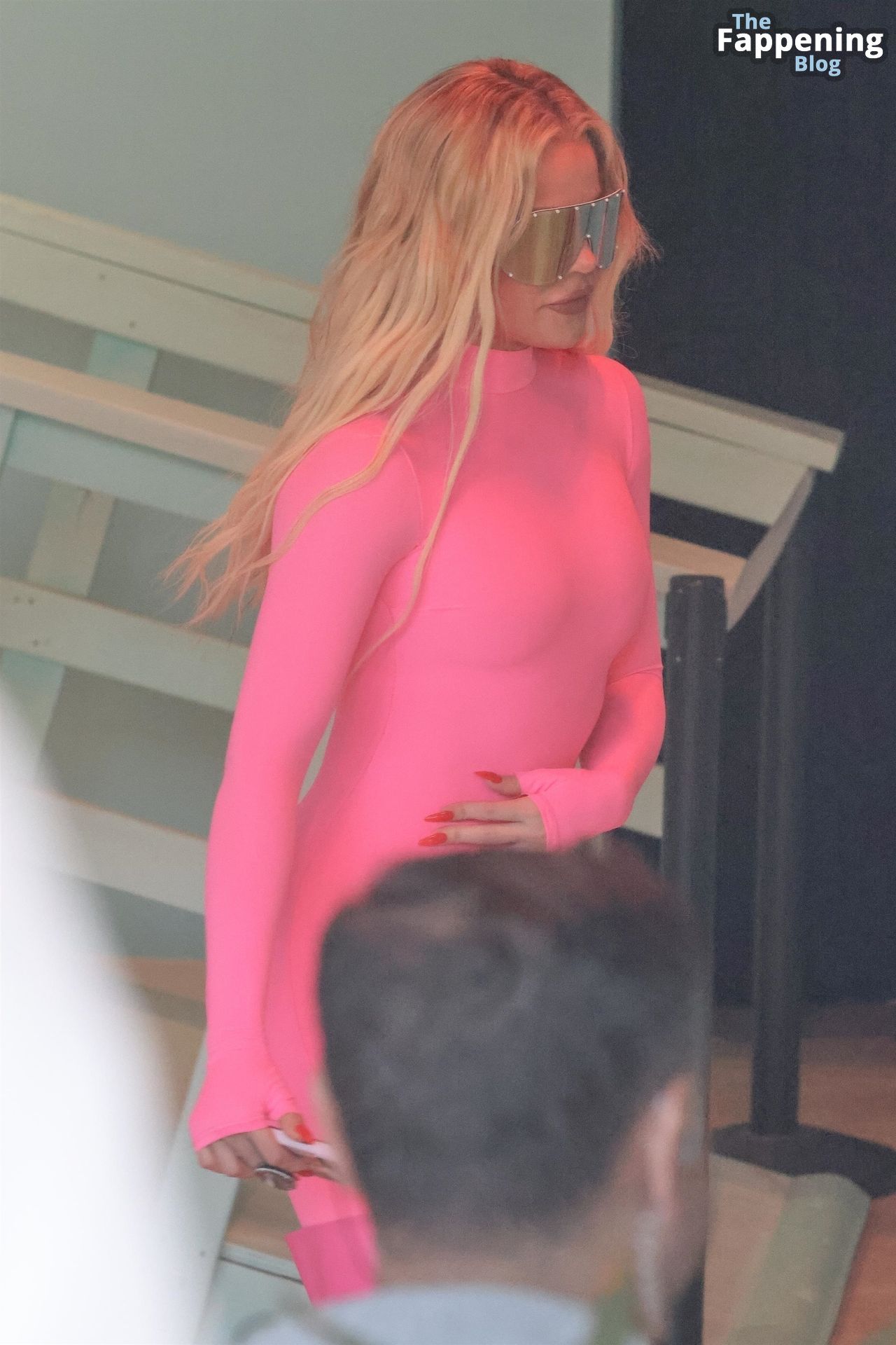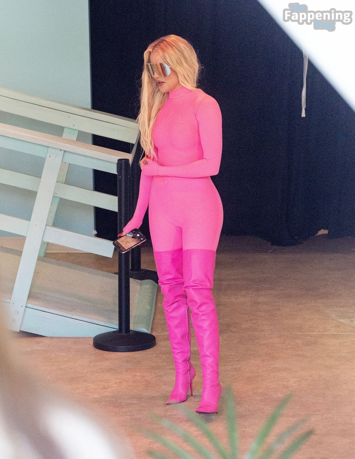 Khloe luce un conjunto rosa de pies a cabeza, y sus hijos están todos coordinados en el mismo color. Mientras tanto, Kim se estiliza con un elegante atuendo negro y muestra su apoyo a su hermana mientras se van del lugar.